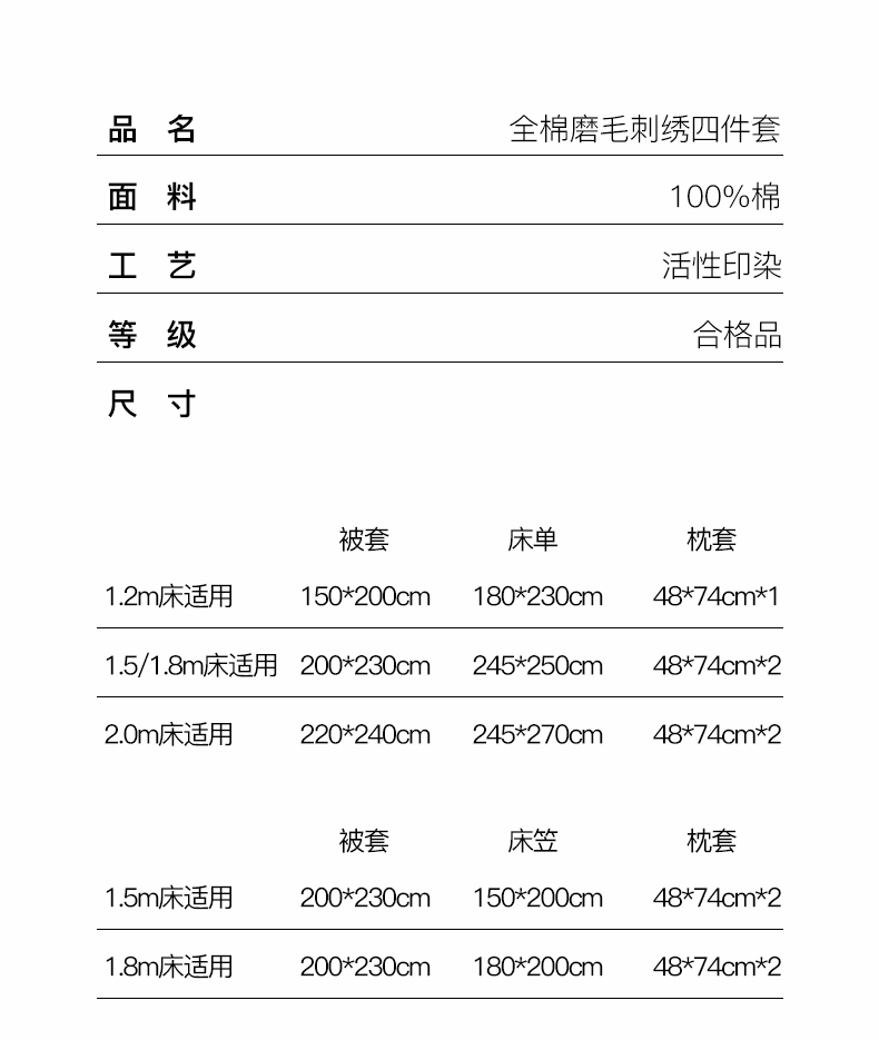 单被套200x230cm | ¥85.00 |