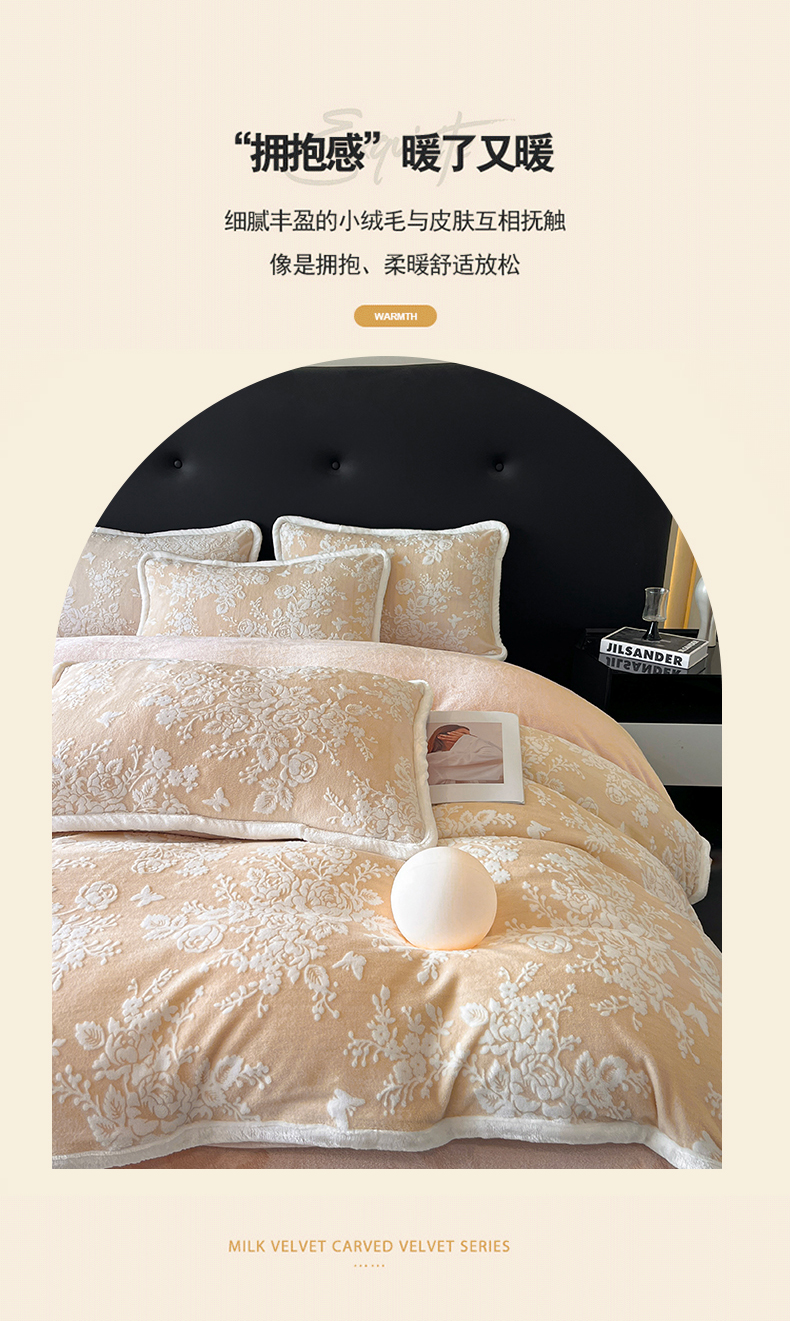 诺梵 2025新款8斤立体雕花牛奶绒四件套_控价标准高于139,加大高于149 蒂娜-黄