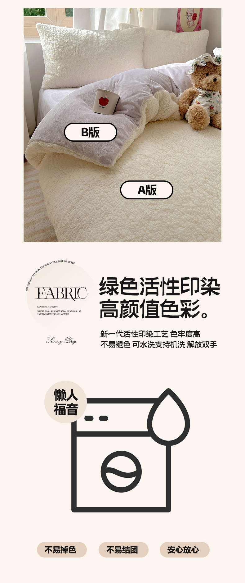 (总)顾里家纺 2024新款ins韩系牛奶羊羔绒套件,羊羔粉黄,羊羔白蓝,羊羔黄蓝,羊羔灰,羊羔咖,羊羔蓝,羊羔蓝黄,羊羔绿粉,羊羔米,羊羔奶黄,羊羔暖咖,羊羔紫