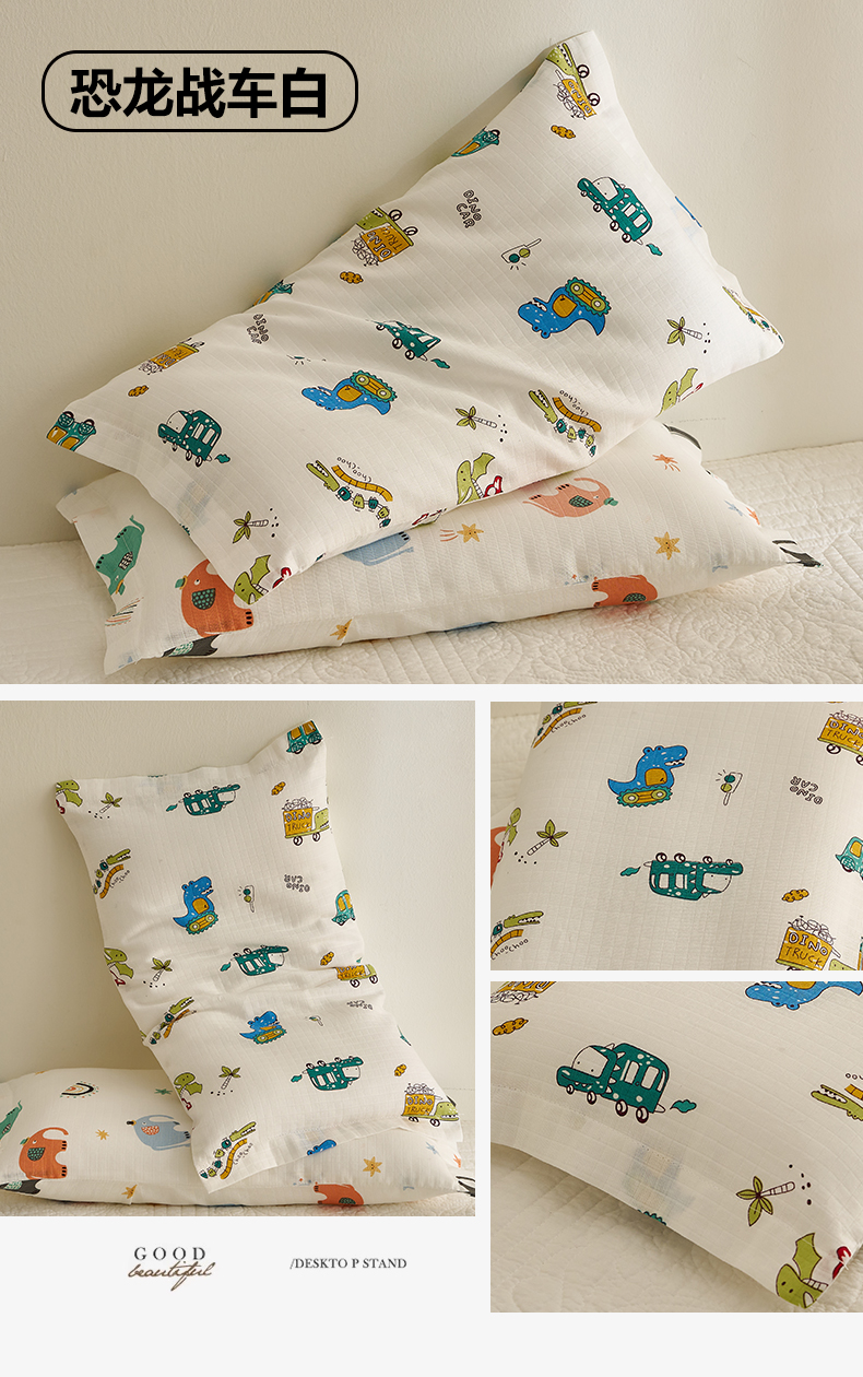 商品名称:乐可 2025新款双层纱儿童定型枕套 TC2恐龙战车白