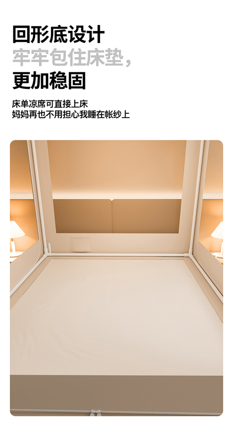 • 91家纺网 家纺一手货源 找家纺 (总)佳梦家纺 2026新款三开门防尘顶免安装蚊帐,大地灰,可可猫,浅米咖,松果蓝
