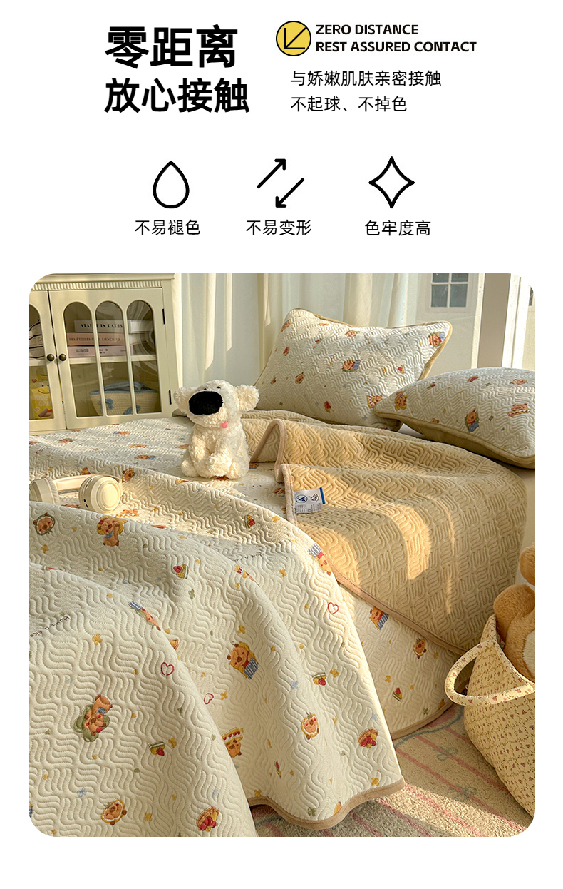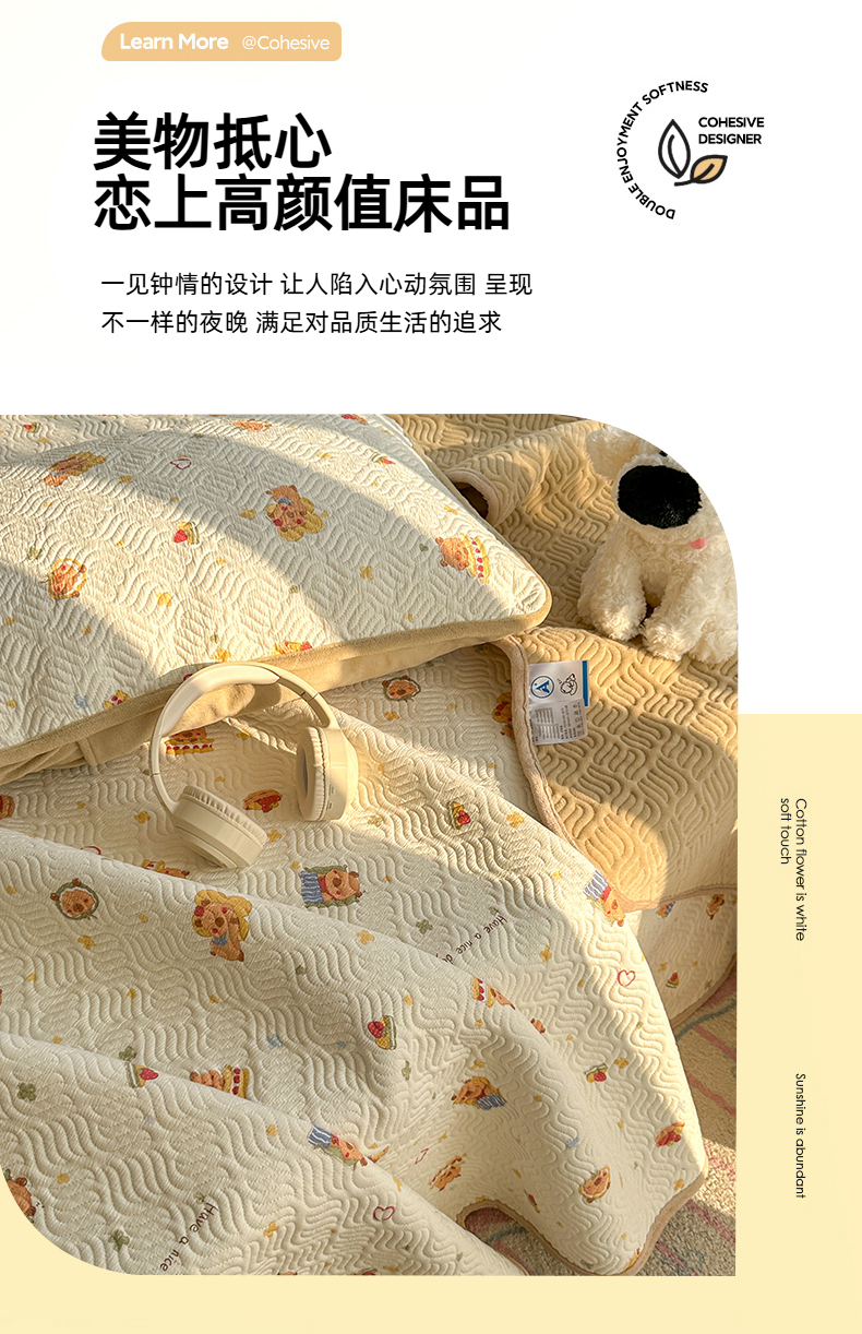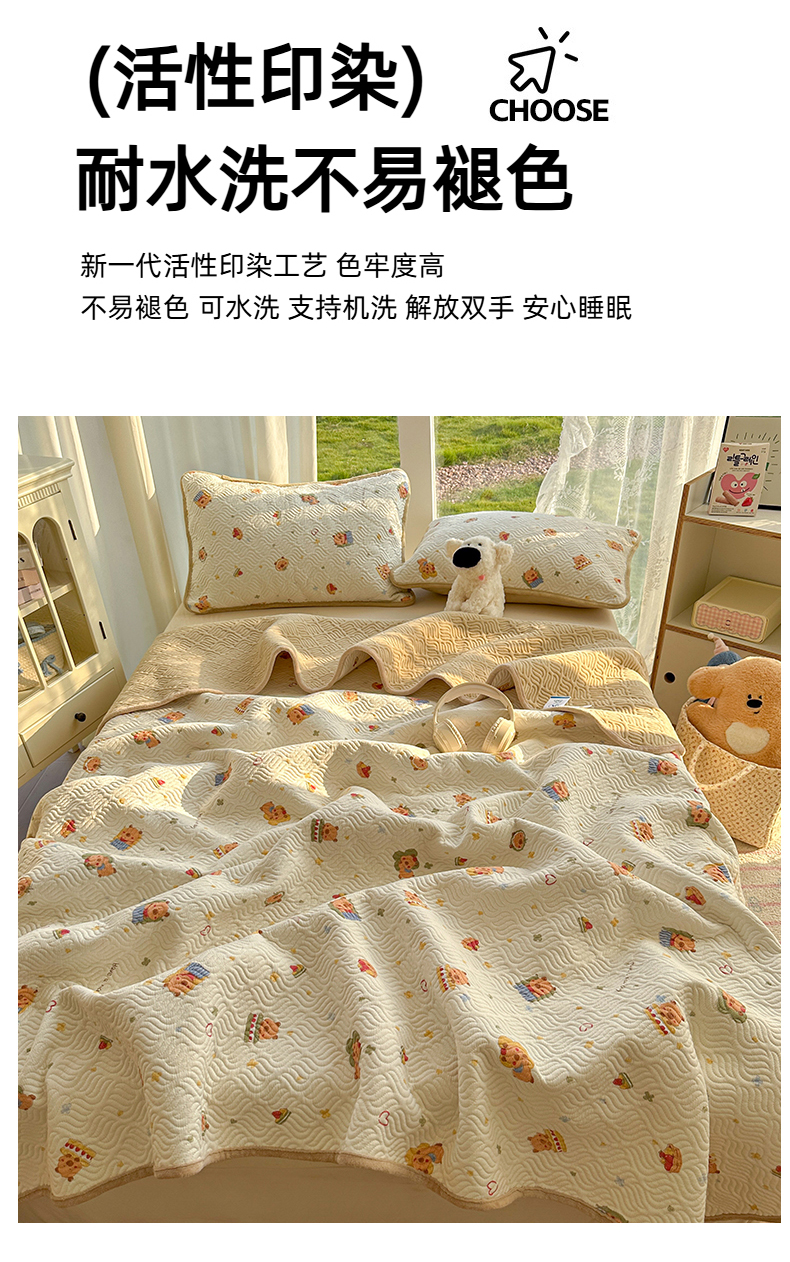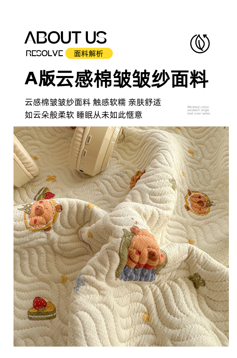 • 91家纺网 家纺一手货源 找家纺 春光里 2025新款A版云感棉皱皱纱B版牛奶绒夹棉床盖三件套 卡皮巴拉