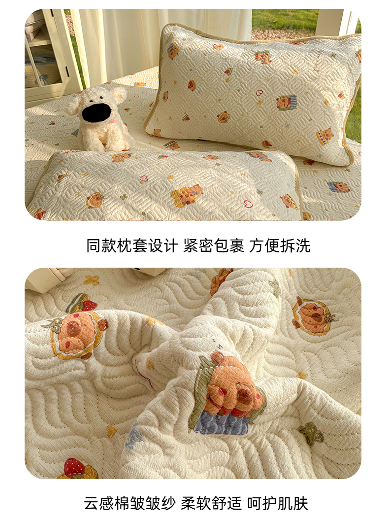 春光里 2025新款A版云感棉皱皱纱B版牛奶绒夹棉床盖三件套 卡皮巴拉