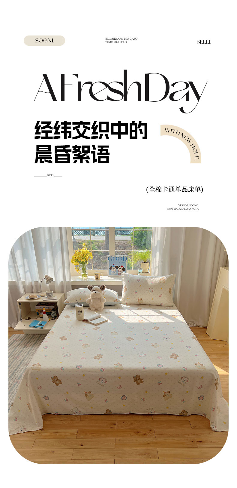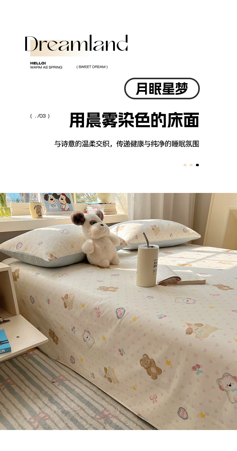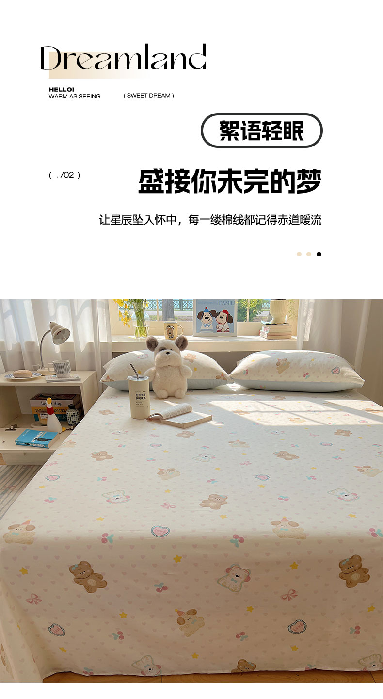 六巷胡同 2026新款40支全棉13070卡通单品床单 奶油甜心熊