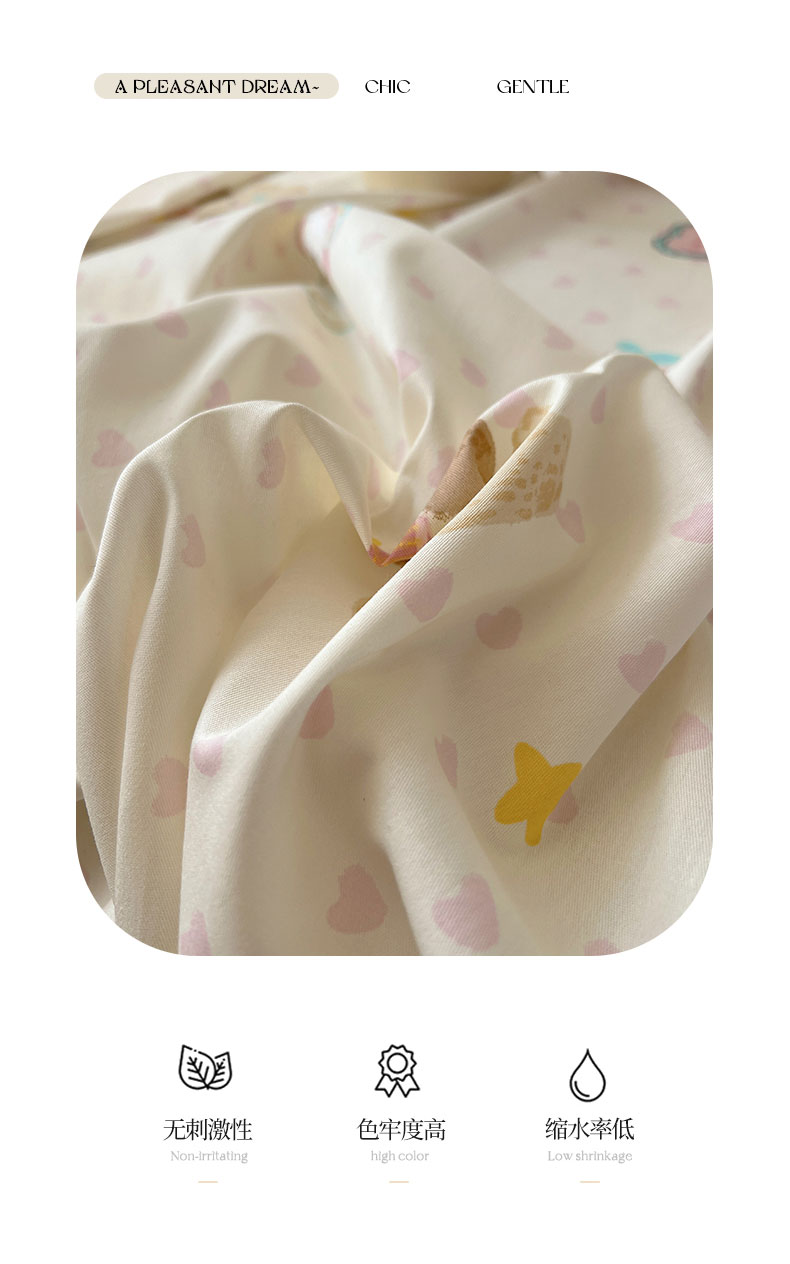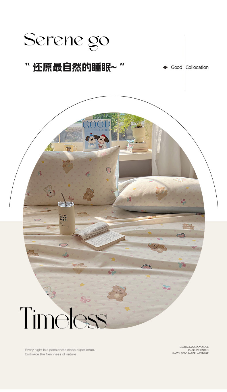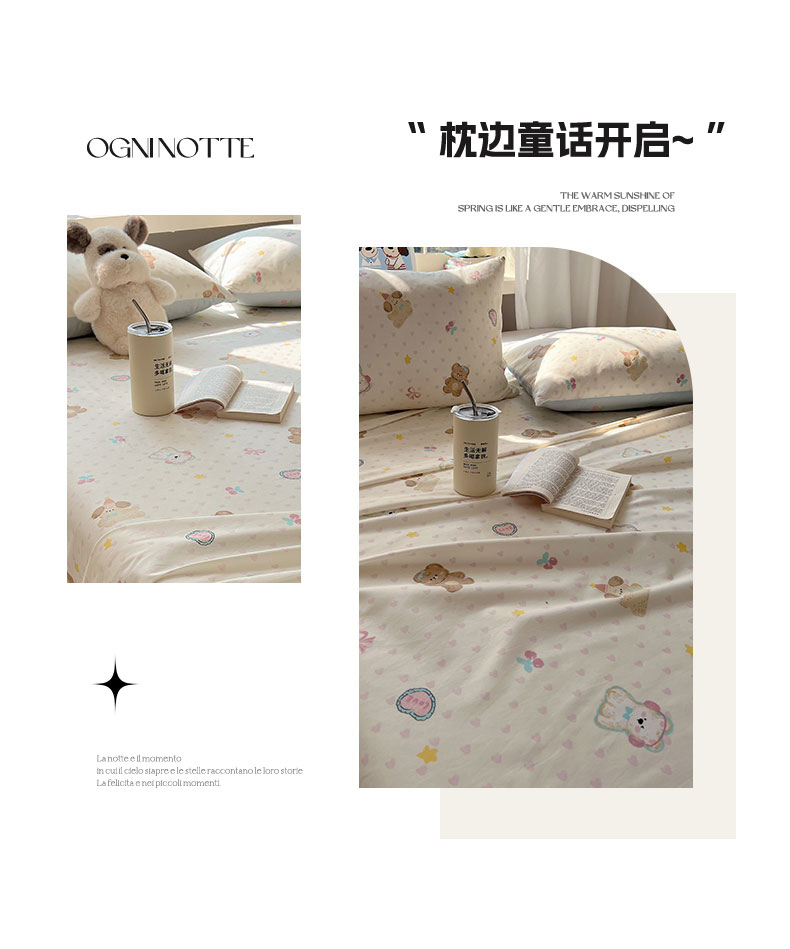 六巷胡同 2026新款40支全棉13070卡通单品床单 奶油甜心熊
