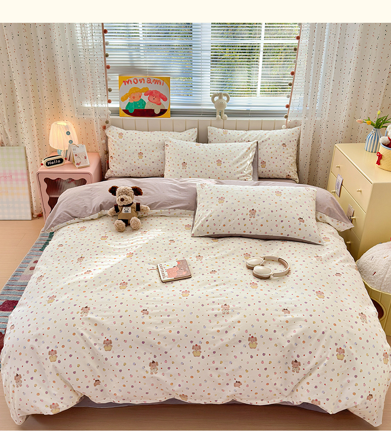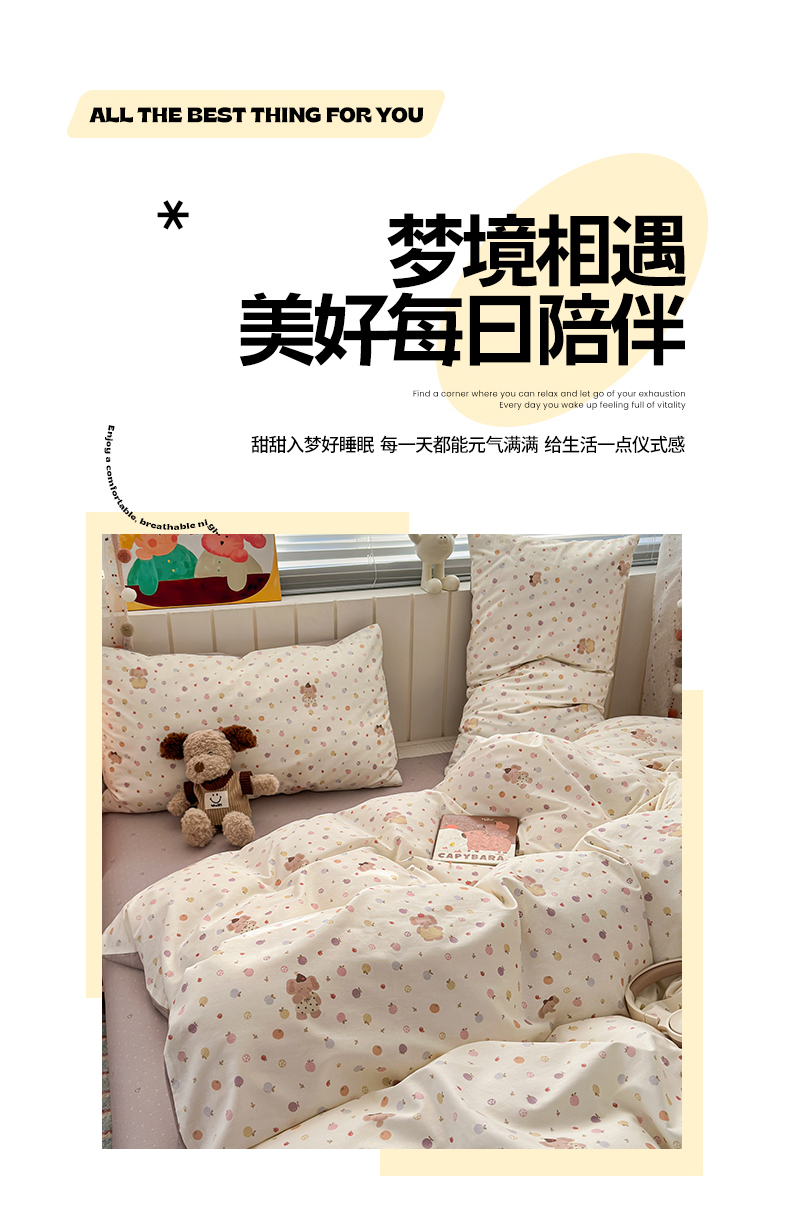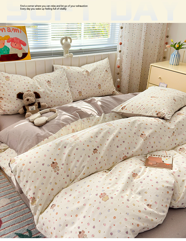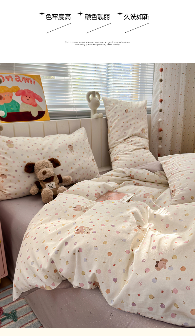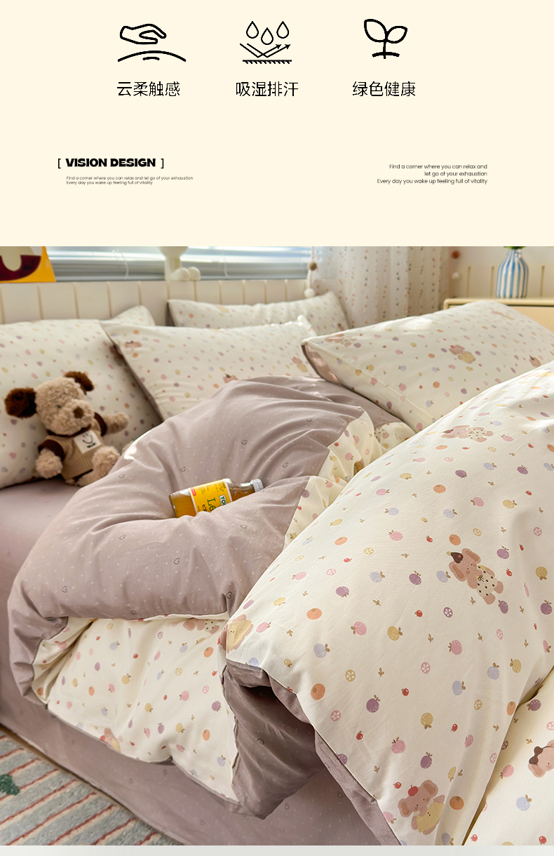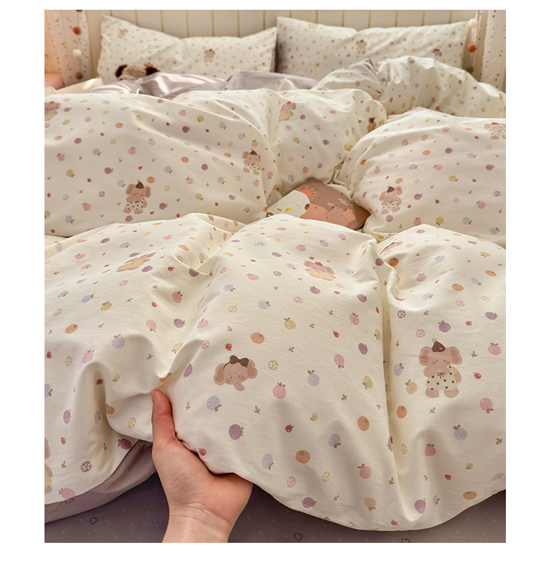 当前位置: 91家纺网 > 商品网购 > 床品套件 > 四件套 > 全棉普通四件套 > 清雅福 2026春夏新款INS小清新40支全棉13372四件套第一批 果子象