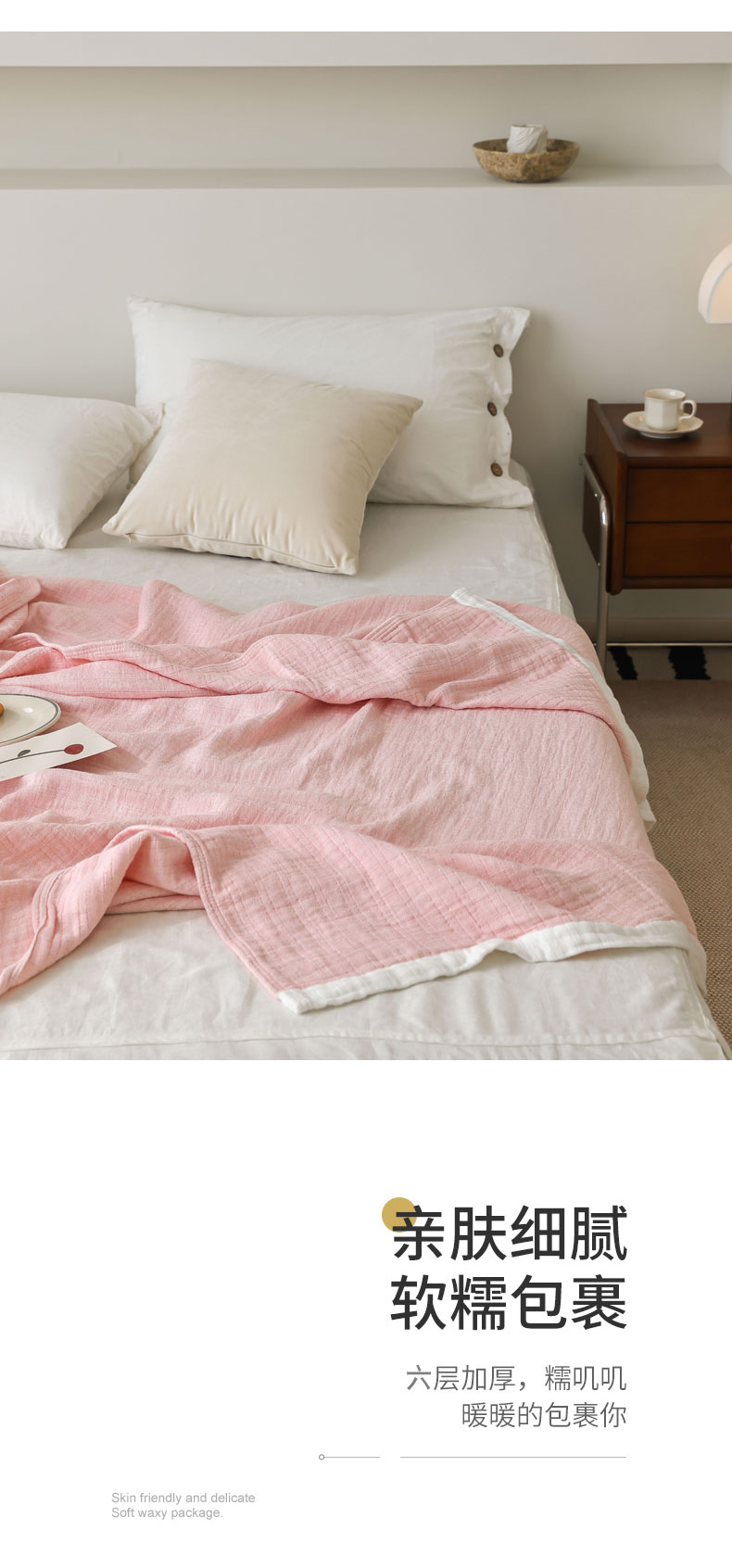 朴尔家纺-毛巾被 2026春夏新款全棉纯棉80支四层纱布毛巾被夏被夏凉被空调被 宽边-粉