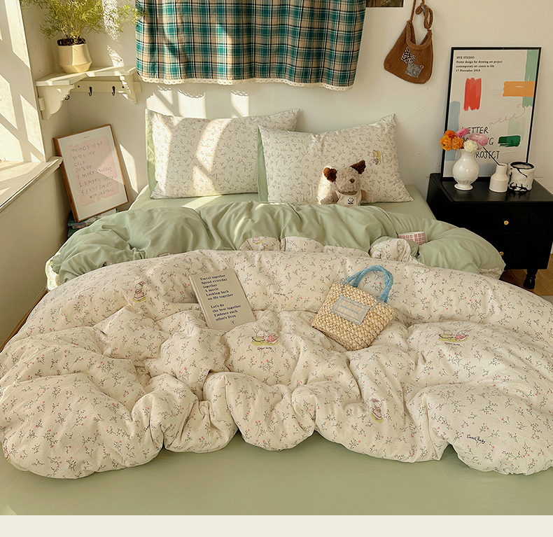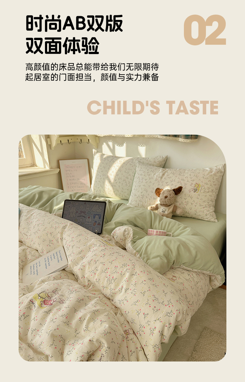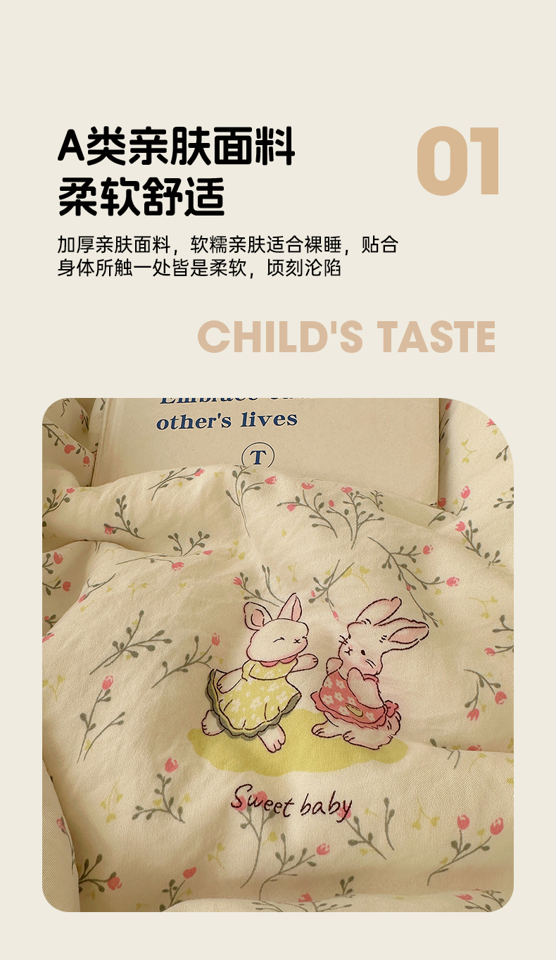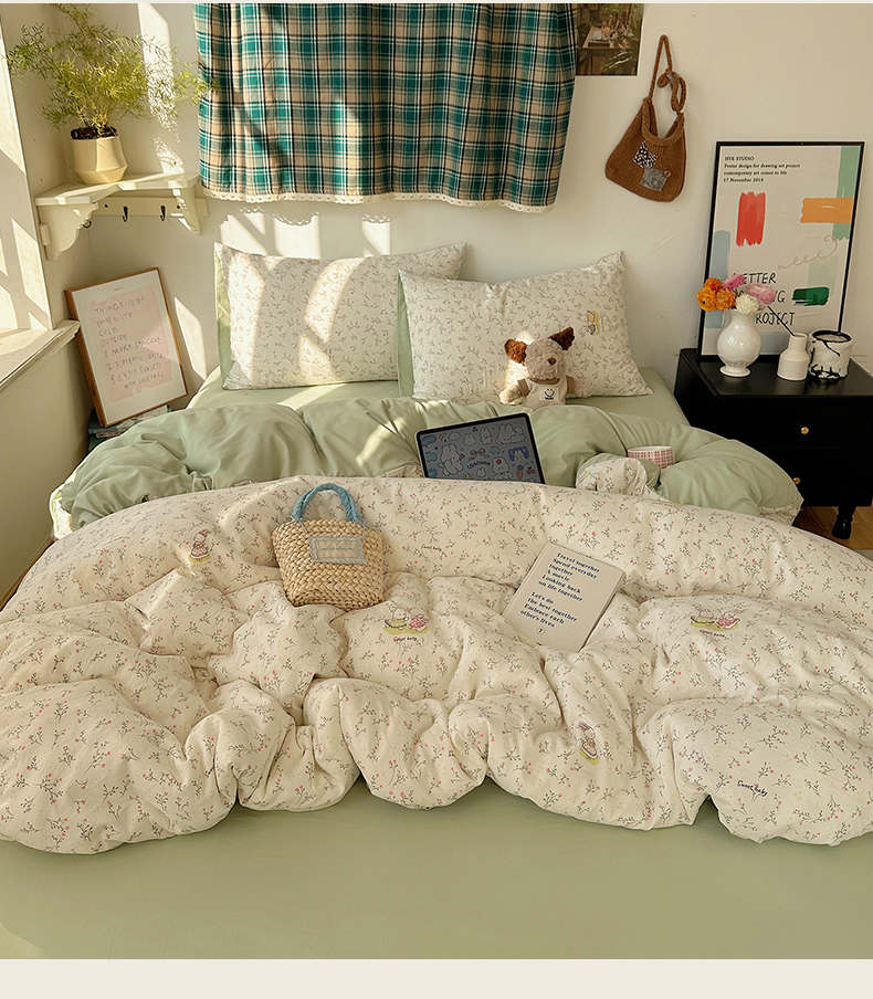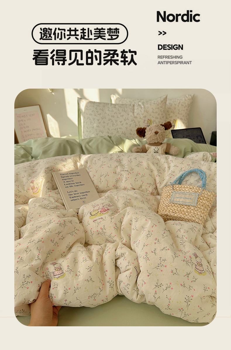 当前位置: 91家纺网 > 商品网购 > 床品套件 > 四件套 > 化纤普通四件套 > 初夏家纺 2026 新款水洗棉四件套A类卡通简约风床上三件套被套被罩【提供买家秀】 森系田园兔