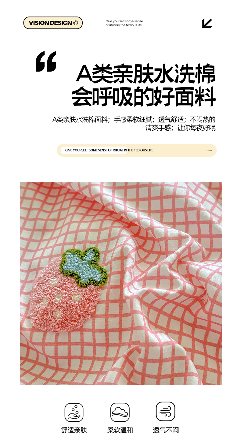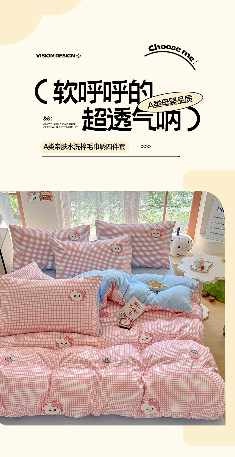 当前位置: 91家纺网 > 商品网购 > 床品套件 > 四件套 > 水洗棉四件套 > 优卡迪家纺馆 2026新款A类亲肤水洗棉毛巾绣系列四件套下载文件包含买家秀 草莓KT-布丁粉