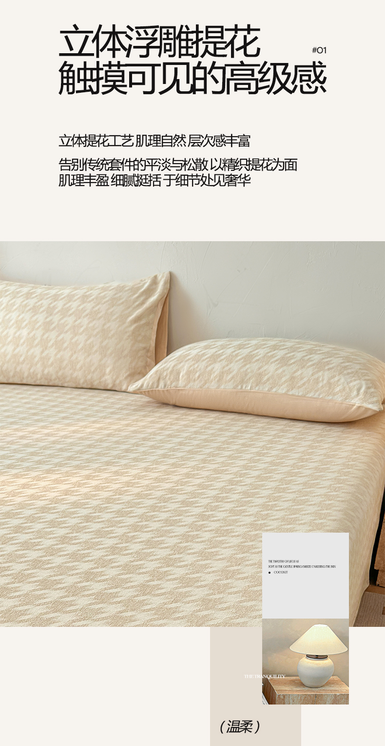 (总)涵宸家纺 2026新款全棉提花里拉系列四件套,柏拉-白,花夕-粉,凌维-灰,凌维-绿,律动格韵,千喜格,沁语-粉金,沁语-奶白,沁语-紫,山慕色,甜心漾,微芒,雾絮-灰,雾絮-奶白,毓影-豆沙,毓影-奶白,云暖-粉,云暖-紫,织羽