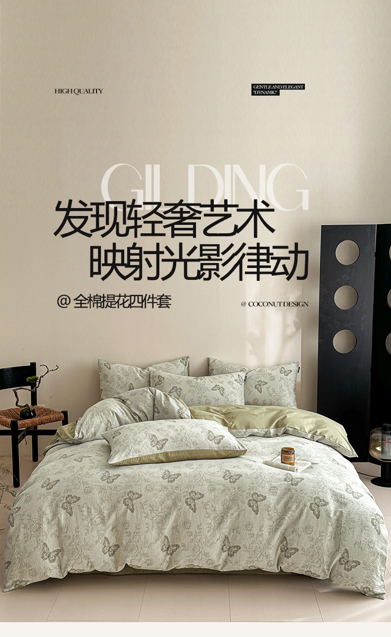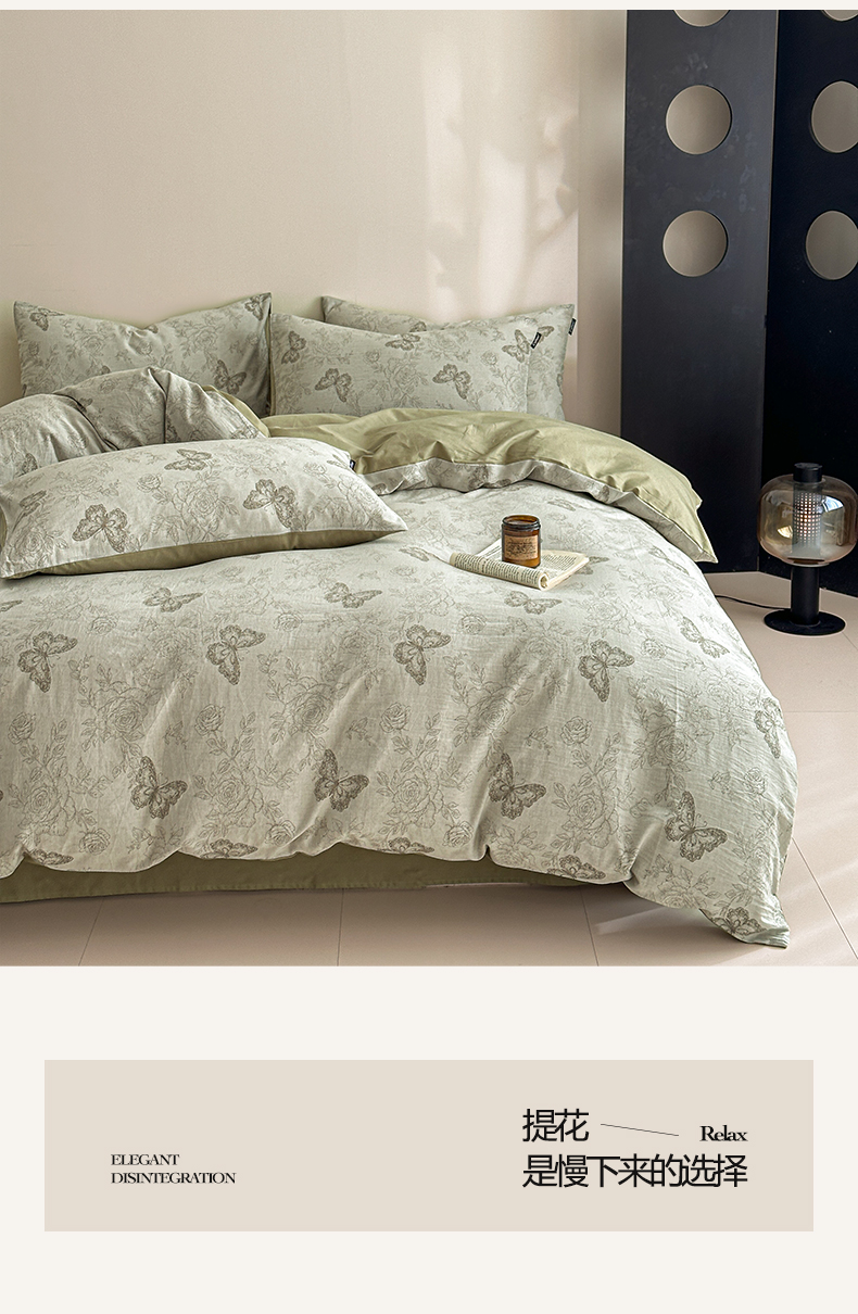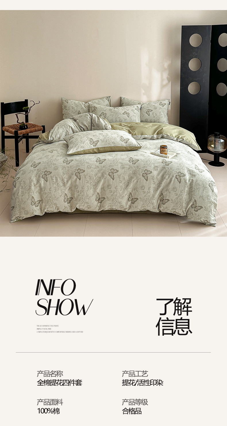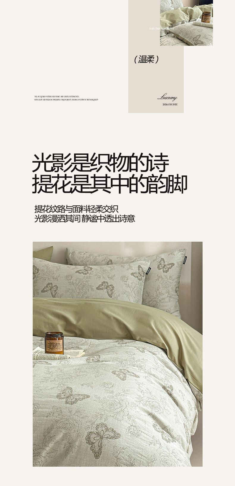 当前位置: 91家纺网 > 商品网购 > 床品套件 > 四件套 > 全棉普通四件套 > 涵宸家纺 2026新款全棉提花色坊系列四件套 玫瑰花蝶-绿