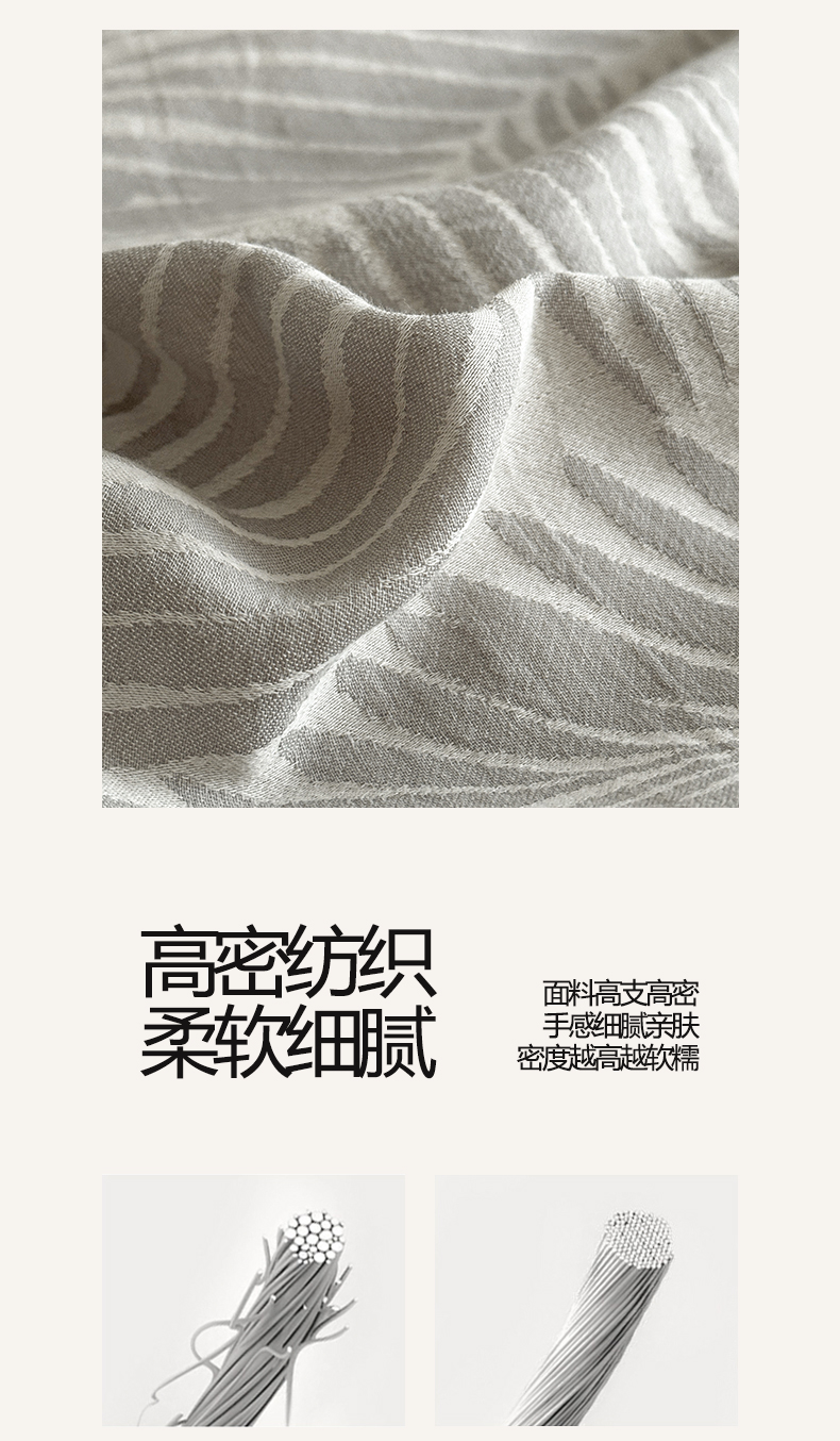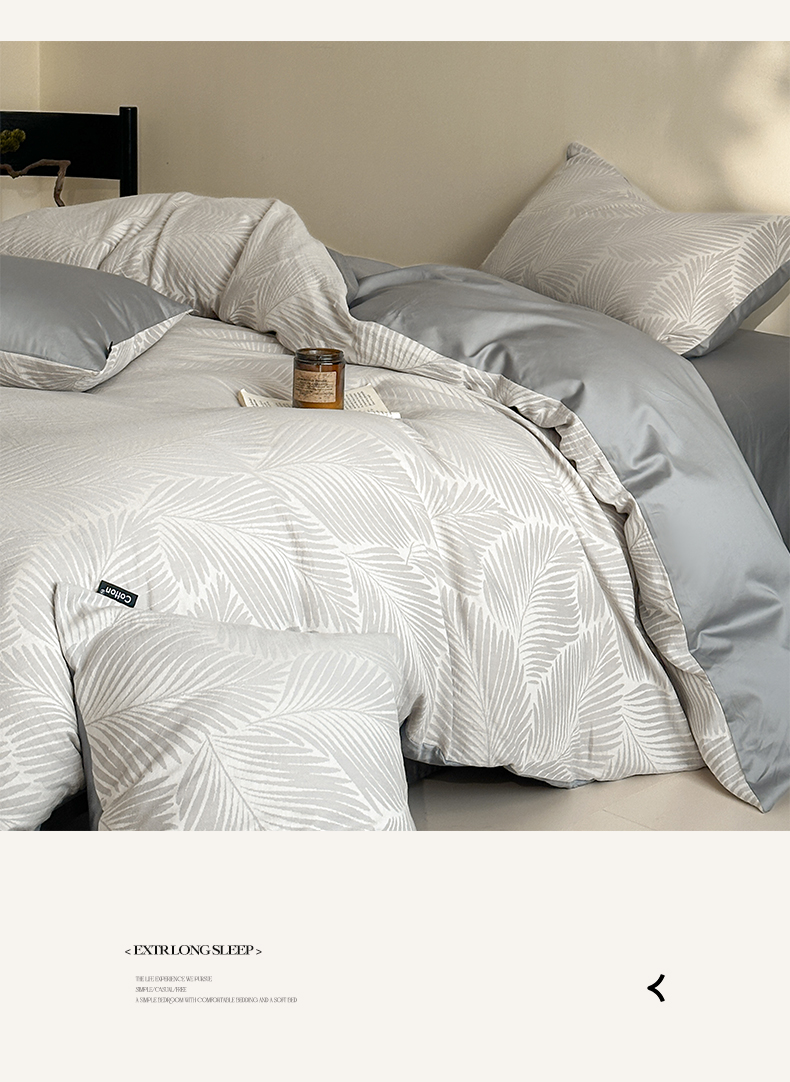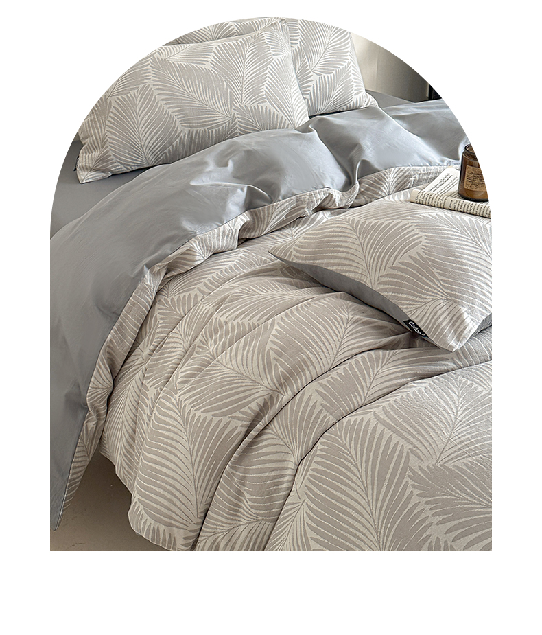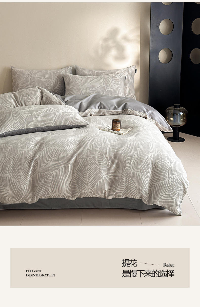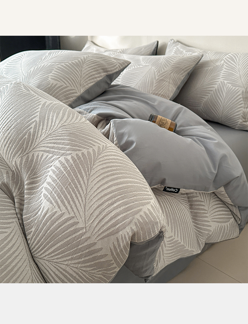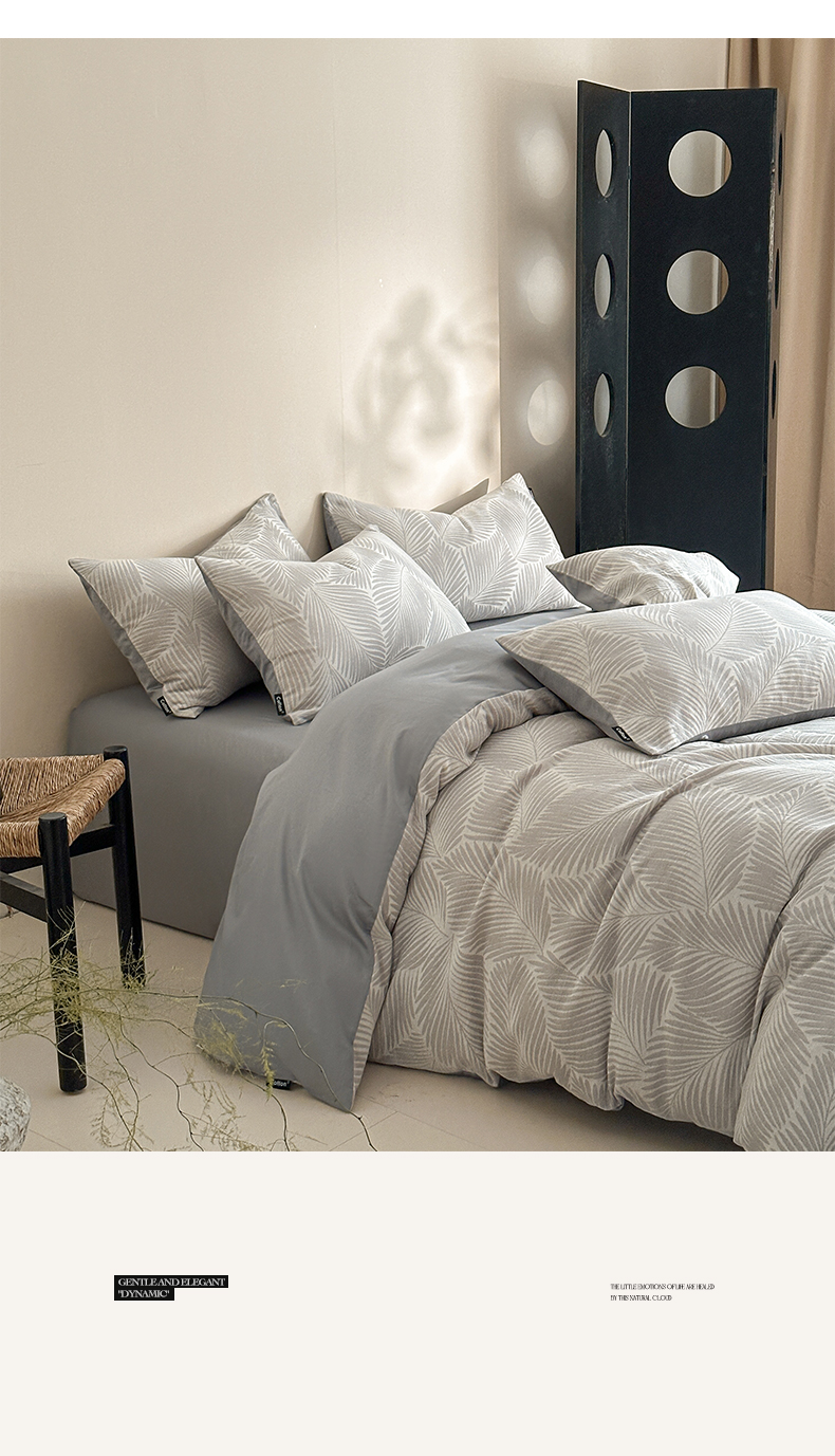 当前位置: 91家纺网 > 商品网购 > 床品套件 > 四件套 > 全棉普通四件套 > 涵宸家纺 2026新款全棉提花色坊系列四件套 叶影-灰