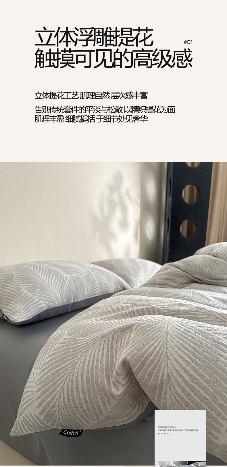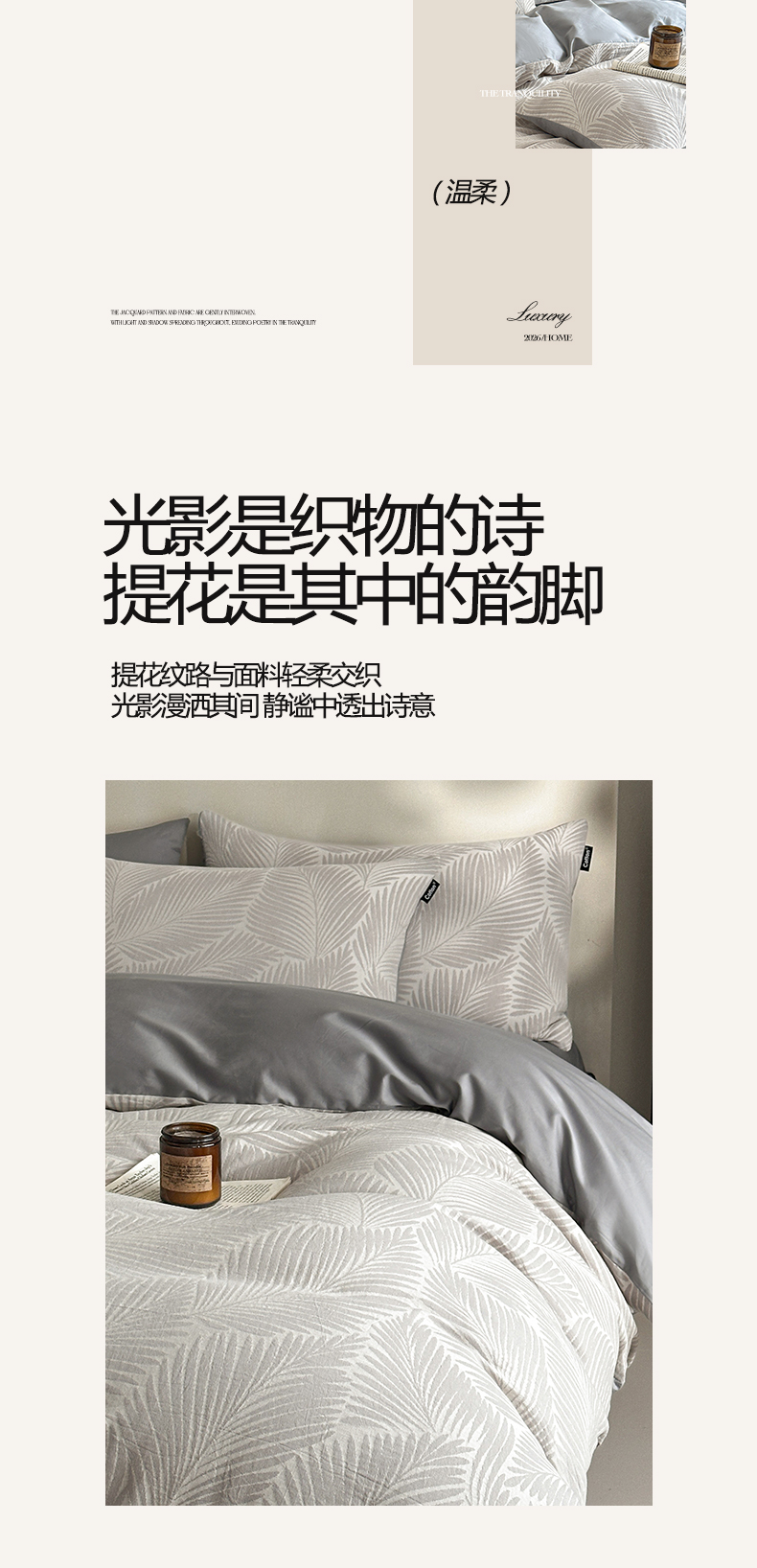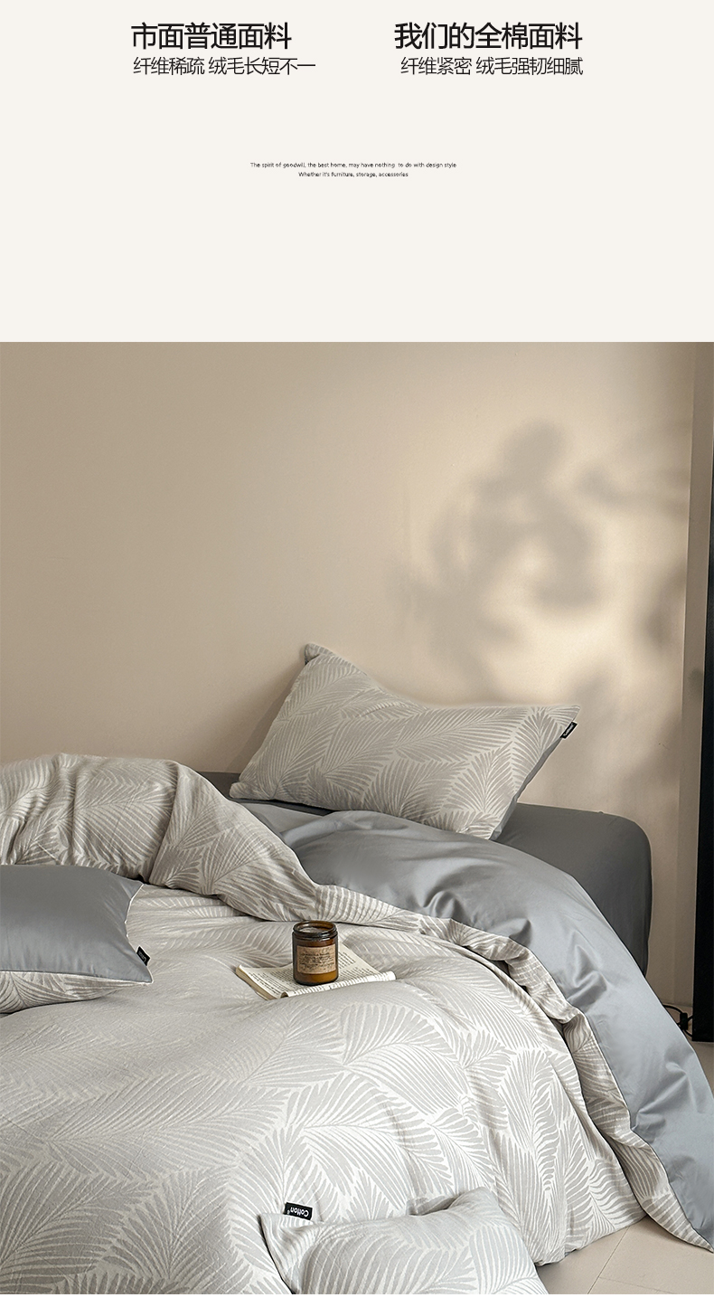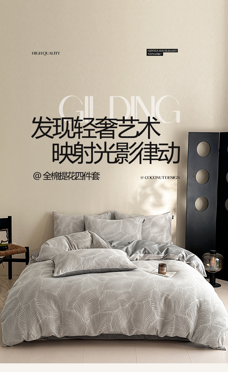 当前位置: 91家纺网 > 商品网购 > 床品套件 > 四件套 > 全棉普通四件套 > 涵宸家纺 2026新款全棉提花色坊系列四件套 叶影-灰