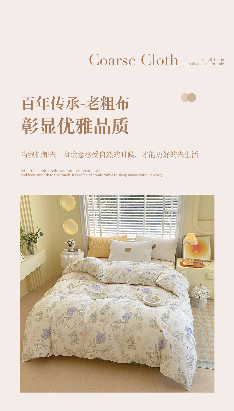 春皖家纺 2026高端直播热卖非遗A类全棉老粗布加厚床单款三件套-工艺款单被套 逸云