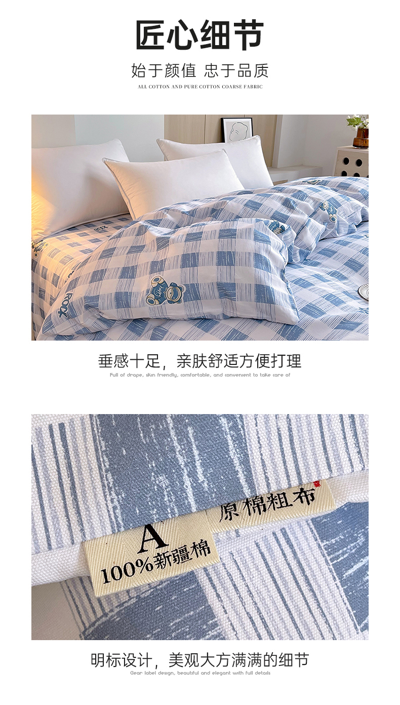 商品名称:春皖家纺 2026高端直播热卖非遗A类全棉老粗布加厚床单款三件套-普通款单被套 摇滚