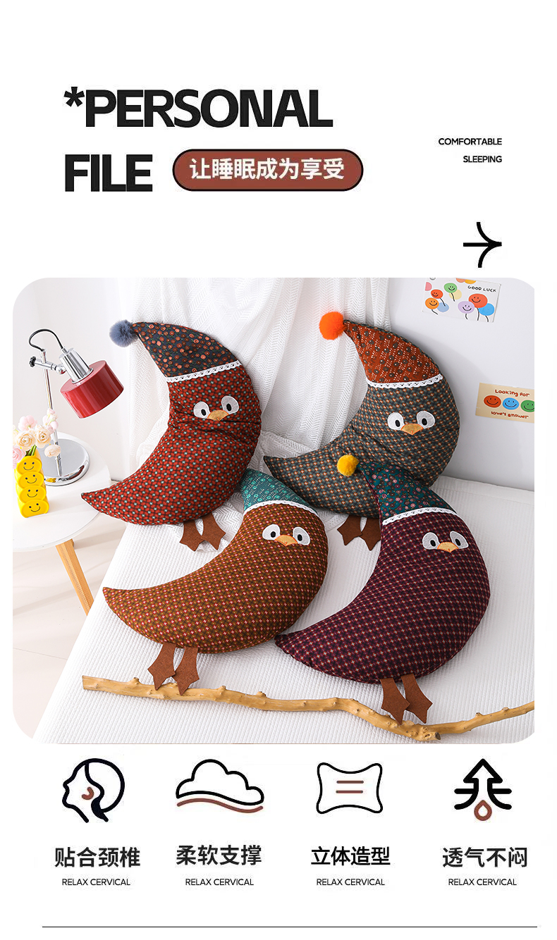当前位置: 91家纺网 > 商品网购 > 枕头/枕芯/保健枕/颈椎枕 > 枕头枕芯 > 芯洲 2026新款卡通可爱小鸟造型双层纱荞麦枕枕头枕芯 月眠鸟-橙