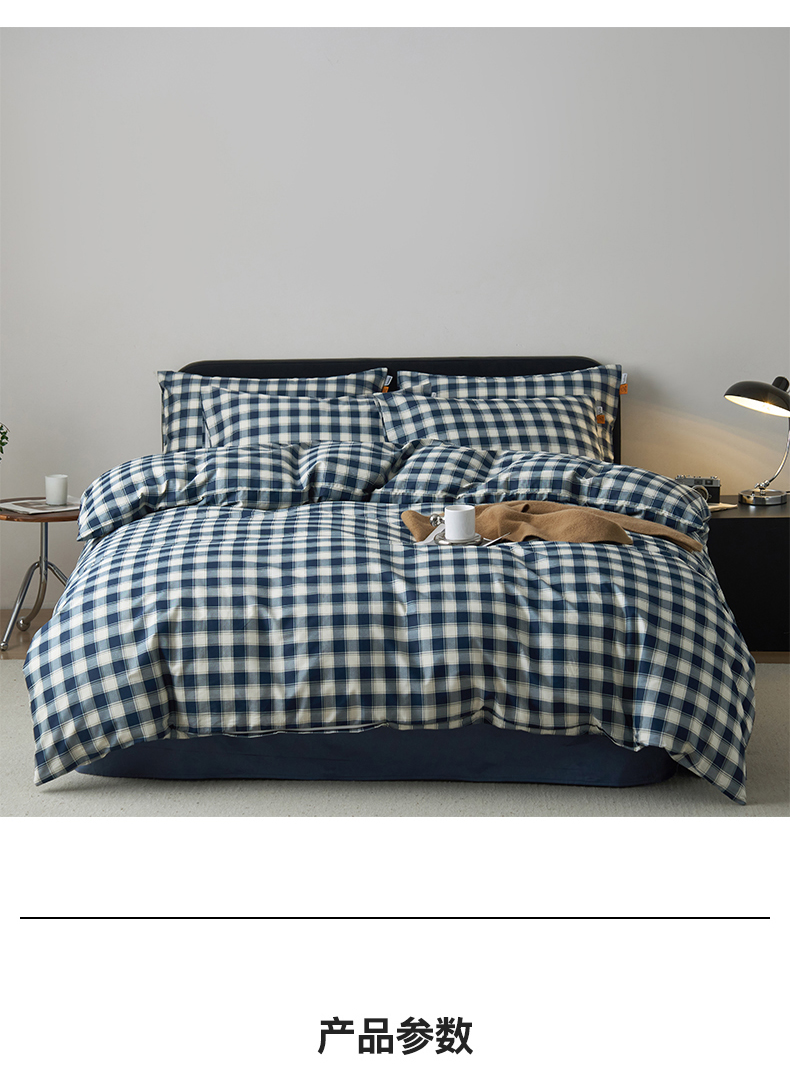 当前位置: 91家纺网 > 商品网购 > 床品套件 > 四件套 > 全棉普通四件套 > 简宜家居(朝初家纺) 2026新款简约格子40支13070纯棉全棉四件套 藏青学院