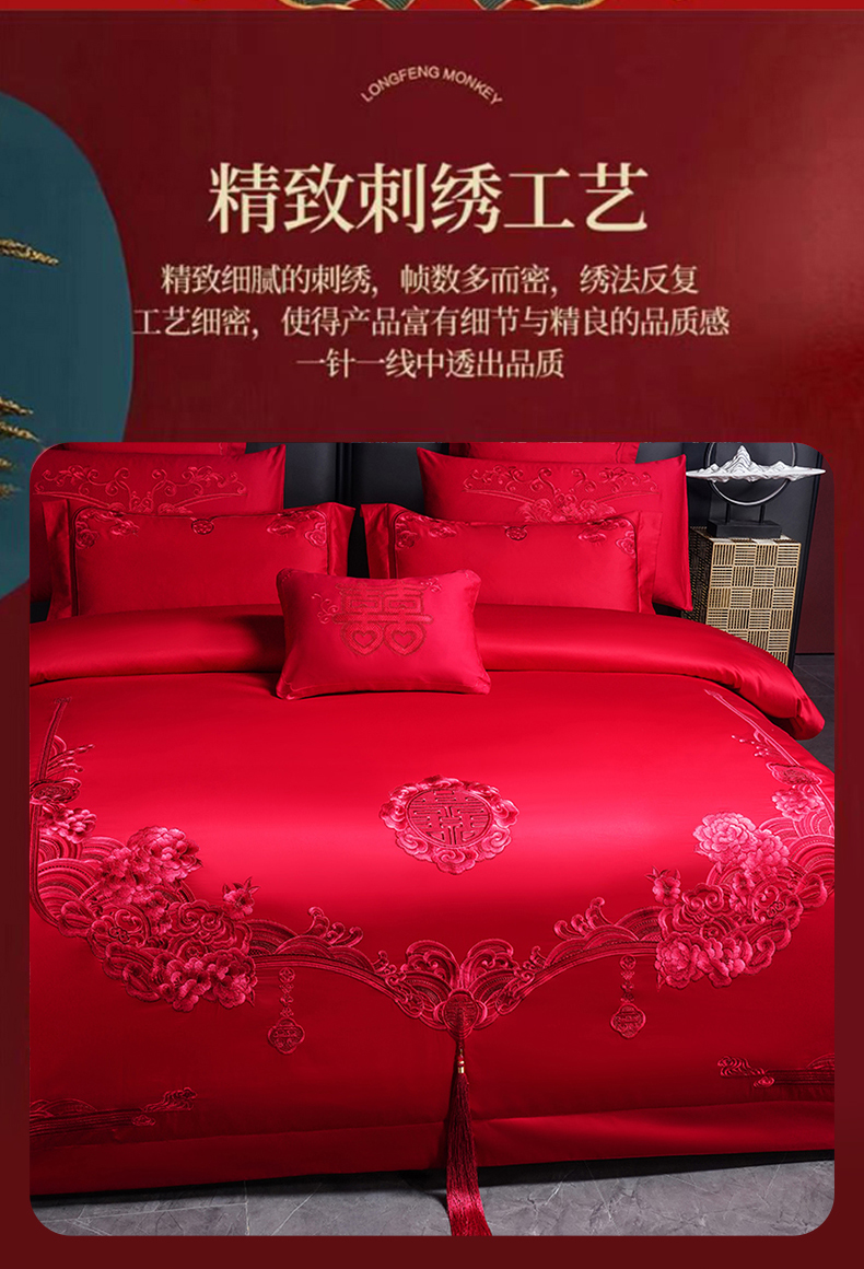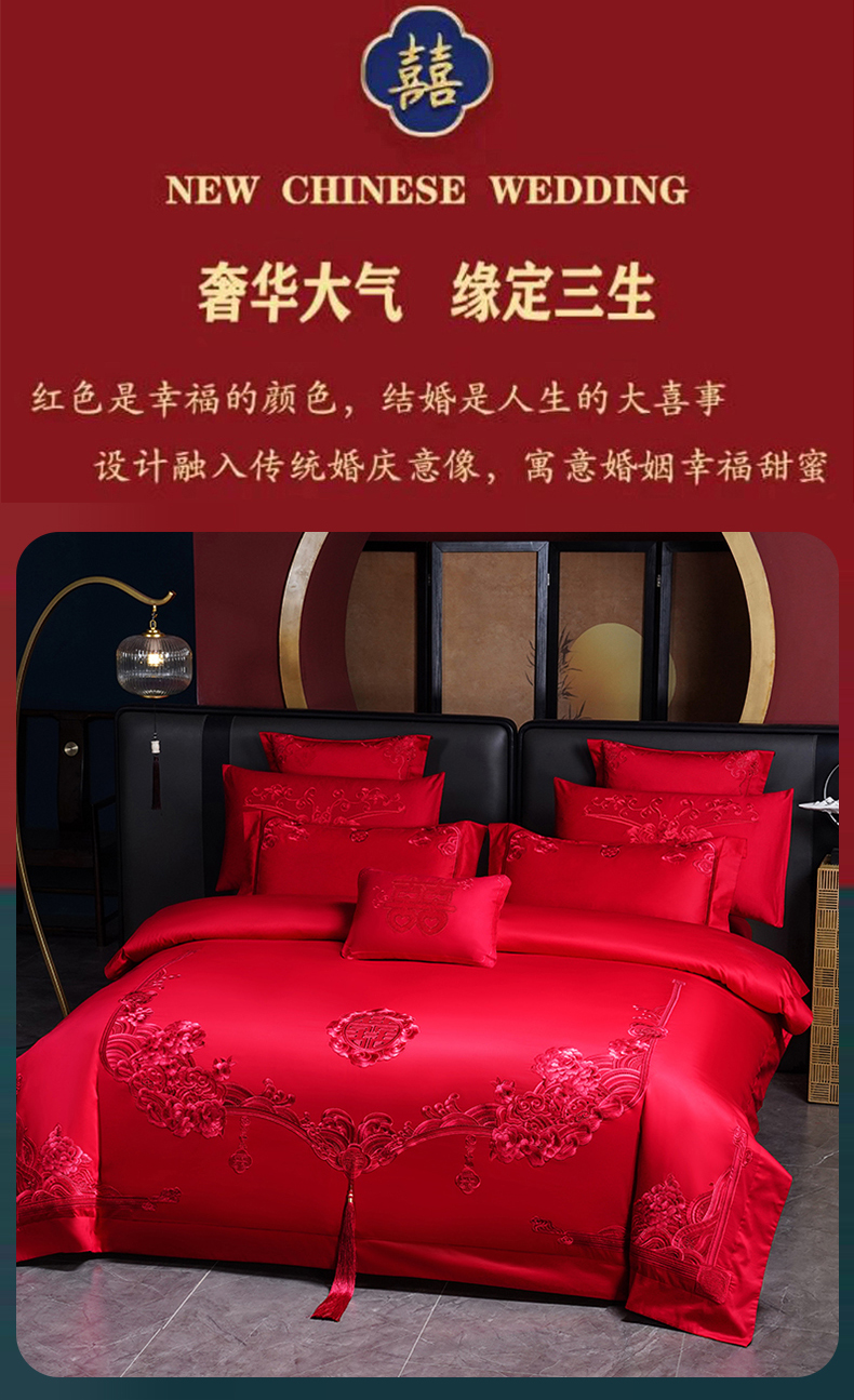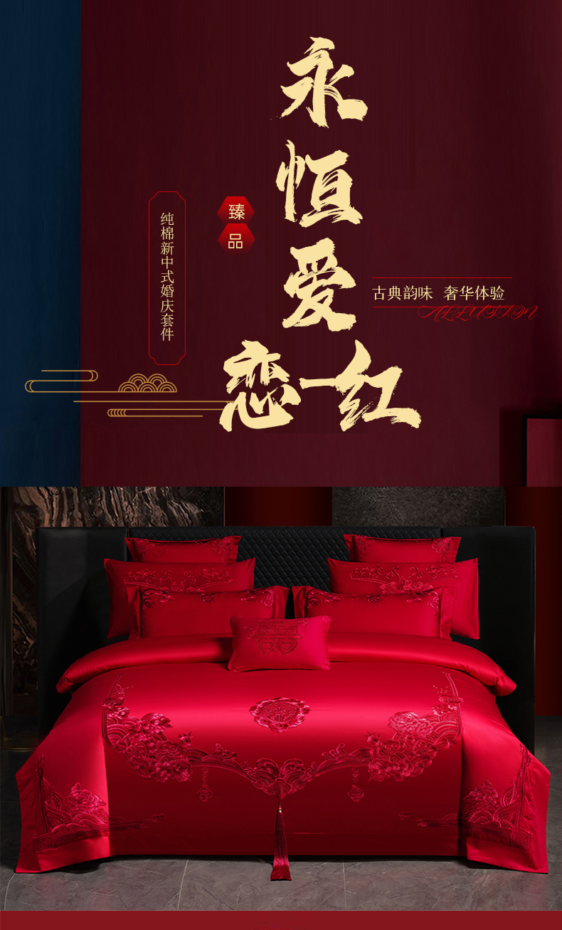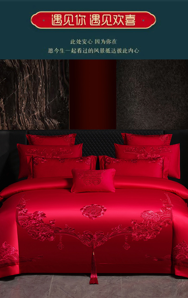 当前位置: 91家纺网 > 商品网购 > 床品套件 > 四件套 > 婚庆四件套 > 博之洋婚庆 2026新款全棉纯棉长绒棉刺绣婚庆四件套多件套 永恒爱恋-红