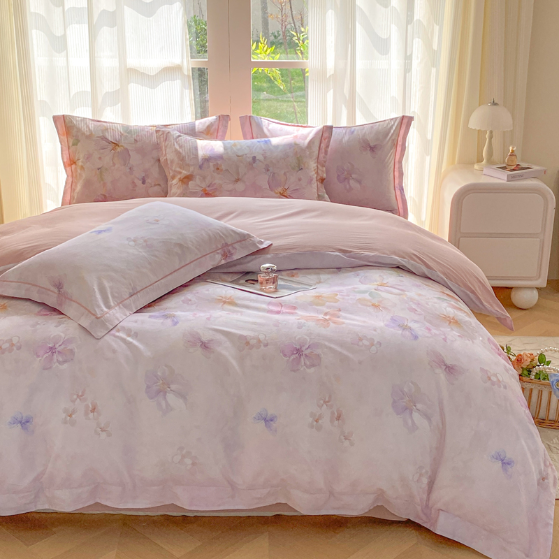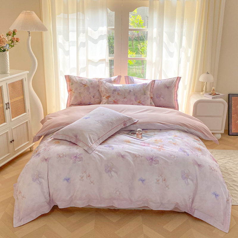凌鼎 2026新款高支高密100%全棉数码印花四件套 溯梦粉