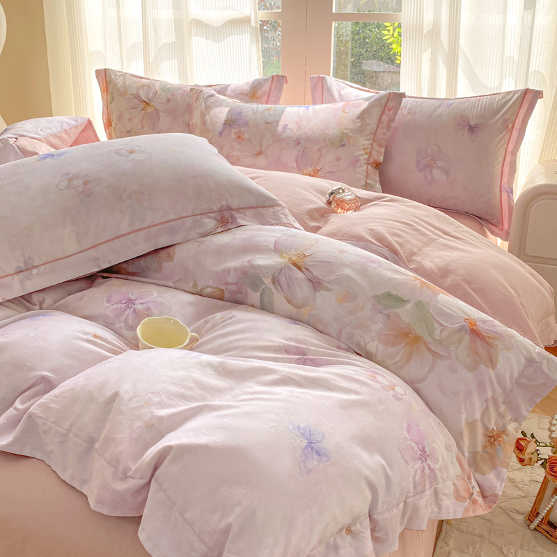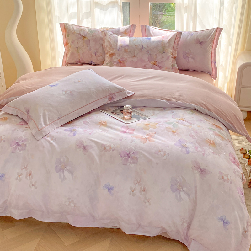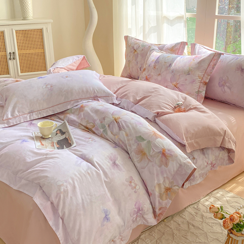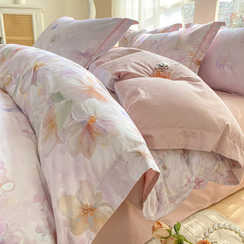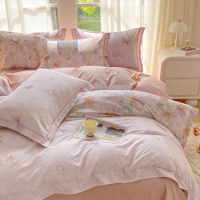 商品名称:凌鼎 2026新款高支高密100%全棉数码印花四件套 溯梦粉