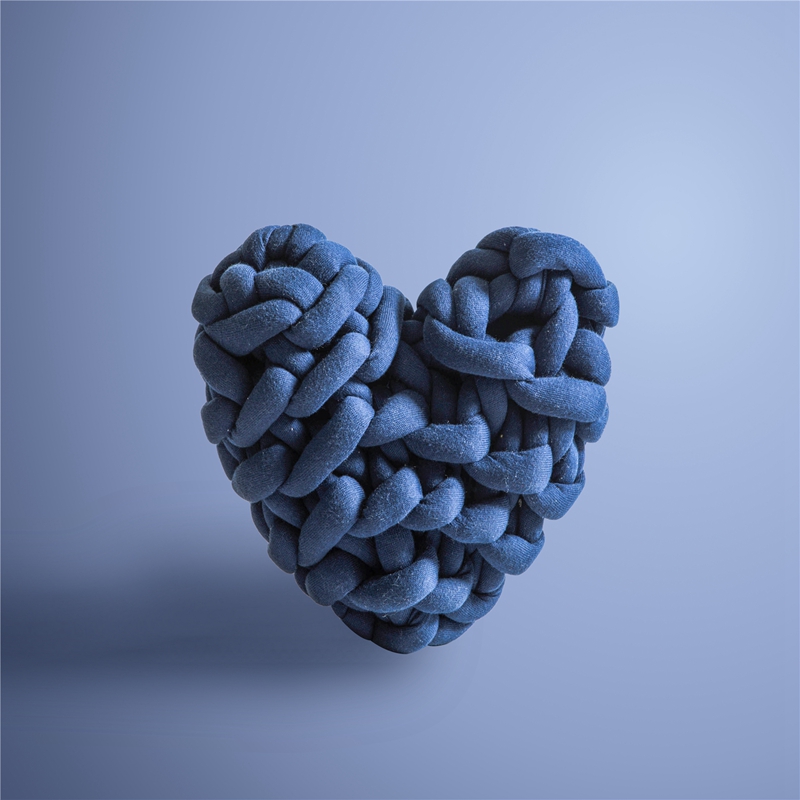 暖绵绵 新品哈特打结爱心抱枕针织靠枕抱枕靠垫 深蓝色