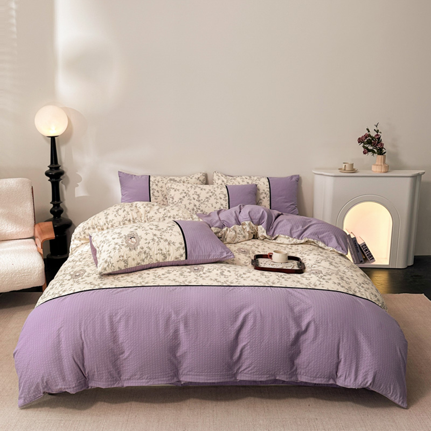 商品名称:(总)诺梵家纺 2026春夏新品高克重拼接泡芙纱泡泡皱皱纱四件套