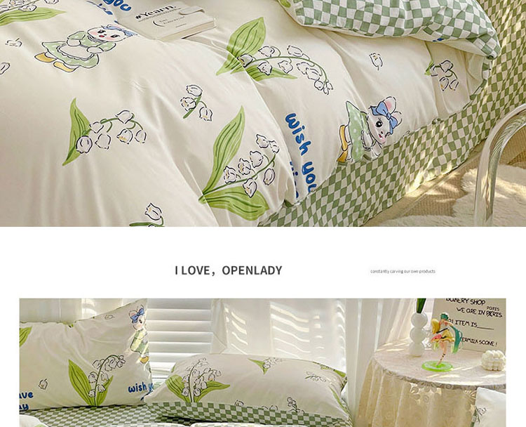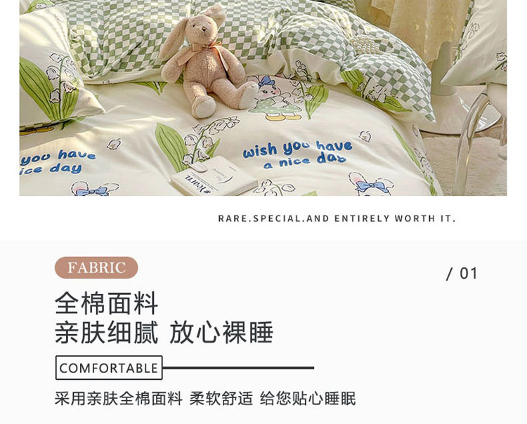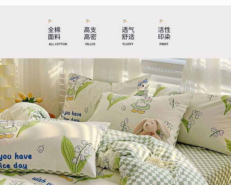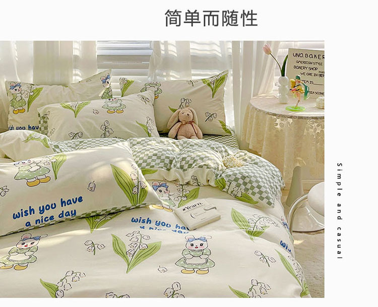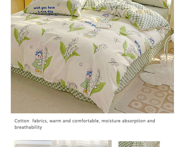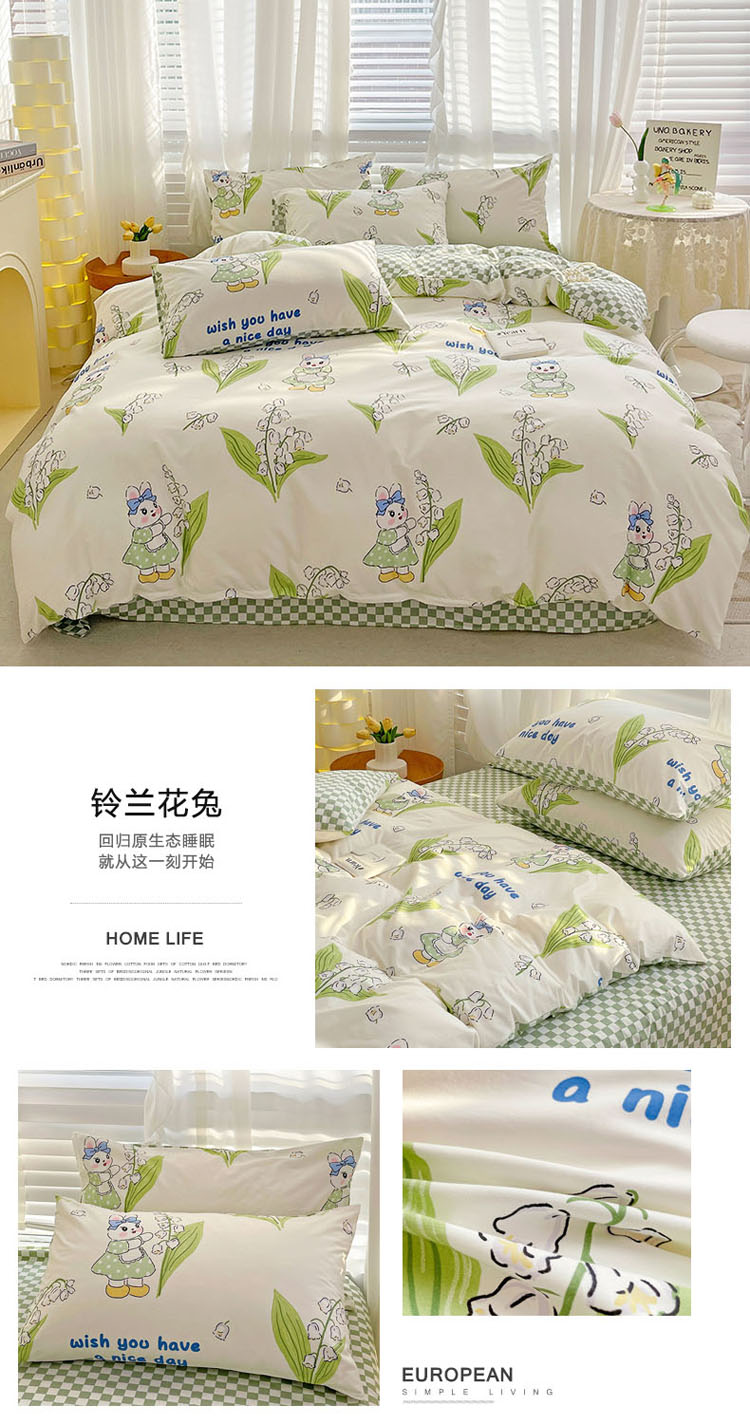 商品名称:梦家居 2023春季新品小清新系列全棉单被套 铃兰花兔