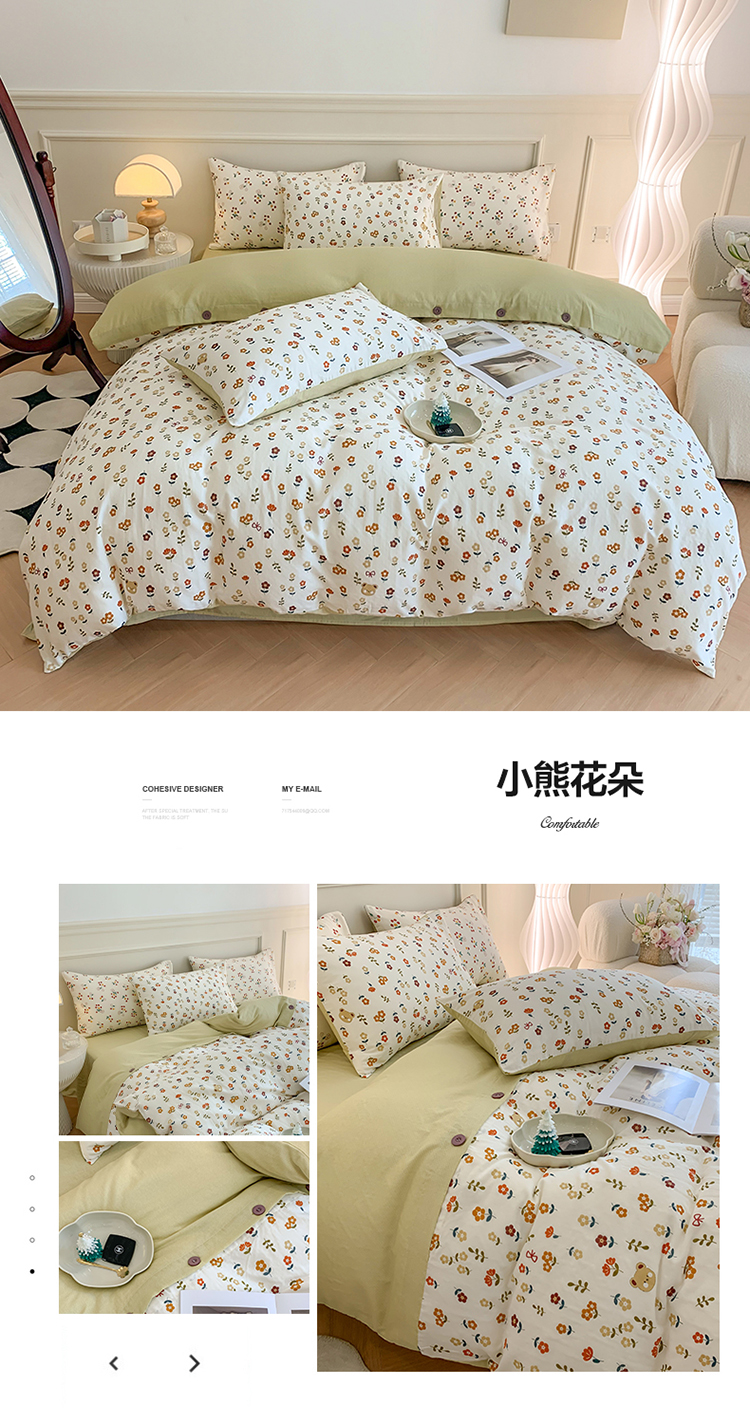 澳萝拉2023新款40支双层纱纽扣款四件套 小熊花朵