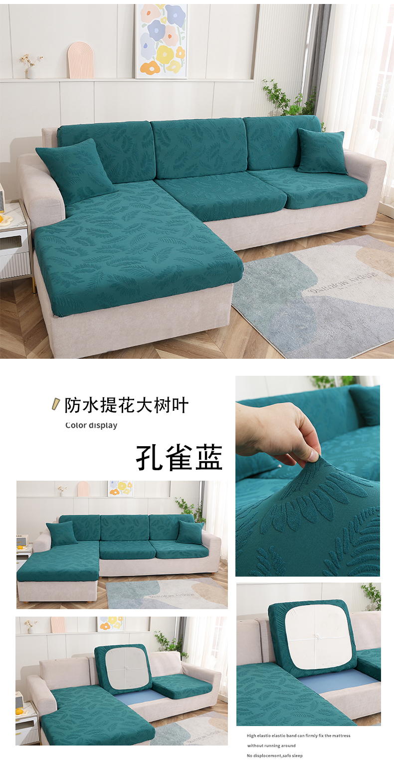 当前位置: 91家纺网 > 商品网购 > 居家布艺 > 坐垫/椅垫/沙发垫 > 沙发垫 > 兴妮雅 2023新款大树叶防水弹力立体浮雕提花贵妃沙发坐垫套 孔雀蓝