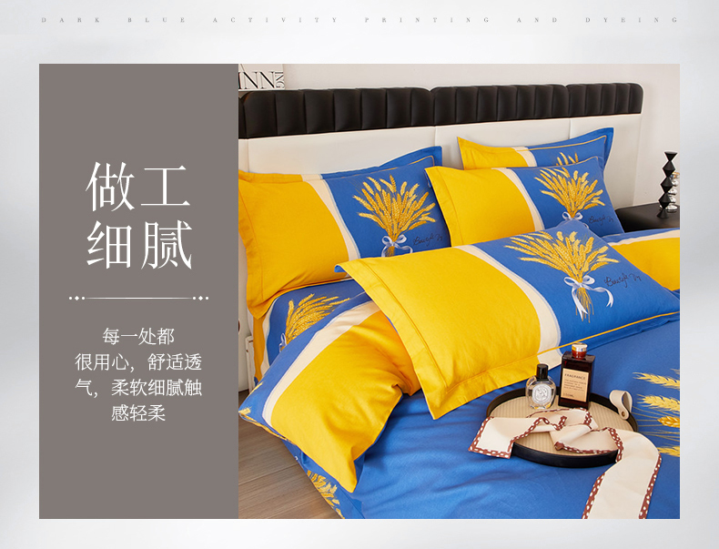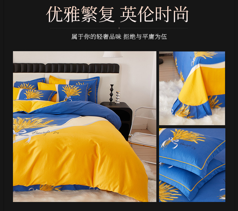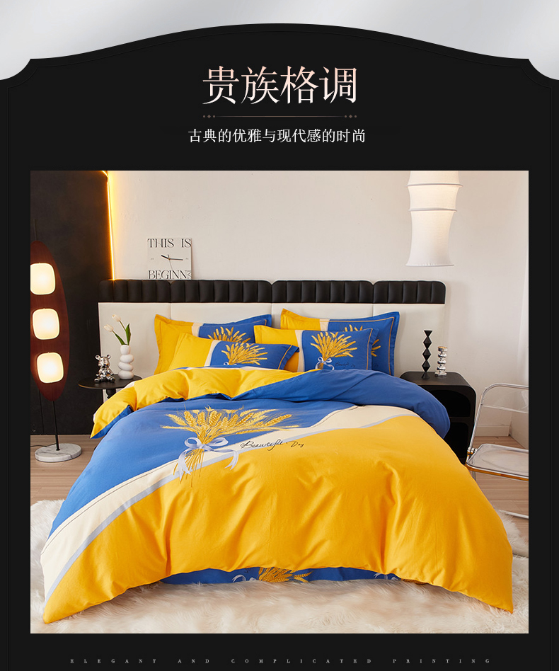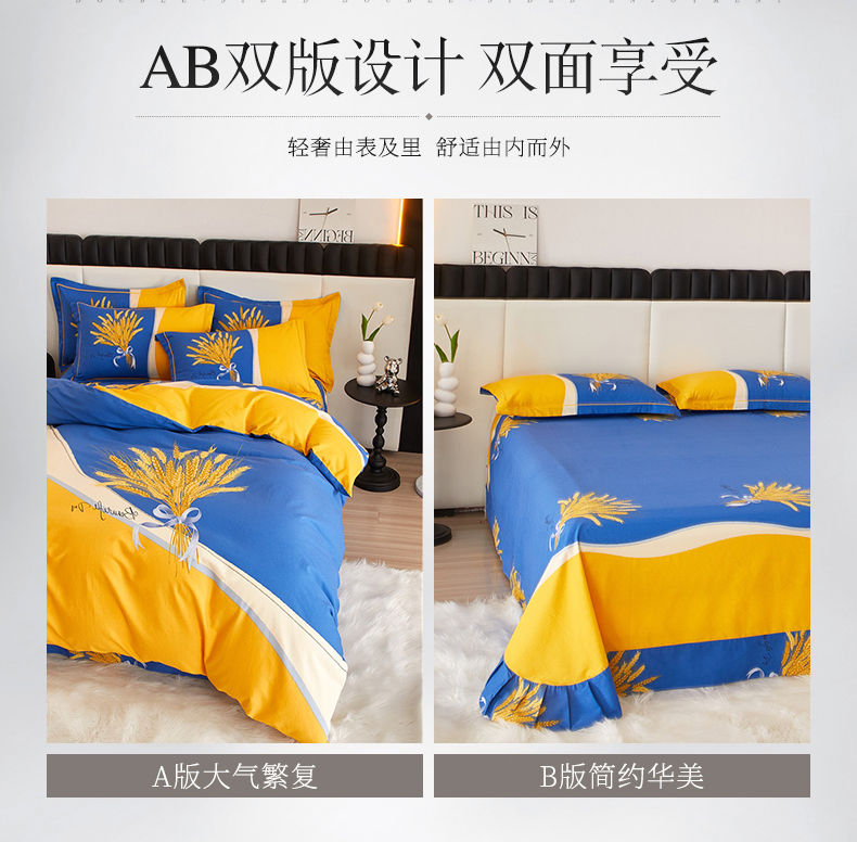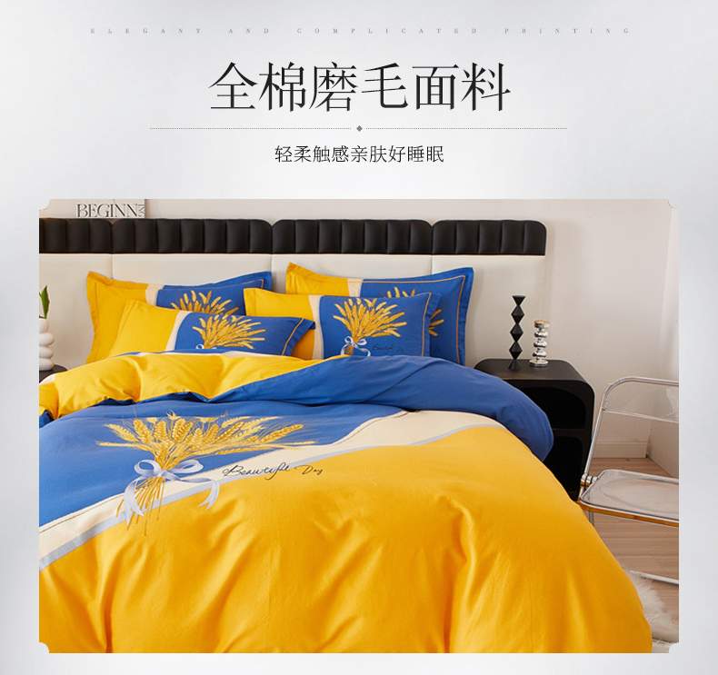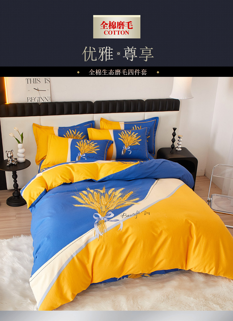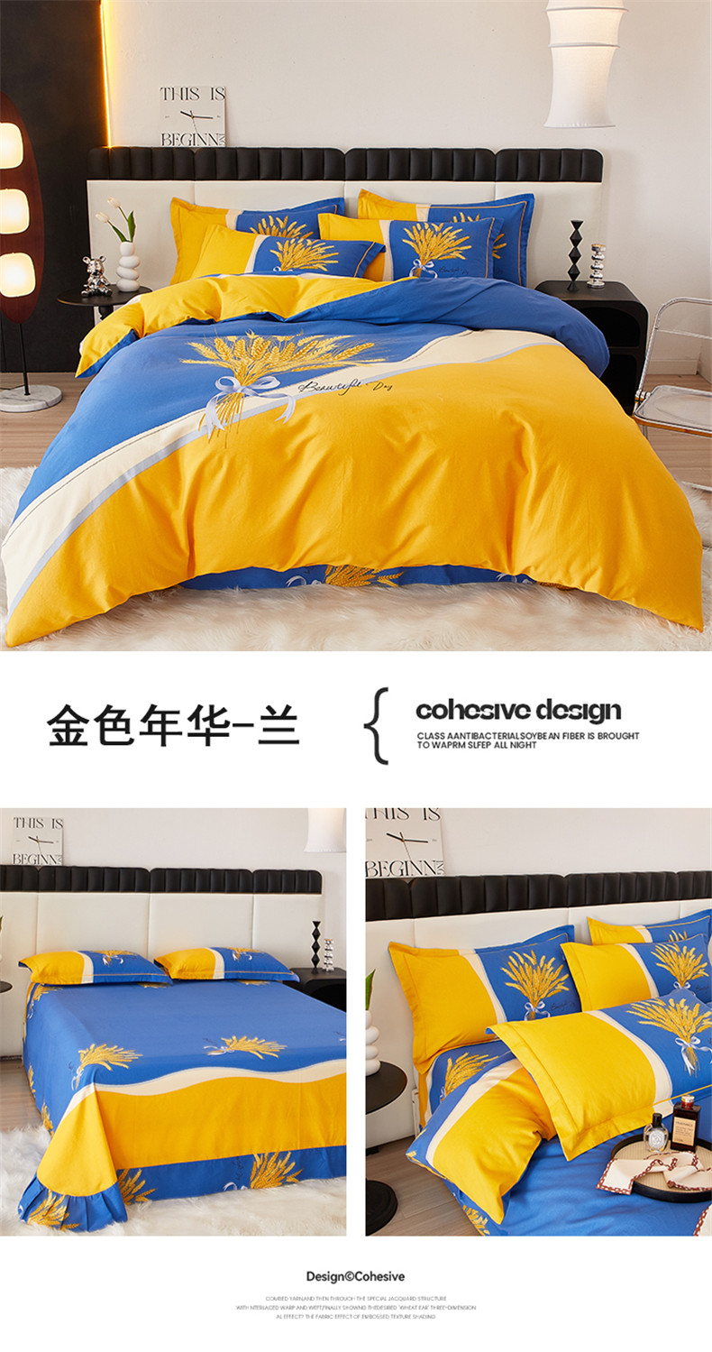 当前位置: 91家纺网 > 商品网购 > 床品套件 > 四件套 > 全棉普通四件套 > 沐白家居 2023全棉大版生态磨毛四件套 金色年华-兰