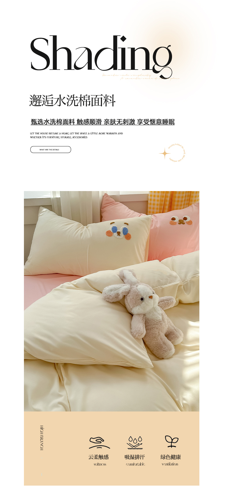 当前位置: 91家纺网 > 商品网购 > 床品套件 > 四件套 > 水洗棉四件套 > 韩都家居 2024新款水洗棉萌眼系列四件套 纳米+玉