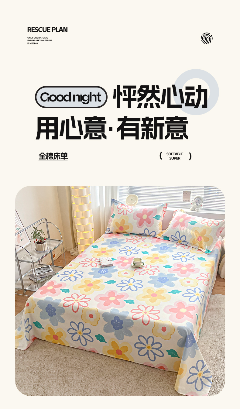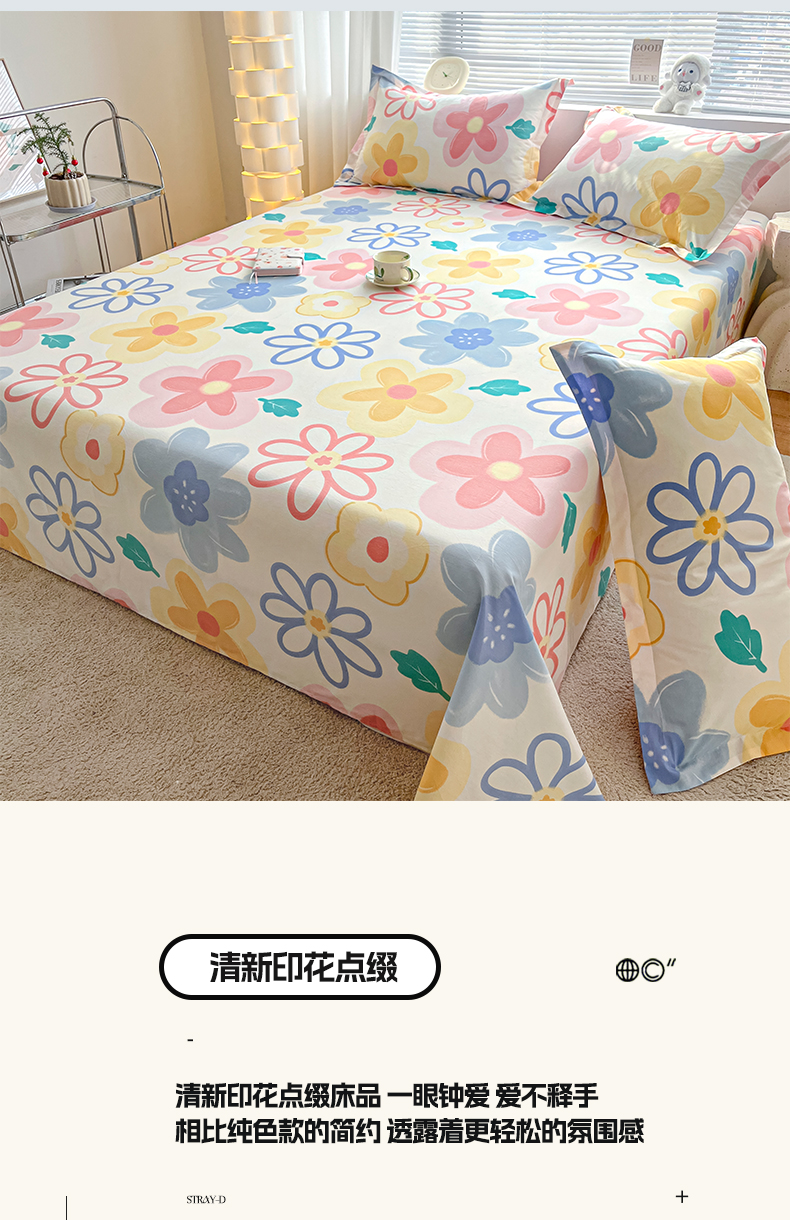 涵宸家纺 2024新款全棉小清新印花单品套件--单床单 床单-爱恋