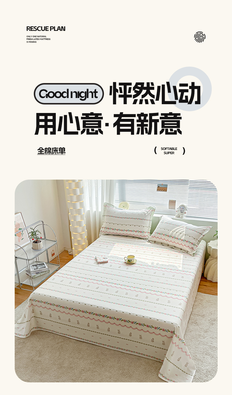 涵宸家纺 2024新款全棉小清新印花单品套件--单床单 床单-辛德瑞拉