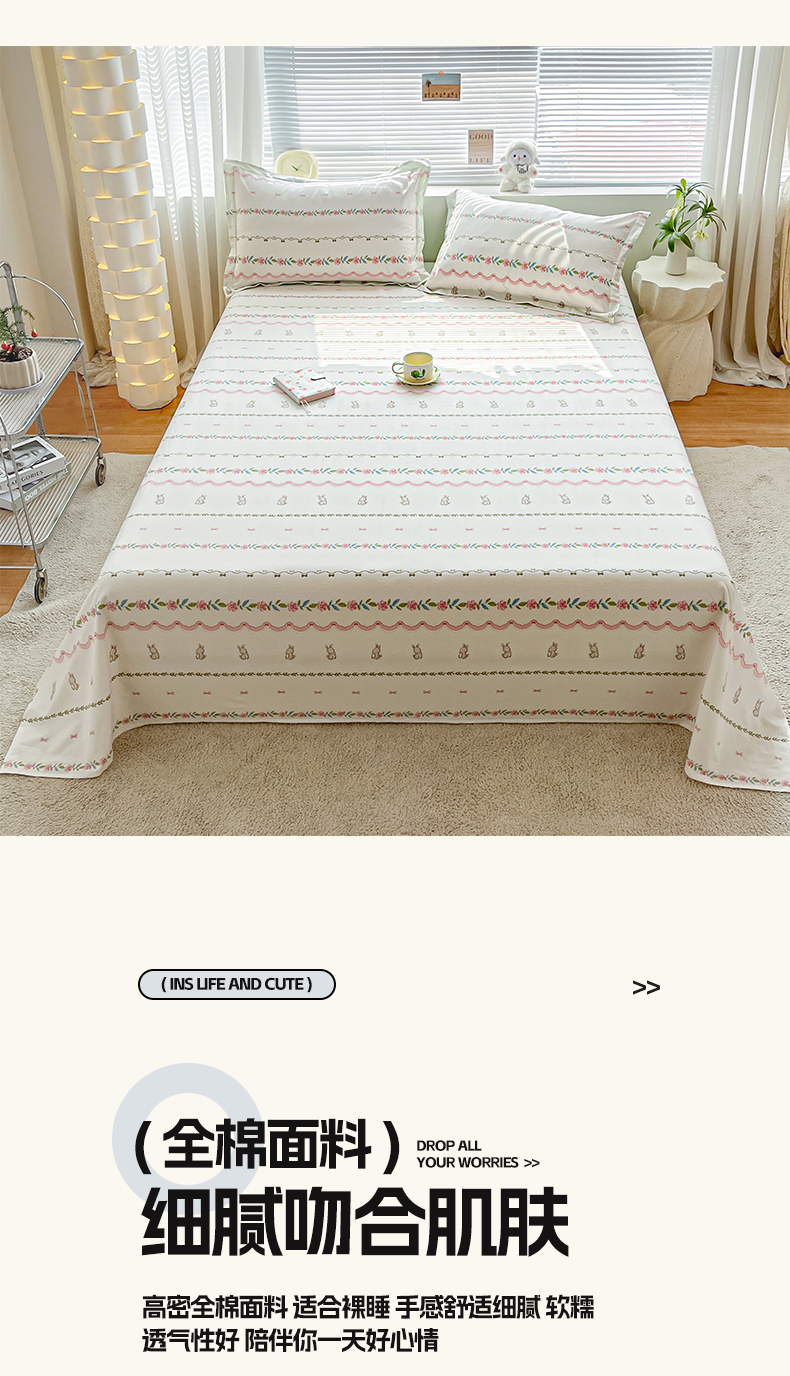 当前位置: 91家纺网 > 商品网购 > 床上用品 > 床单 > 涵宸家纺 2024新款全棉小清新印花单品套件--单床单 床单-辛德瑞拉