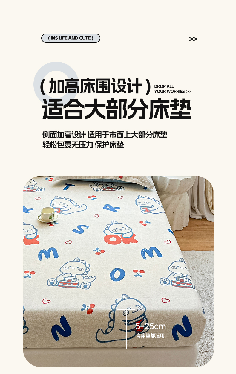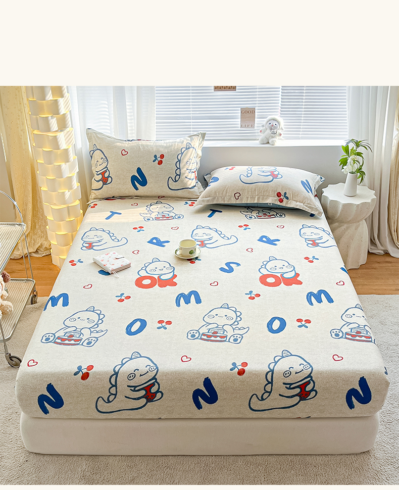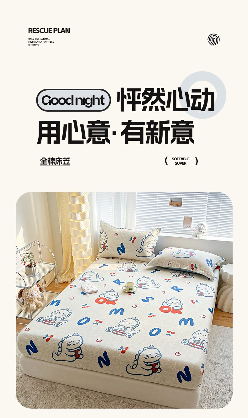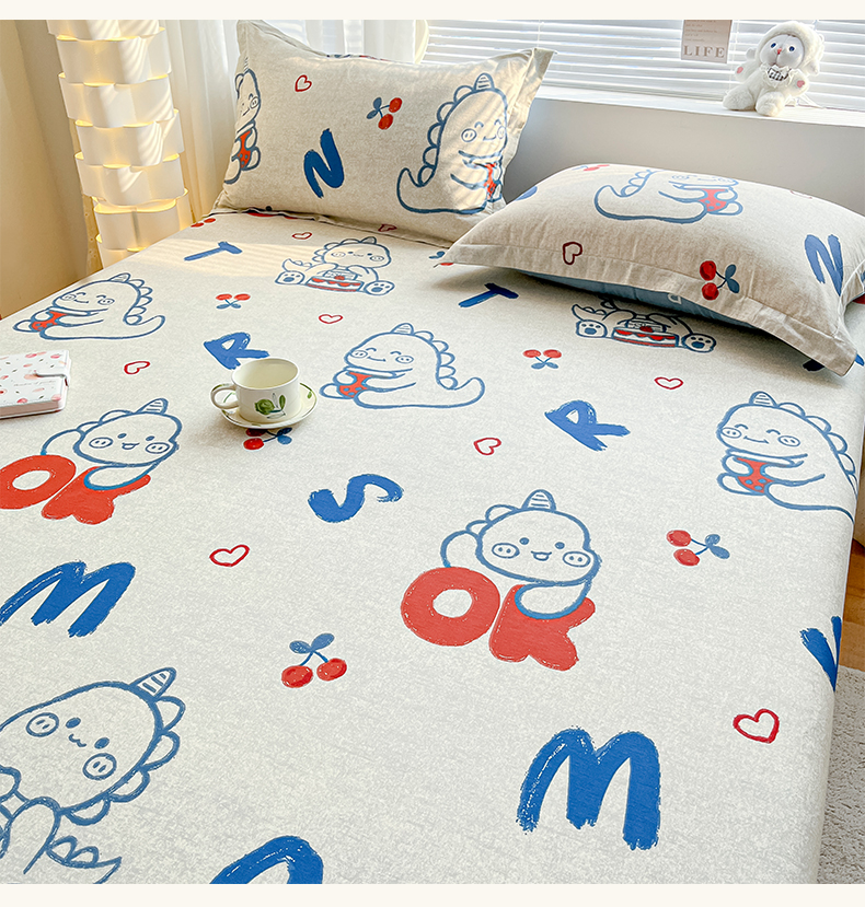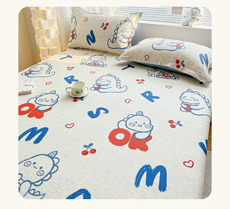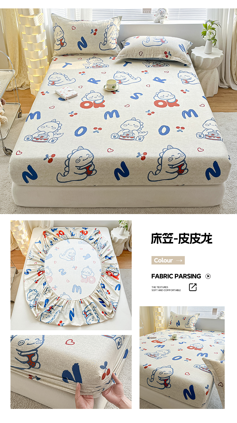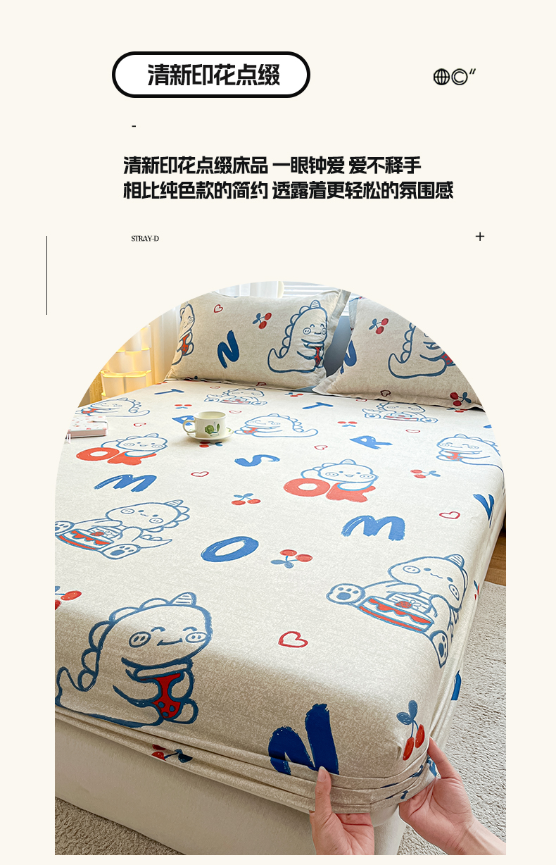 • 91家纺网 家纺一手货源 找家纺 涵宸家纺 2024新款全棉小清新印花单品套件--单床笠 床笠-皮皮龙