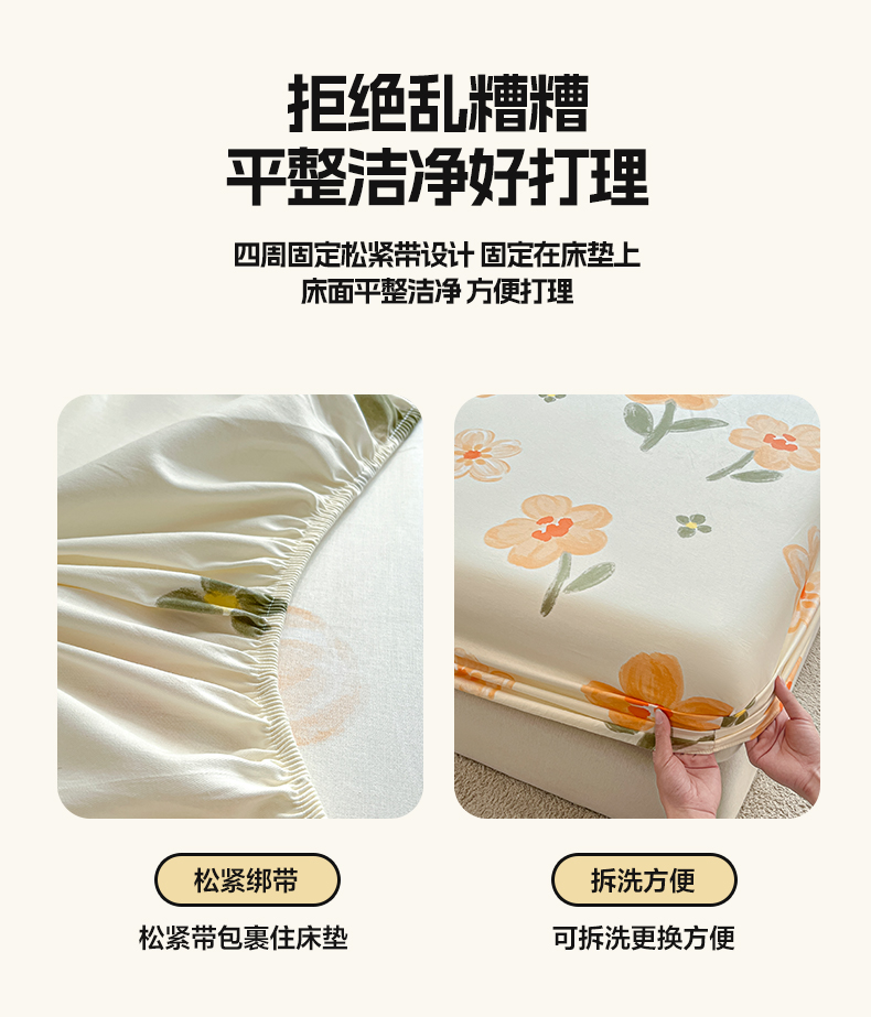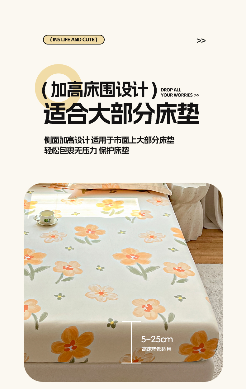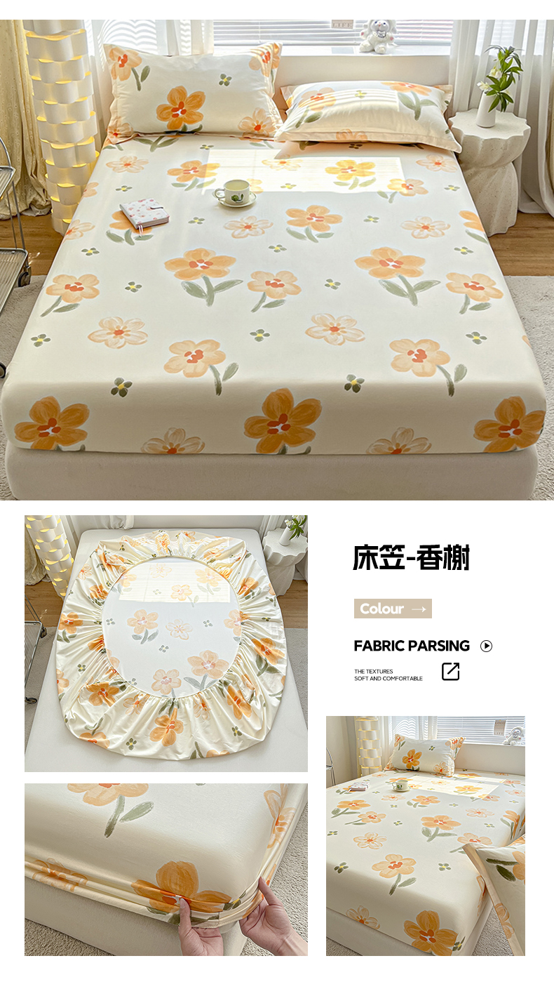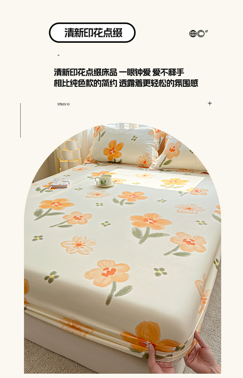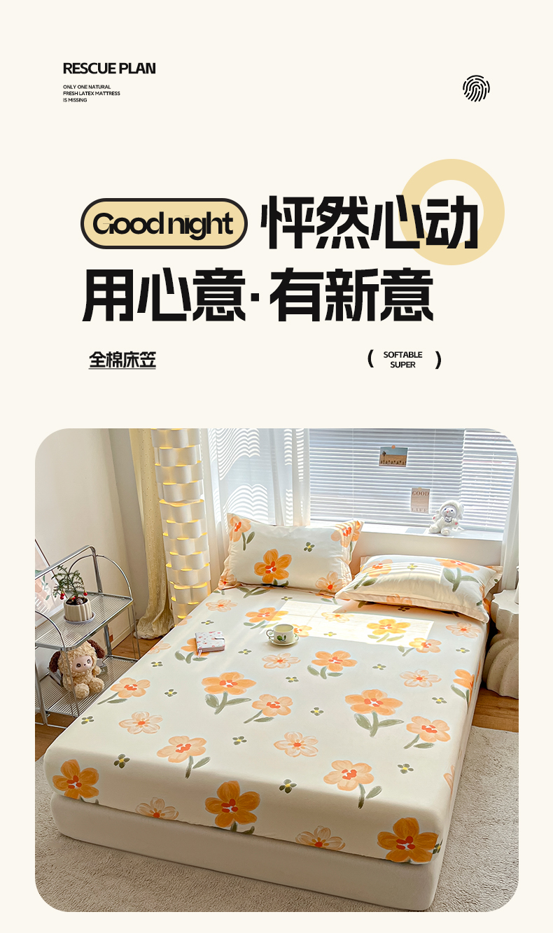 涵宸家纺 2024新款全棉小清新印花单品套件--单床笠 床笠-香榭
