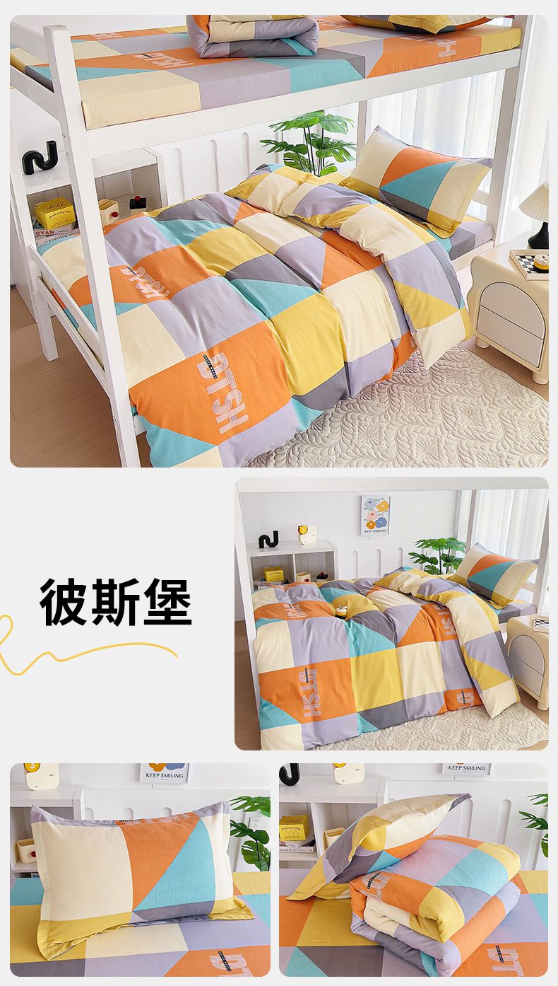 商品名称:优品阁 2024新款全棉磨毛学生上下铺三件套 彼斯堡