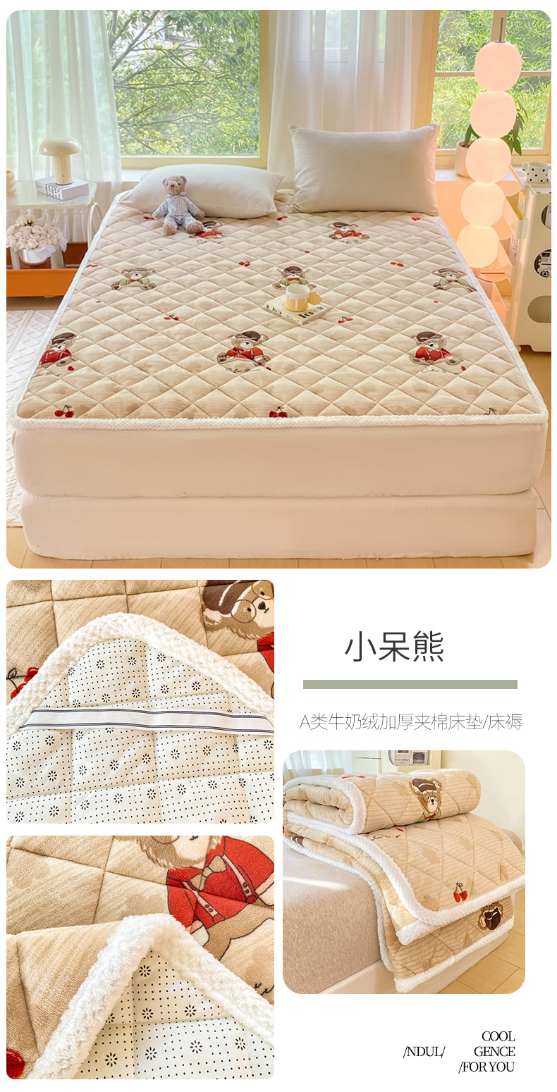 正邦家纺 2024新款牛奶绒床垫小清新加厚床褥保暖宽包边可机洗床护垫床褥 小呆熊