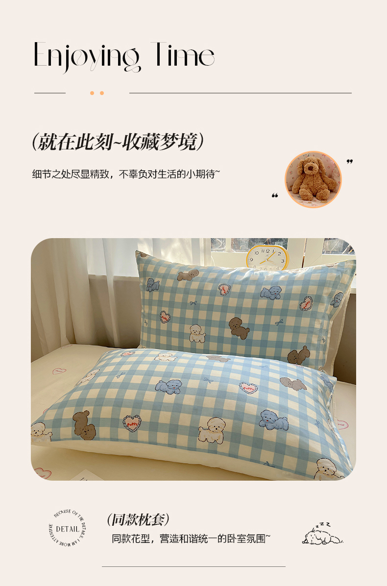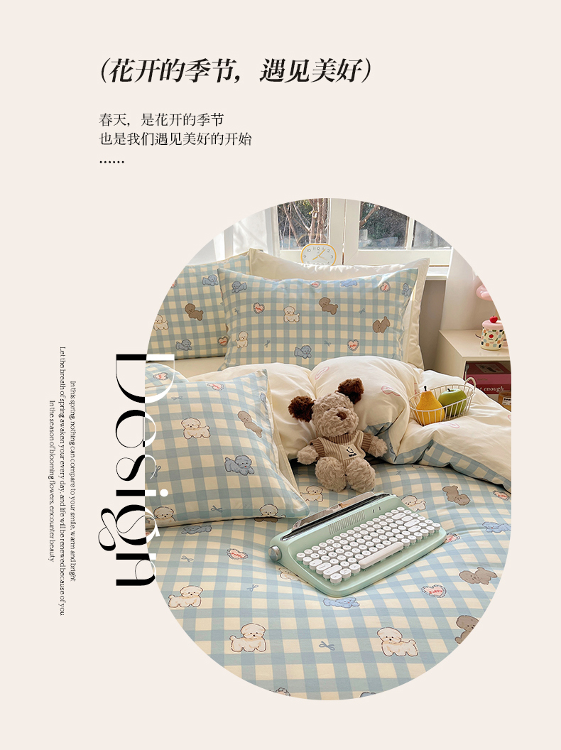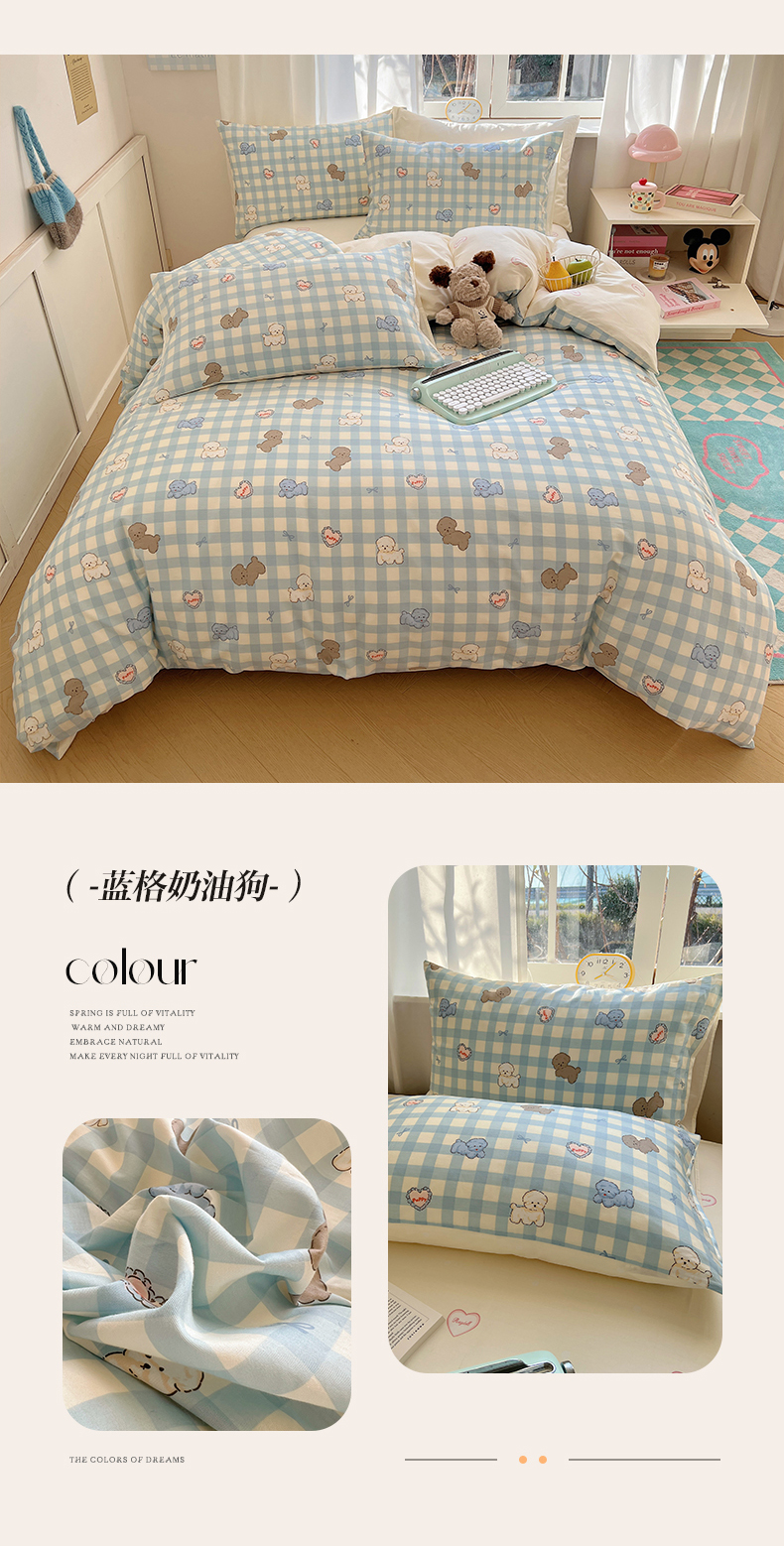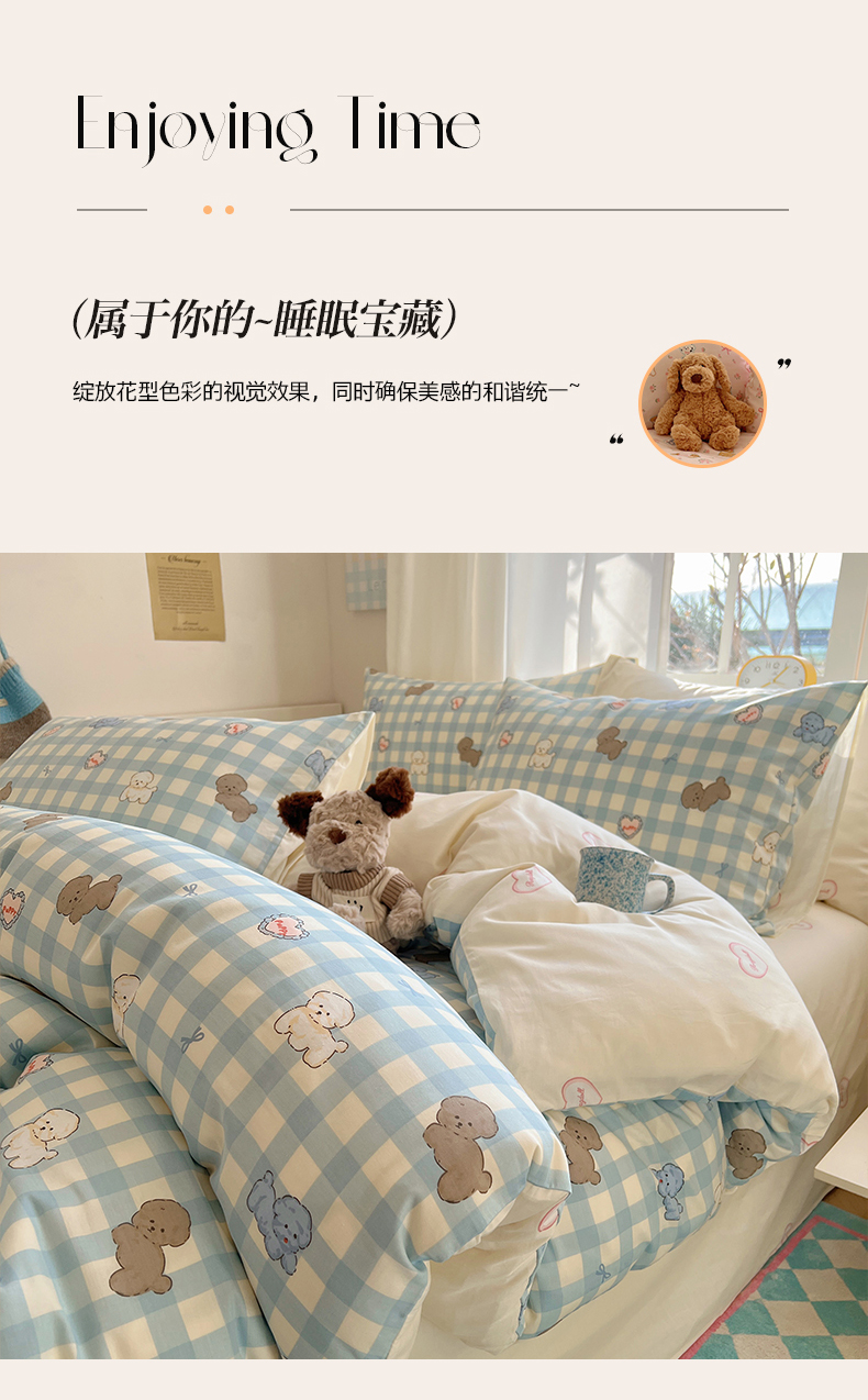 商品名称:六巷胡同 2025新款ins减龄可爱风卡通全棉四件套第一系 蓝格奶油狗