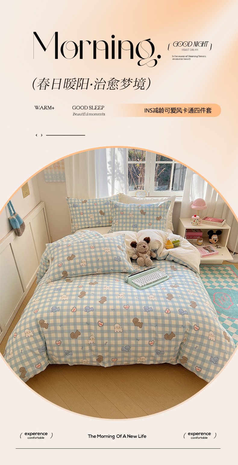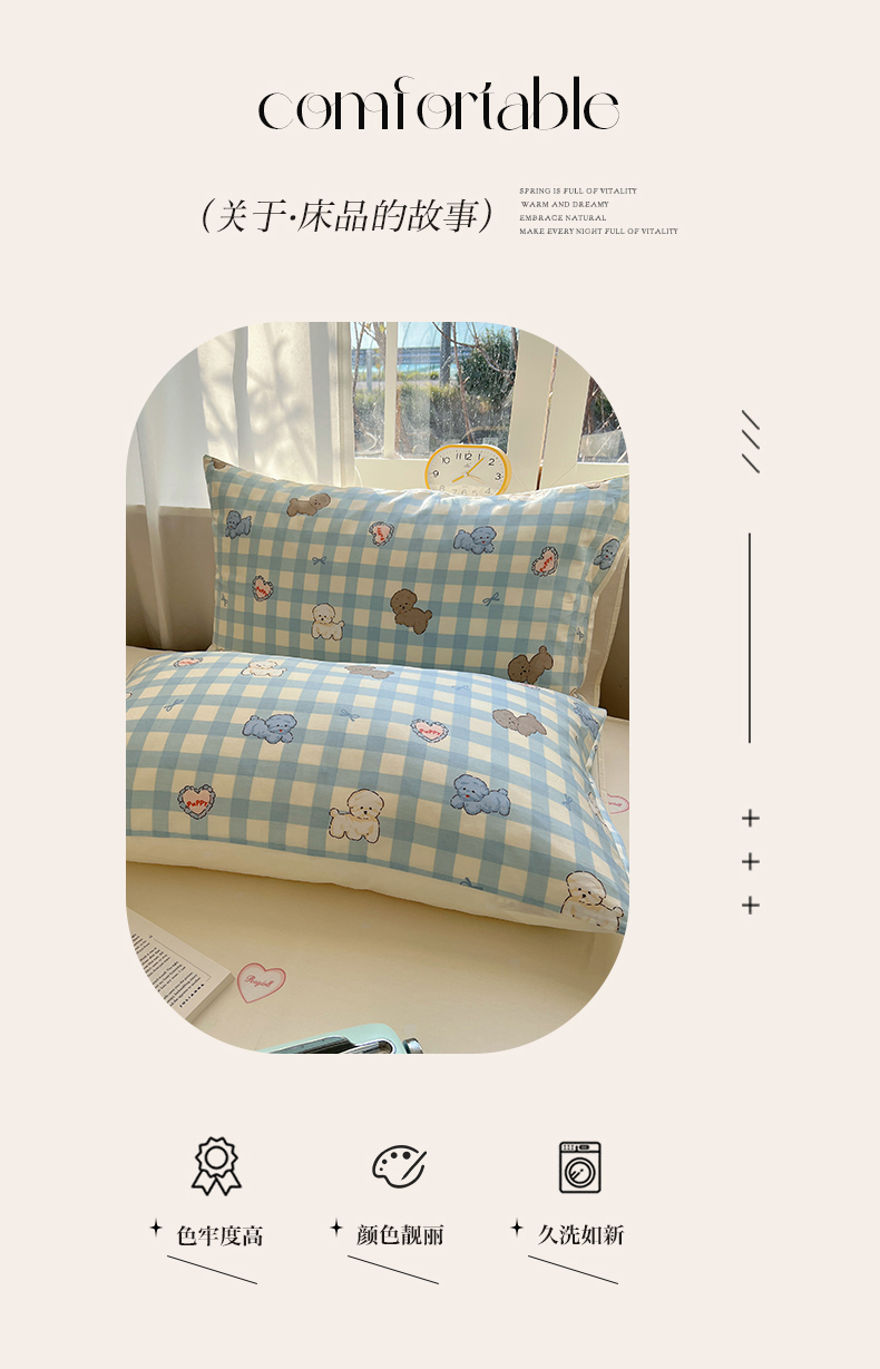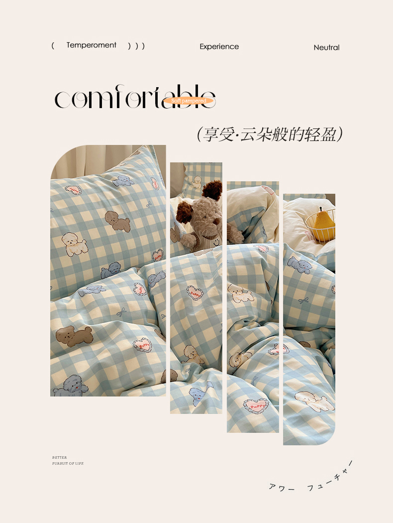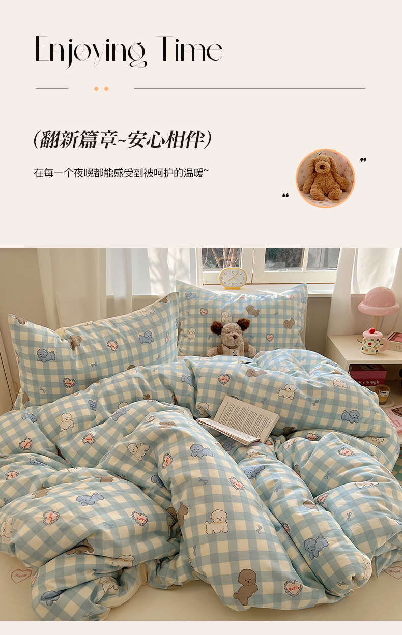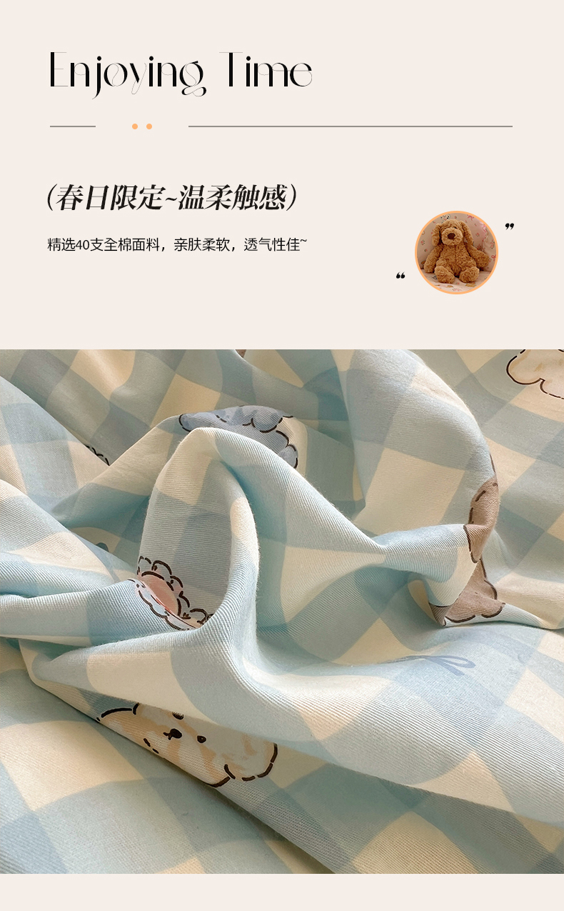商品名称:六巷胡同 2025新款ins减龄可爱风卡通全棉四件套第一系 蓝格奶油狗