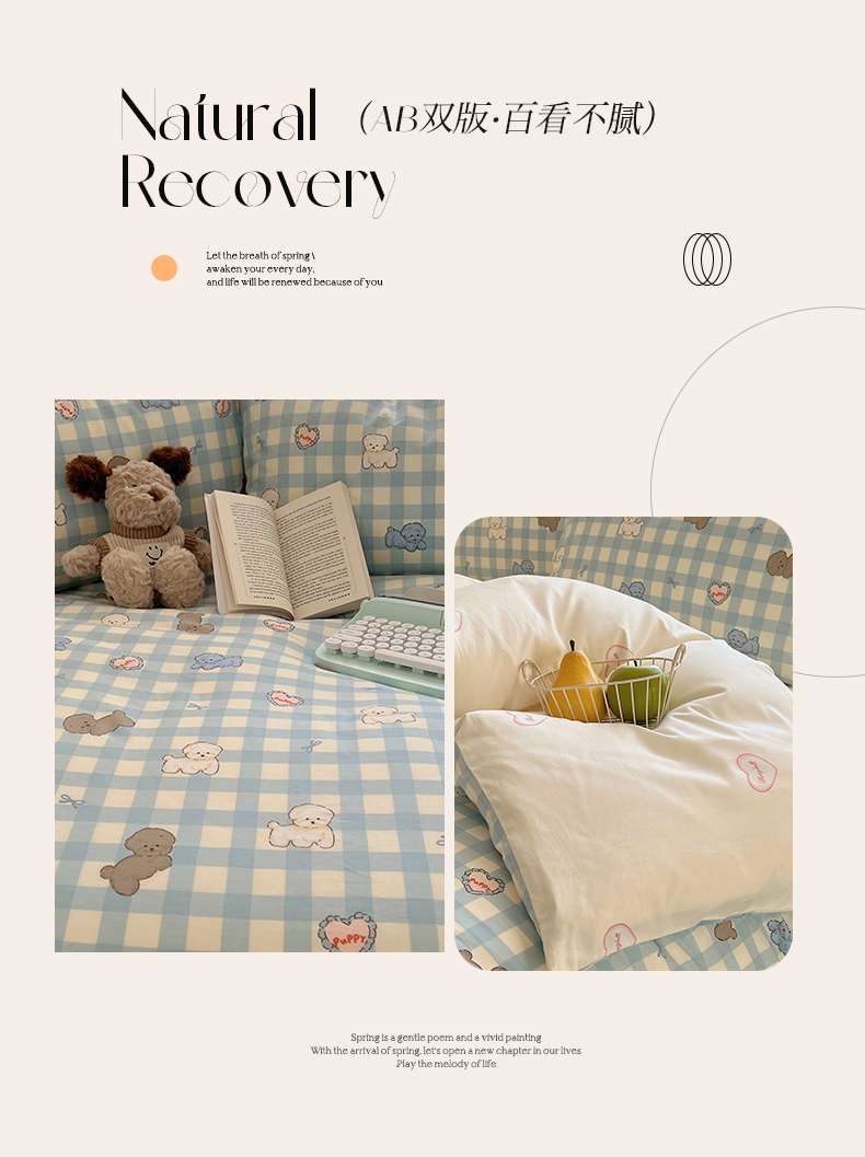 (总)六巷胡同 2025新款INS卡通童趣混搭风全棉四件套第二系,混搭-蛋糕围兜熊,混搭-奶油酣睡熊,混搭-奈斯羞羞狗,混搭-小蓝格甜点,混搭-雪糕哈皮熊,混搭-月亮睡睡熊