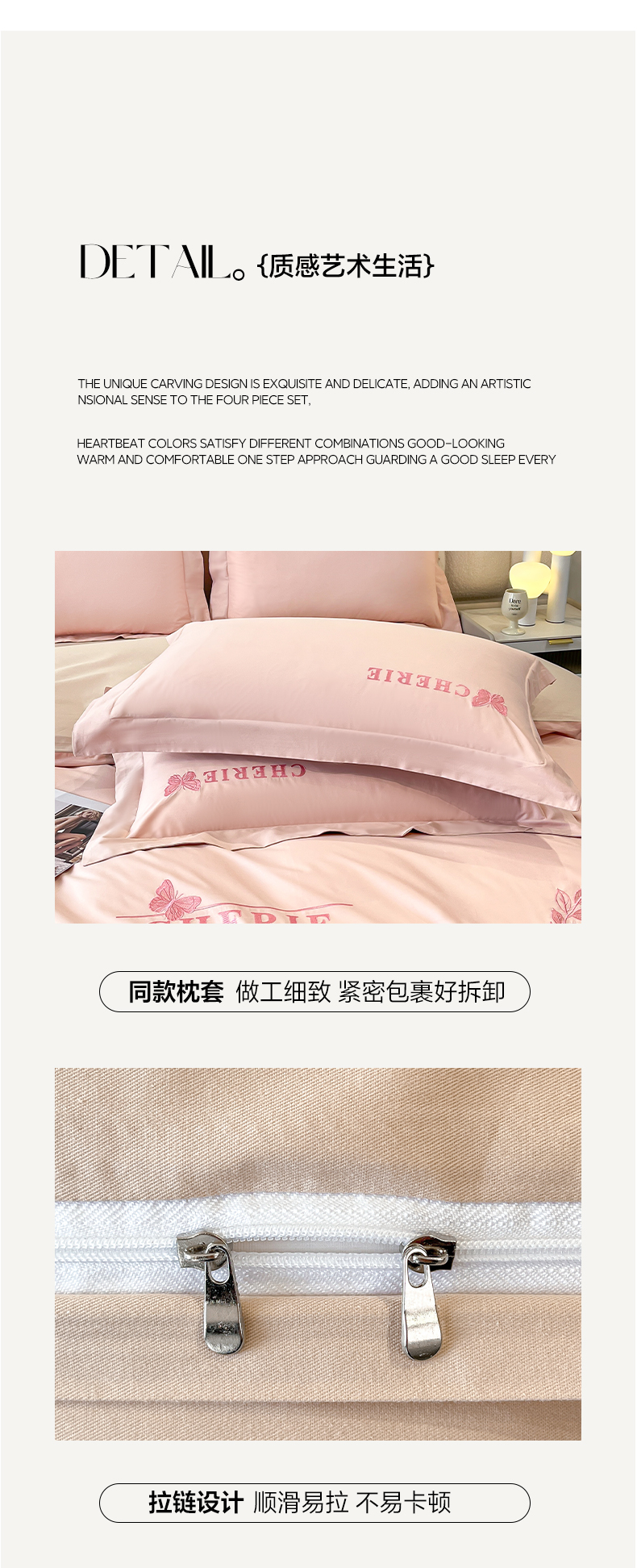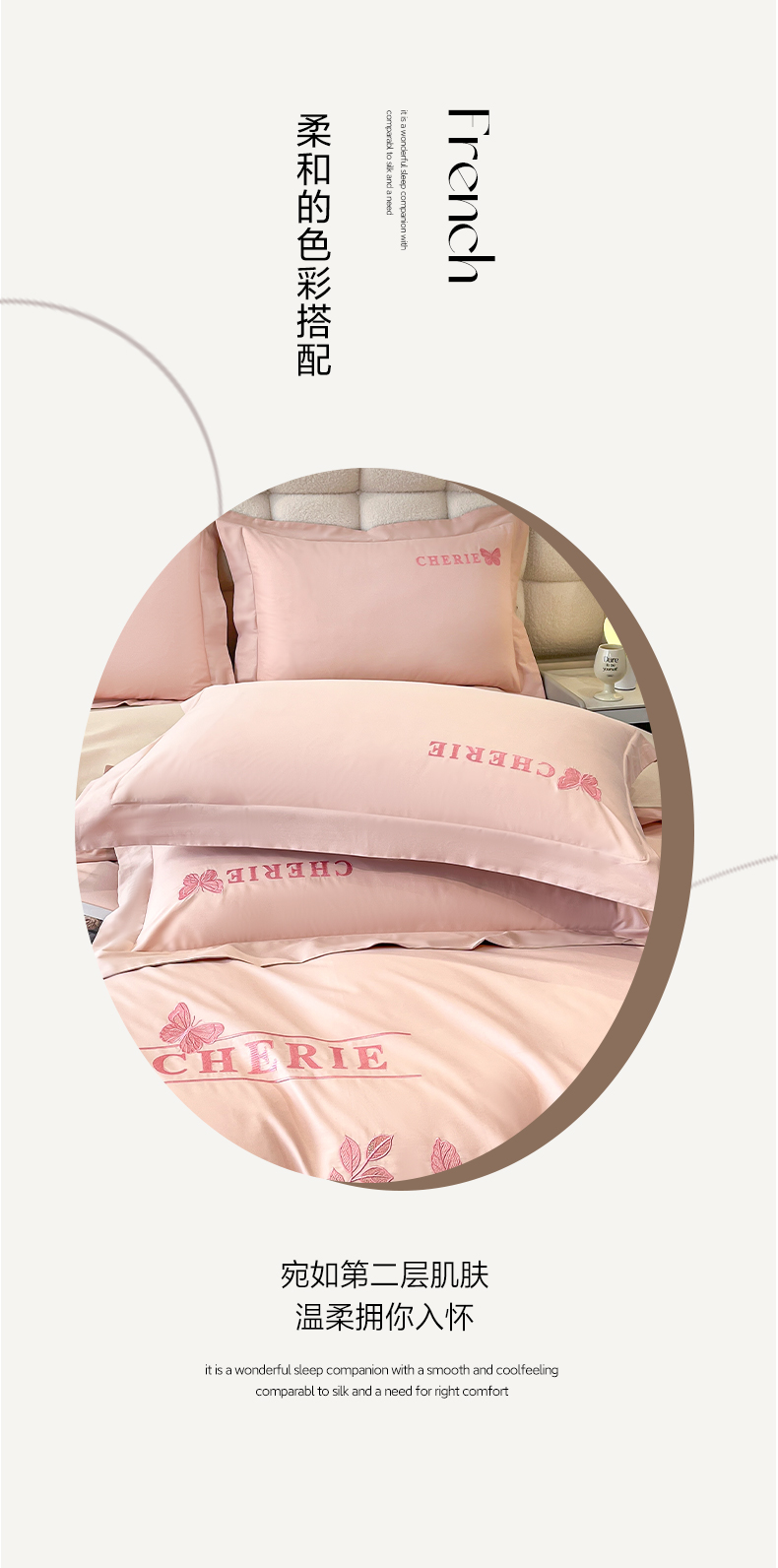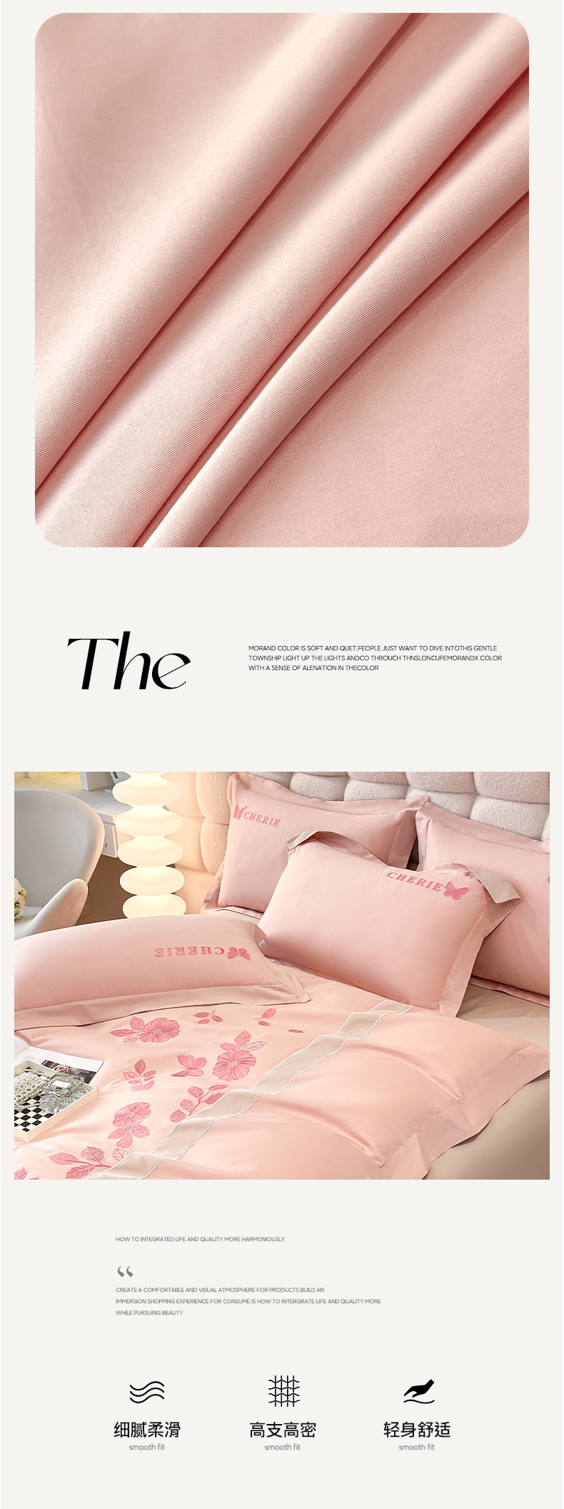 商品名称:桃园 2025新款洛芙琳系列纯棉全棉长绒棉刺绣绣花四件套(高端礼盒) 洛芙琳轻奢粉