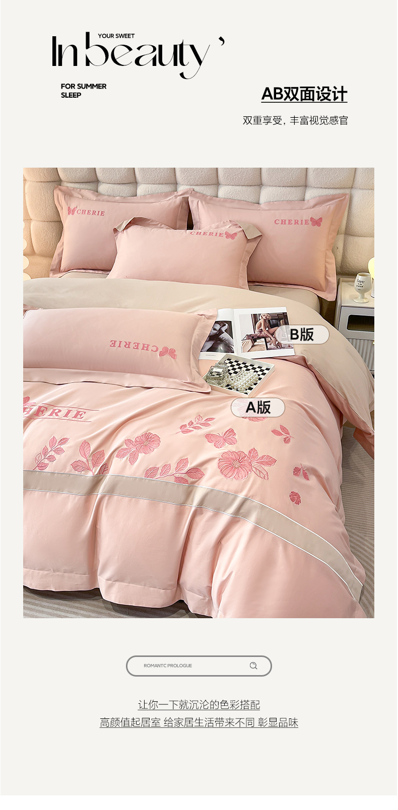 (总)桃园 2025新款纯棉全棉长绒棉刺绣绣花四件套高端礼盒款-爱丽丝(控价不低于198元),爱丽丝-白紫,爱丽丝-白粉,爱丽丝-飘蓝,爱丽丝-轻奢粉