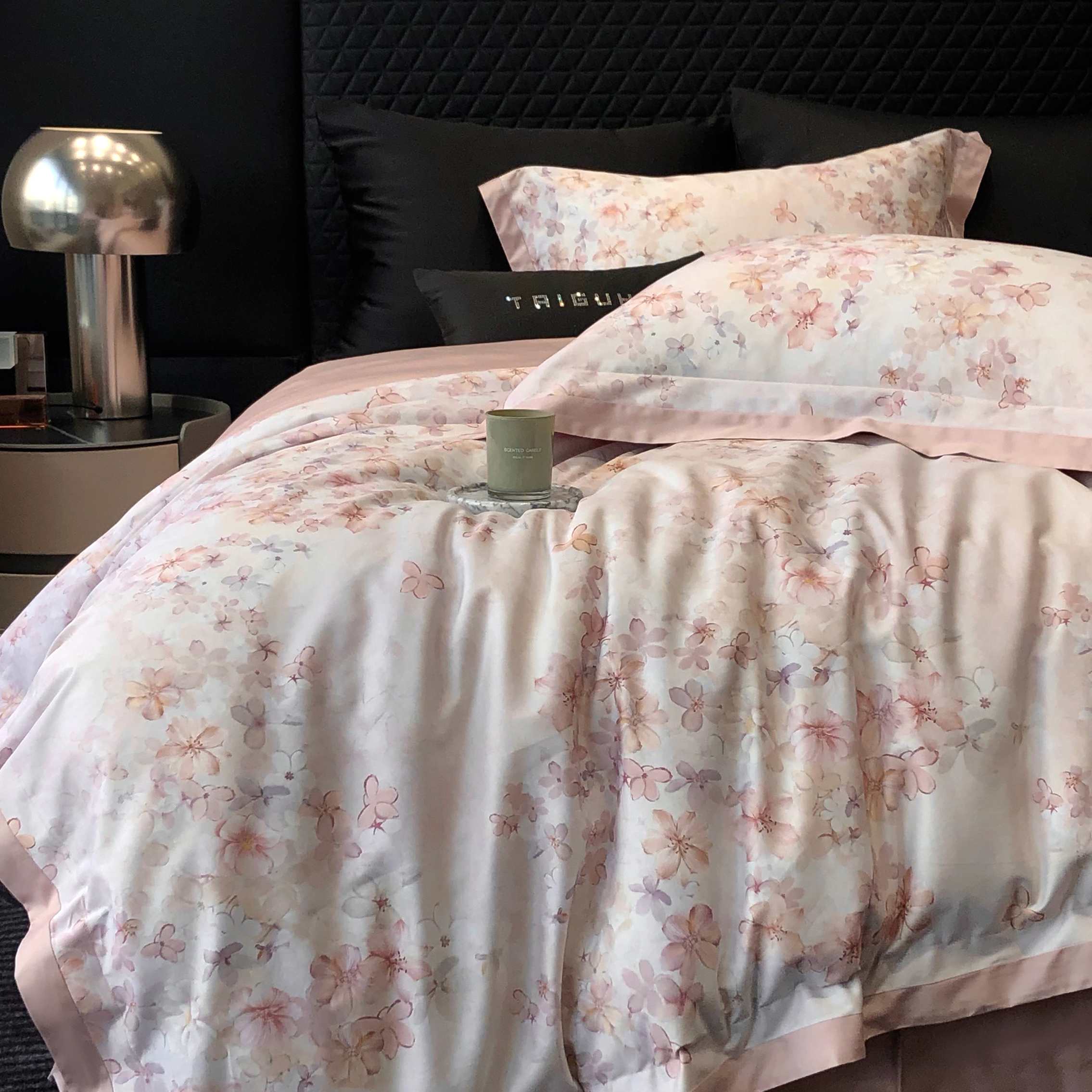 2025年高支高密长绒棉专版活性数码印花系列四件套【券后控价——券后不低于378】 西莉娅-淡紫