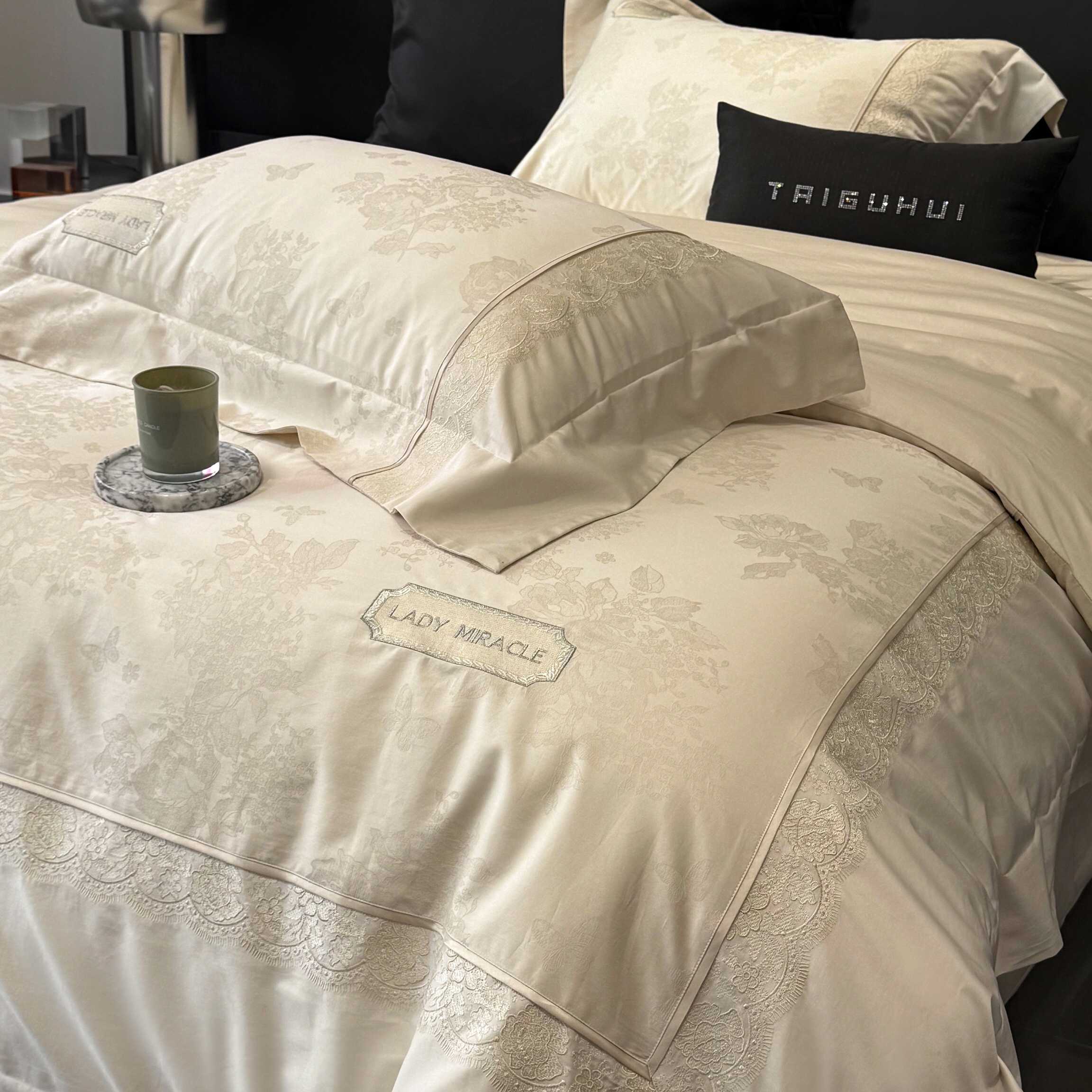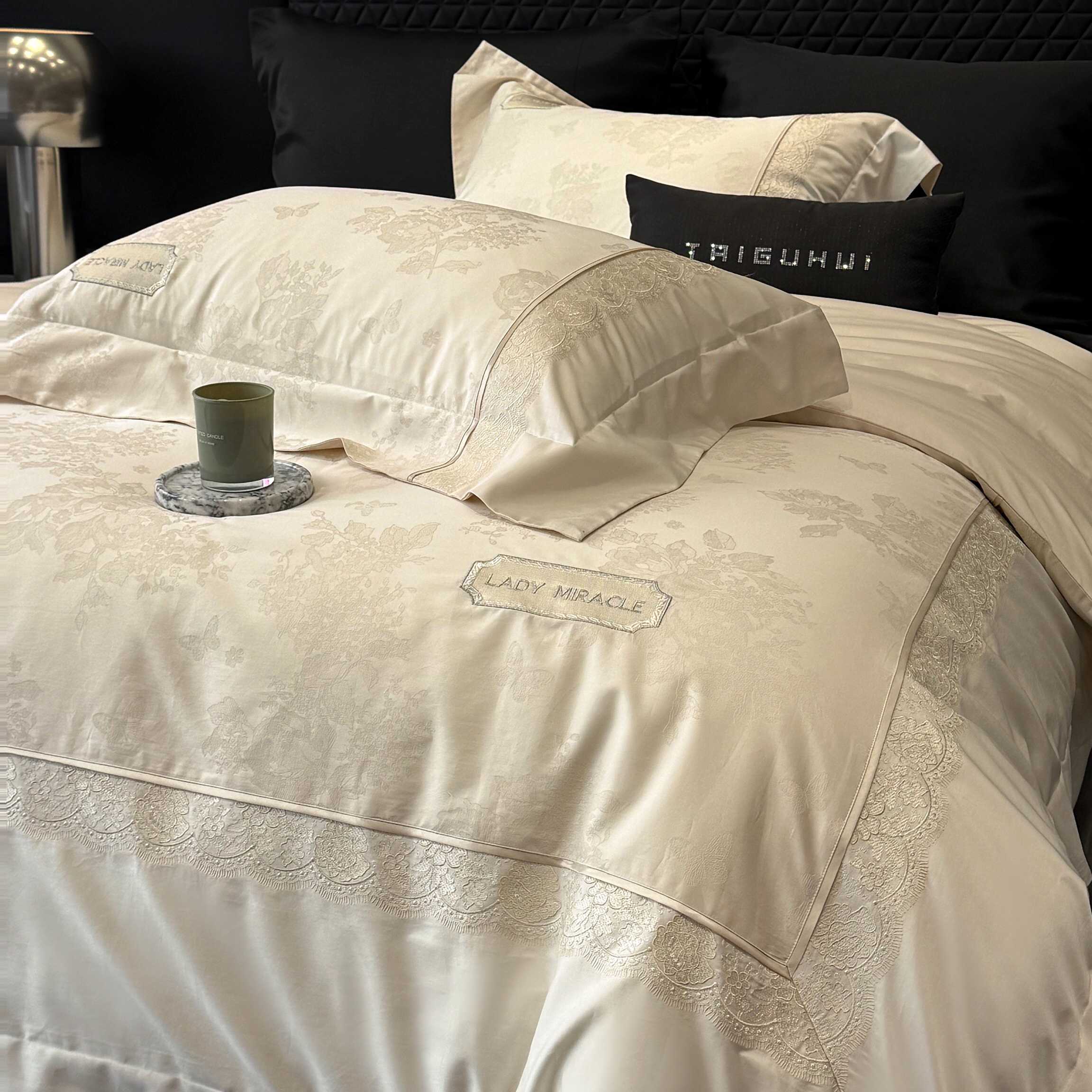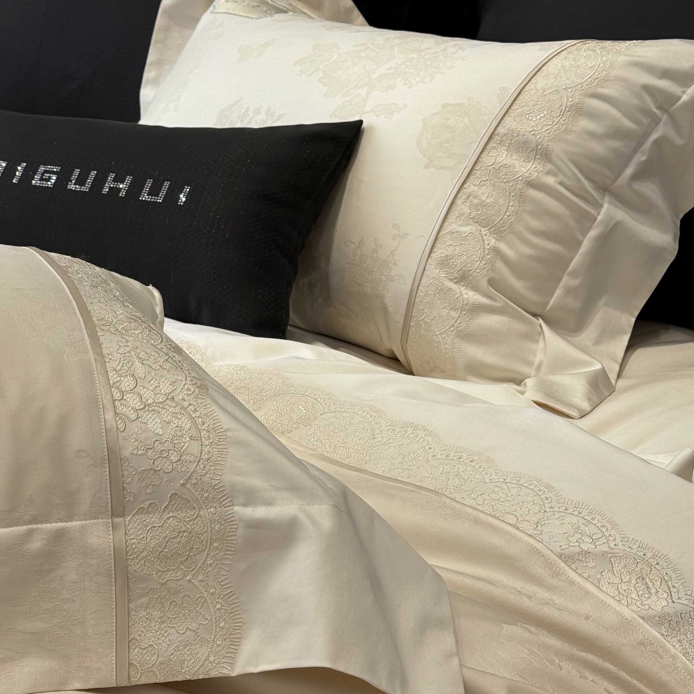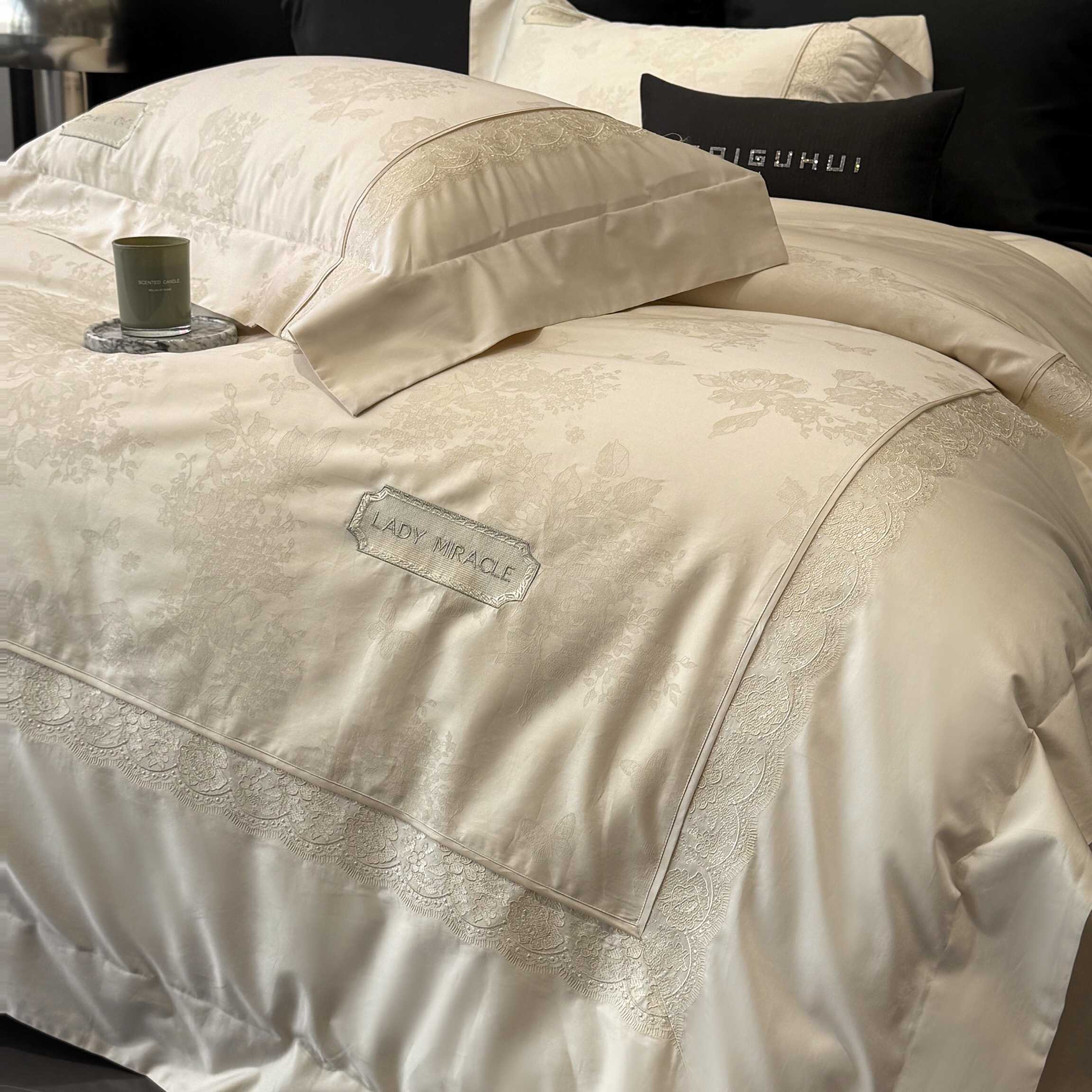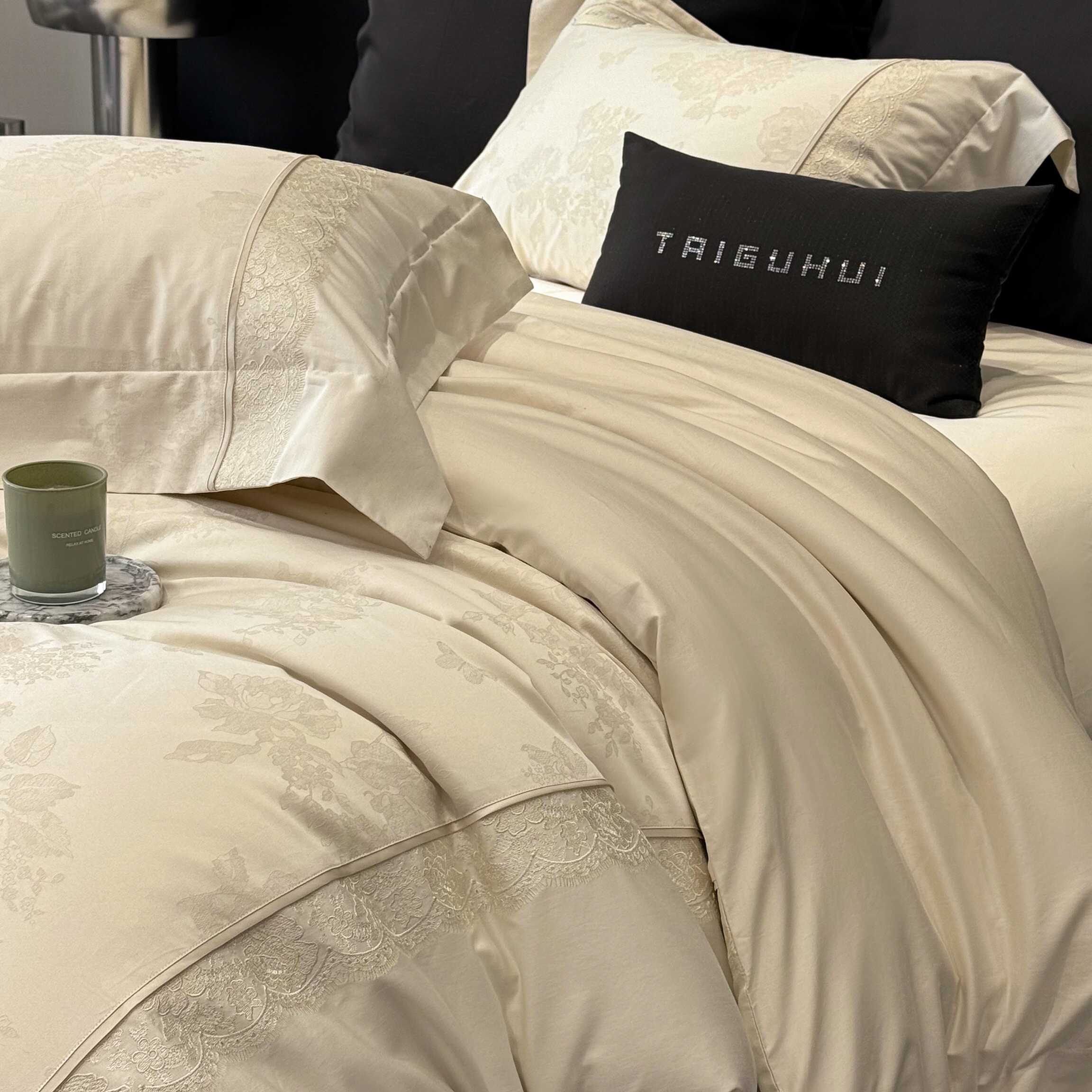 太古汇家居 2025新款全棉提花绣花“伊莎贝拉”系列四件套 伊莎贝拉-米金色