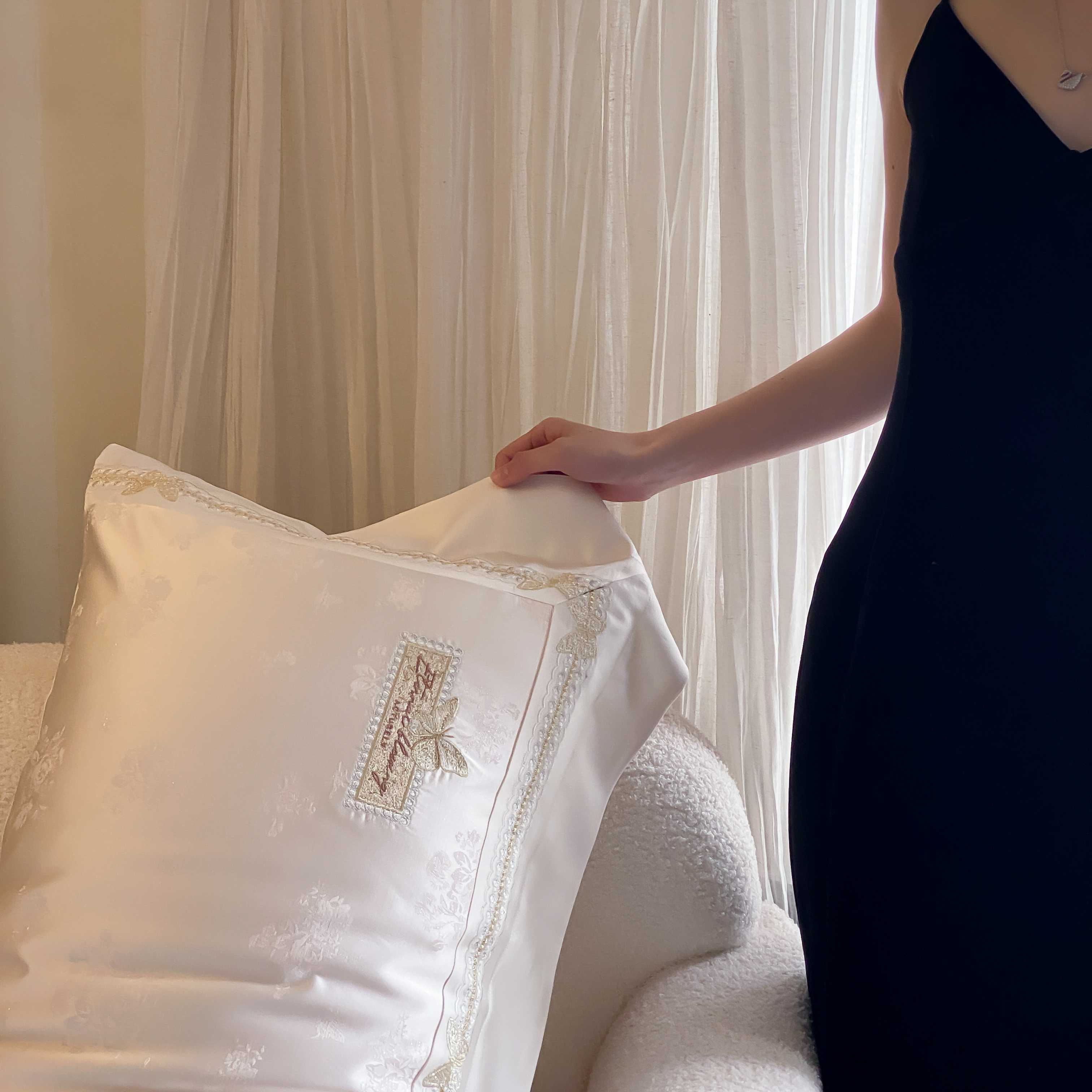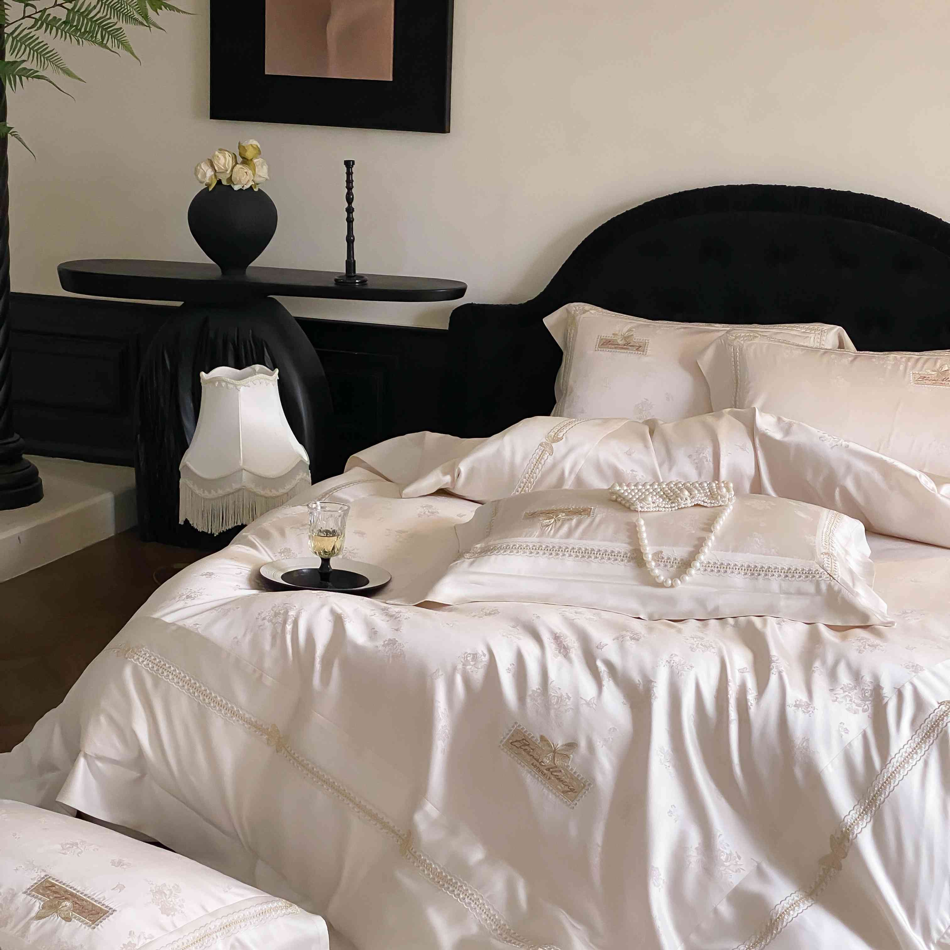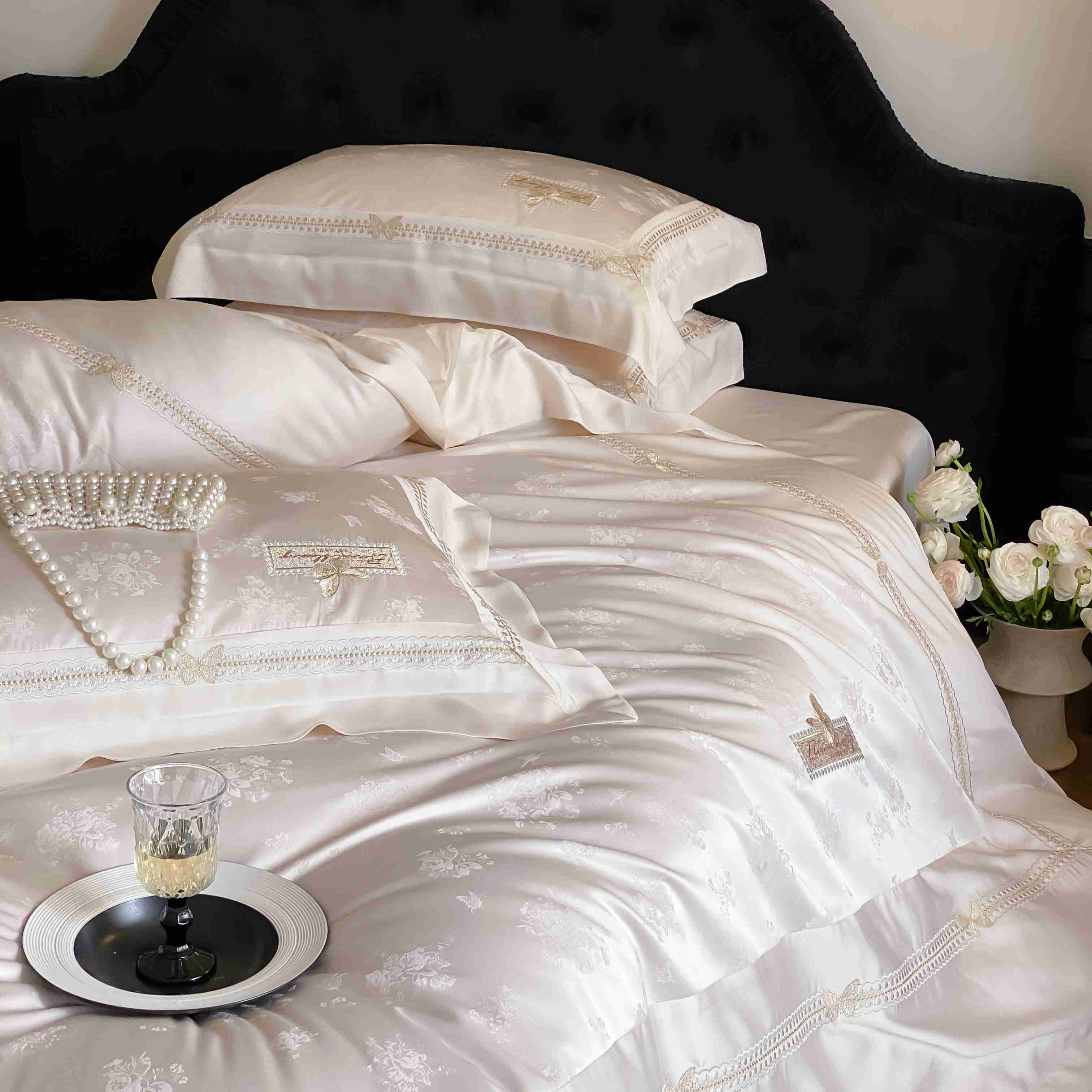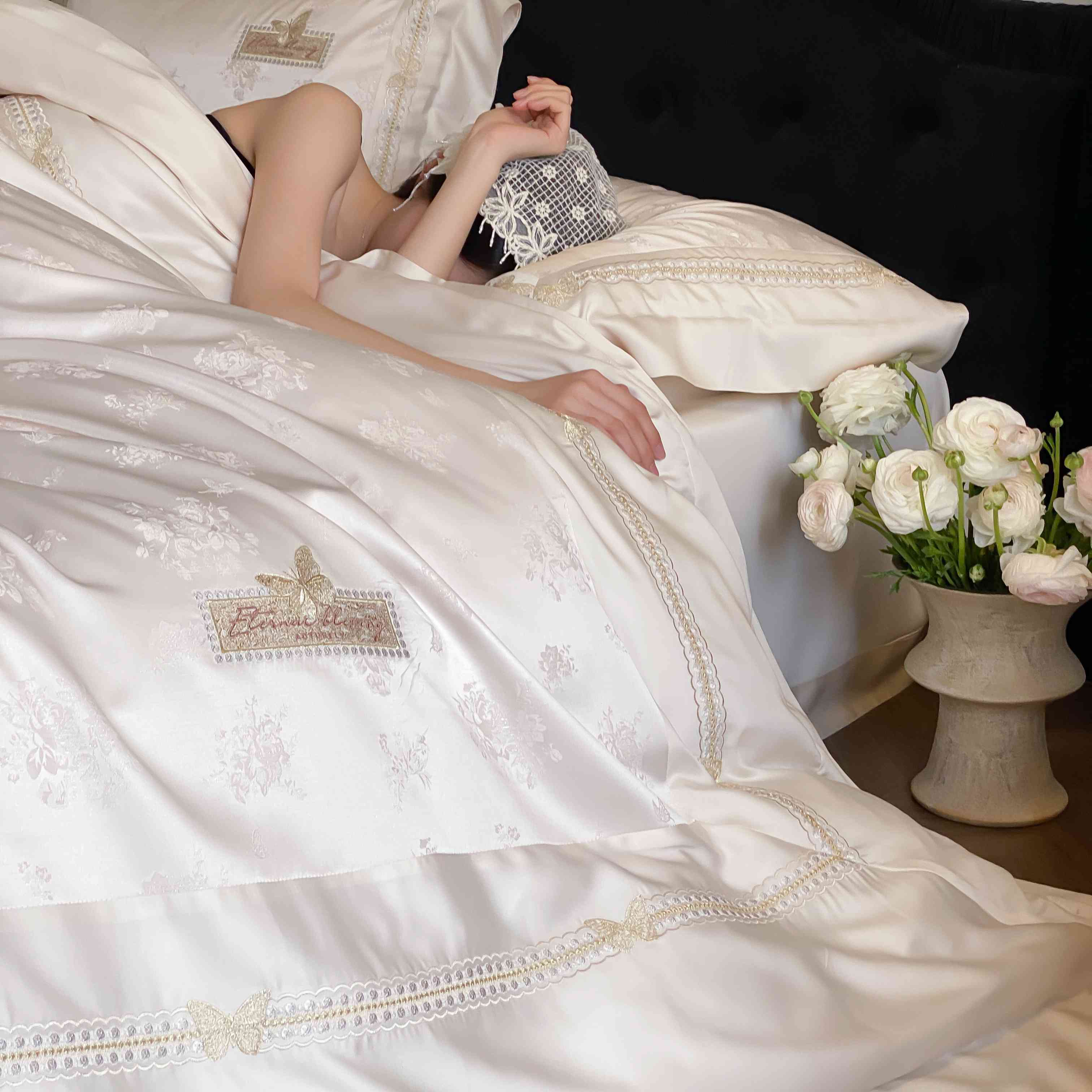 商品名称:太古汇家居 2025新款天丝高精密提花+绣花“花间蝶影”系列四件套 花间蝶影-香槟