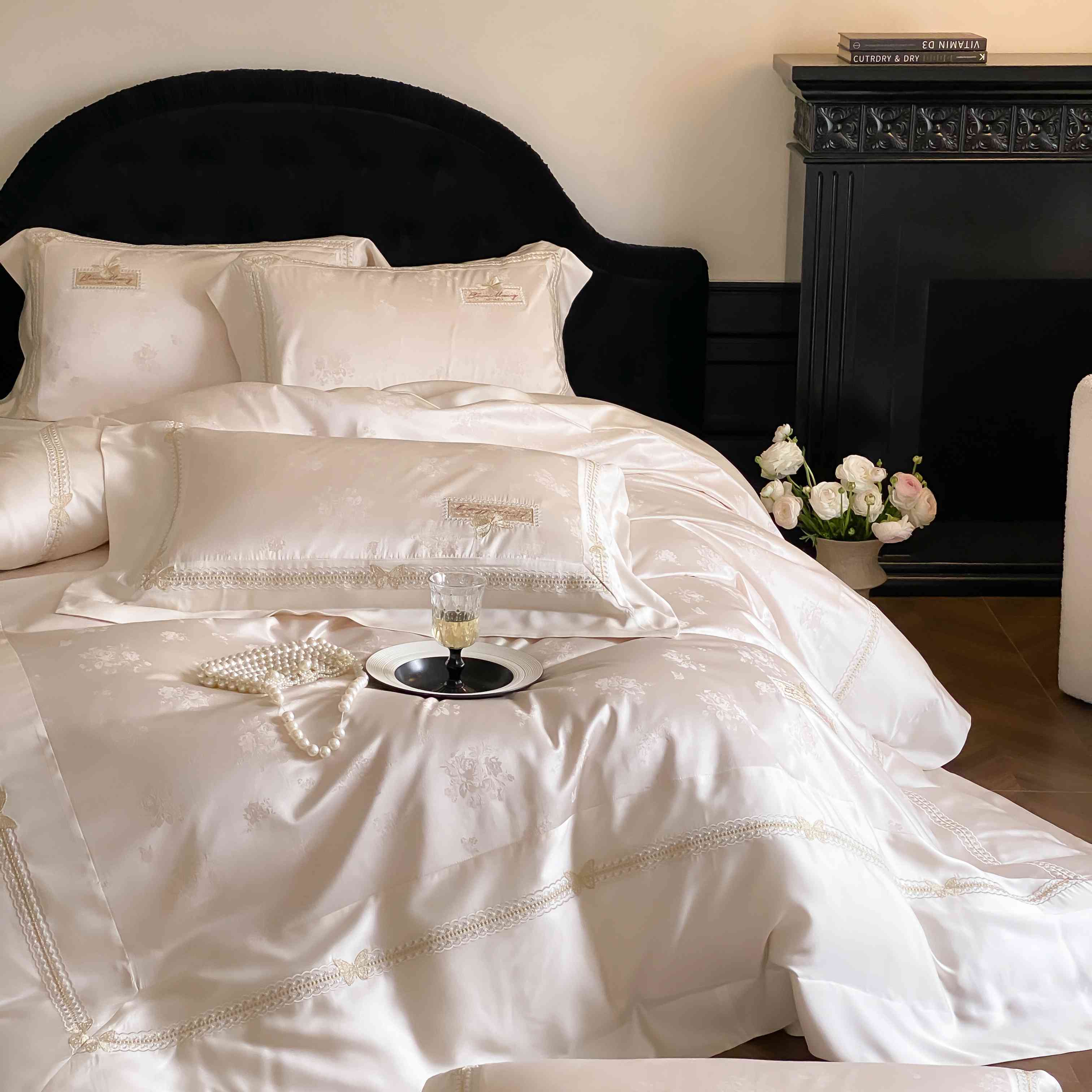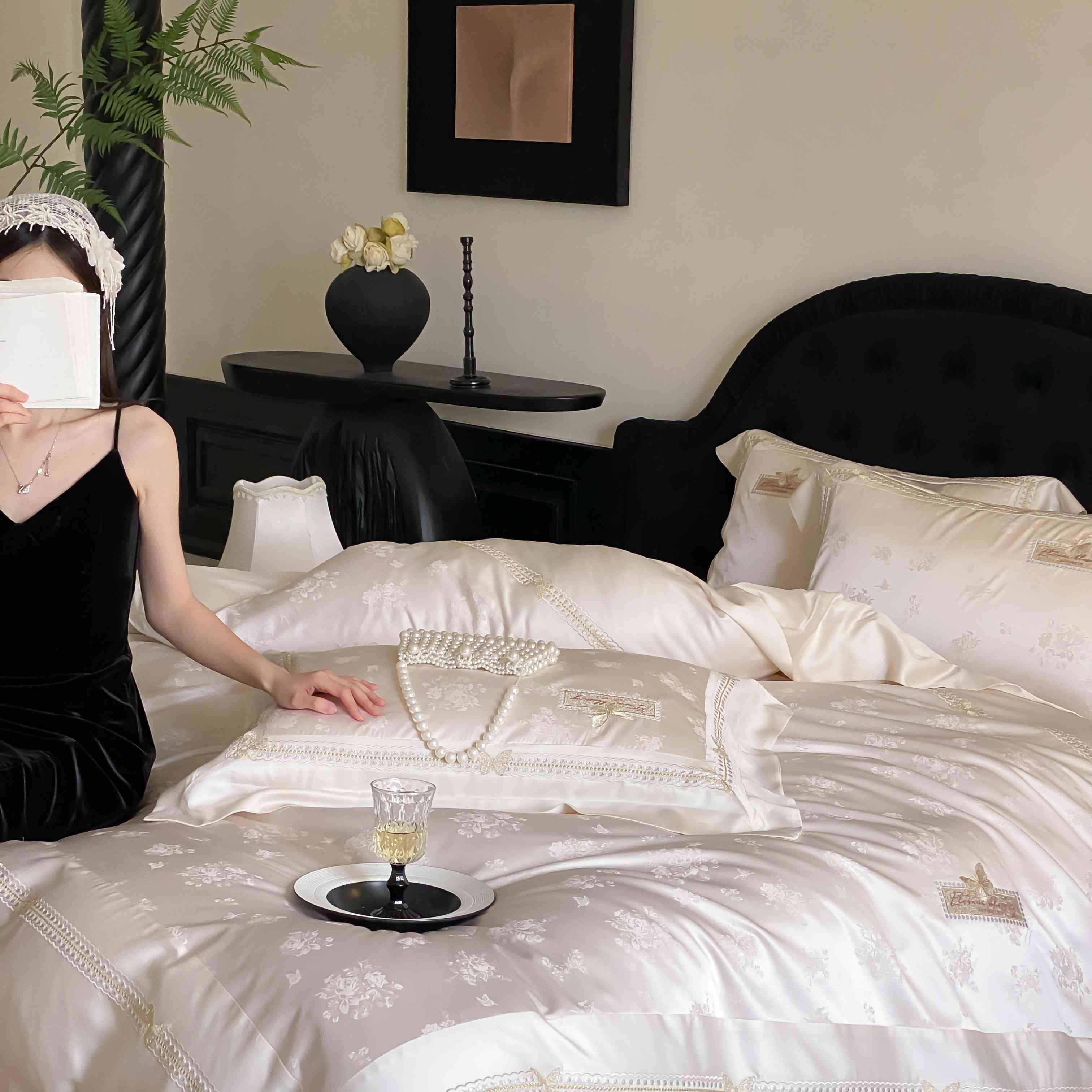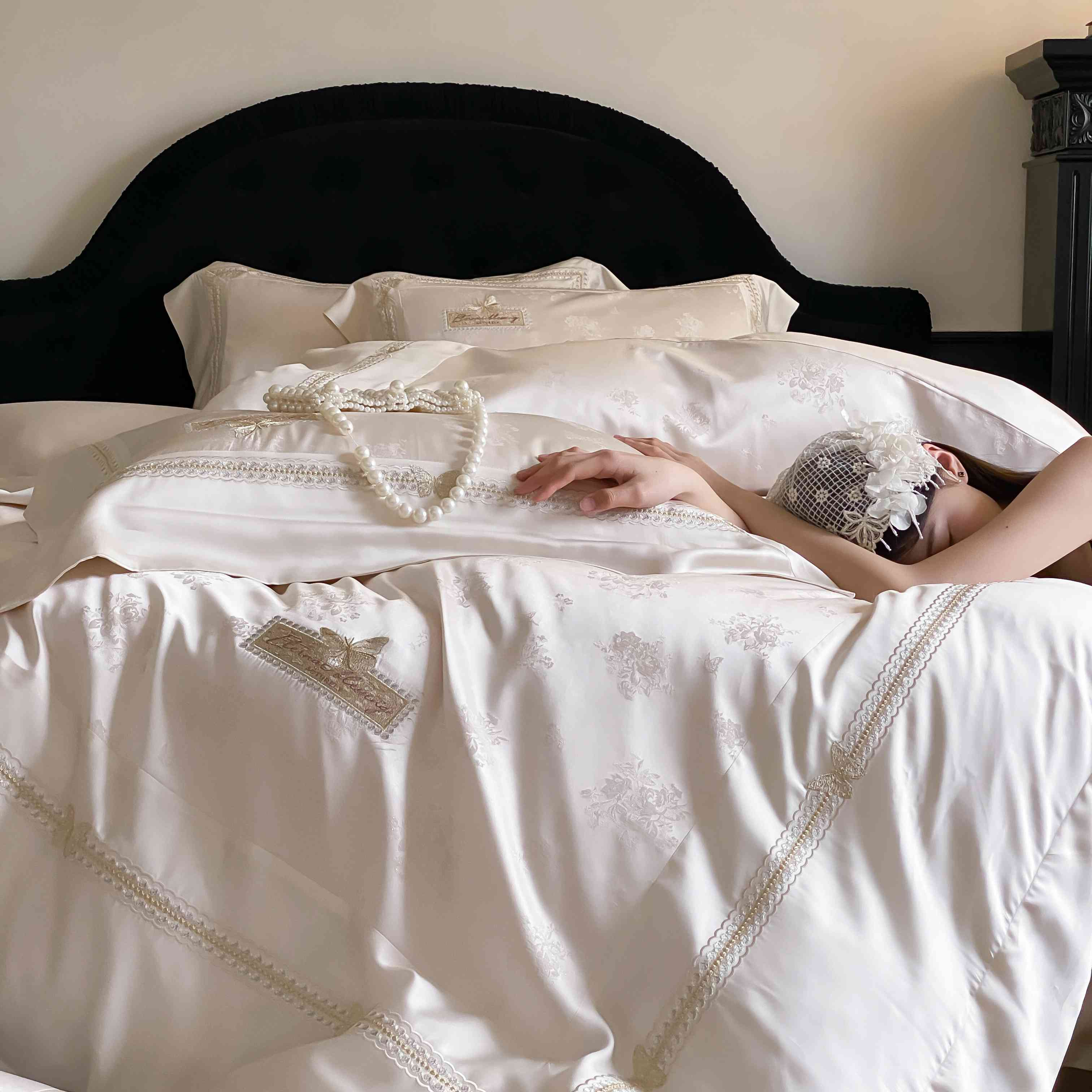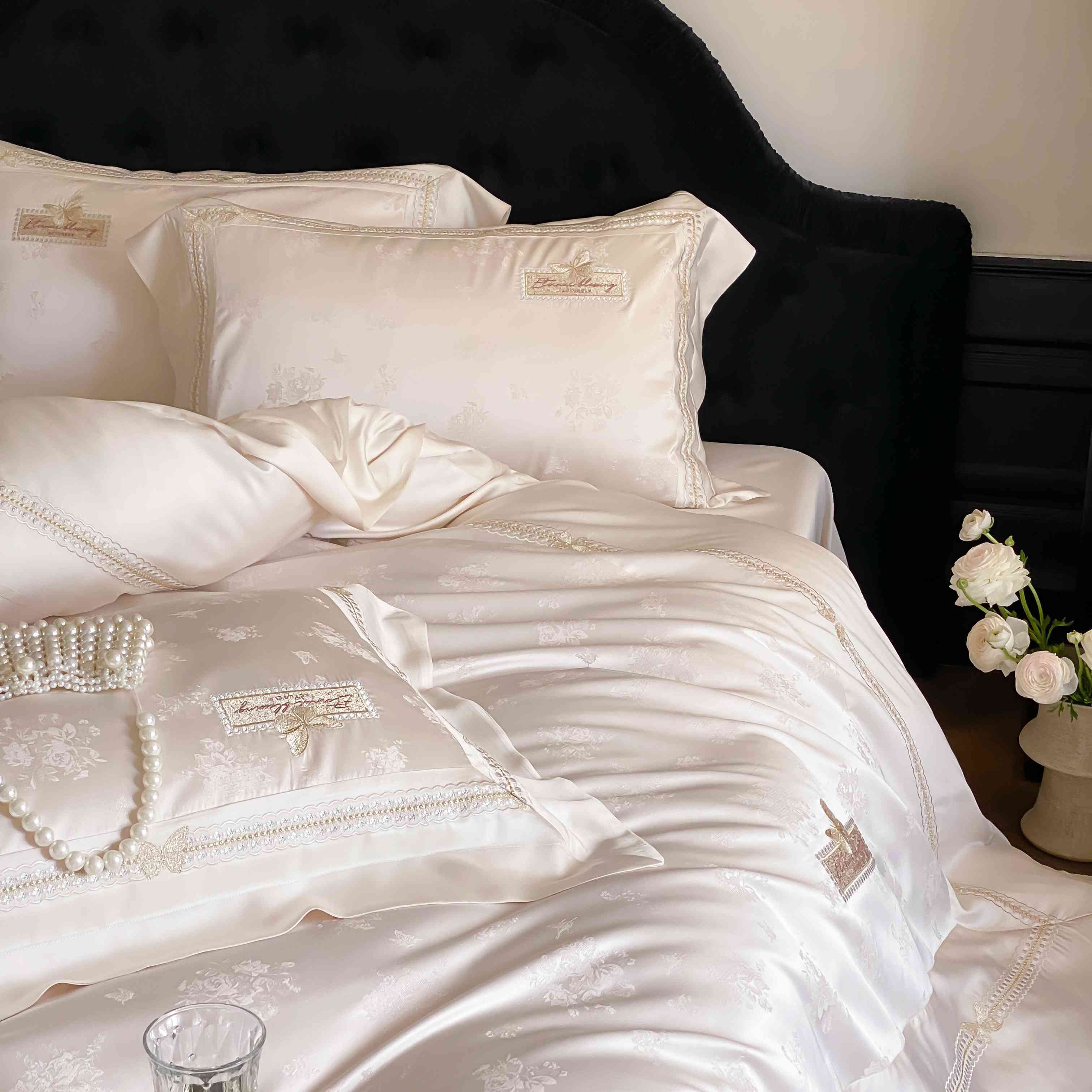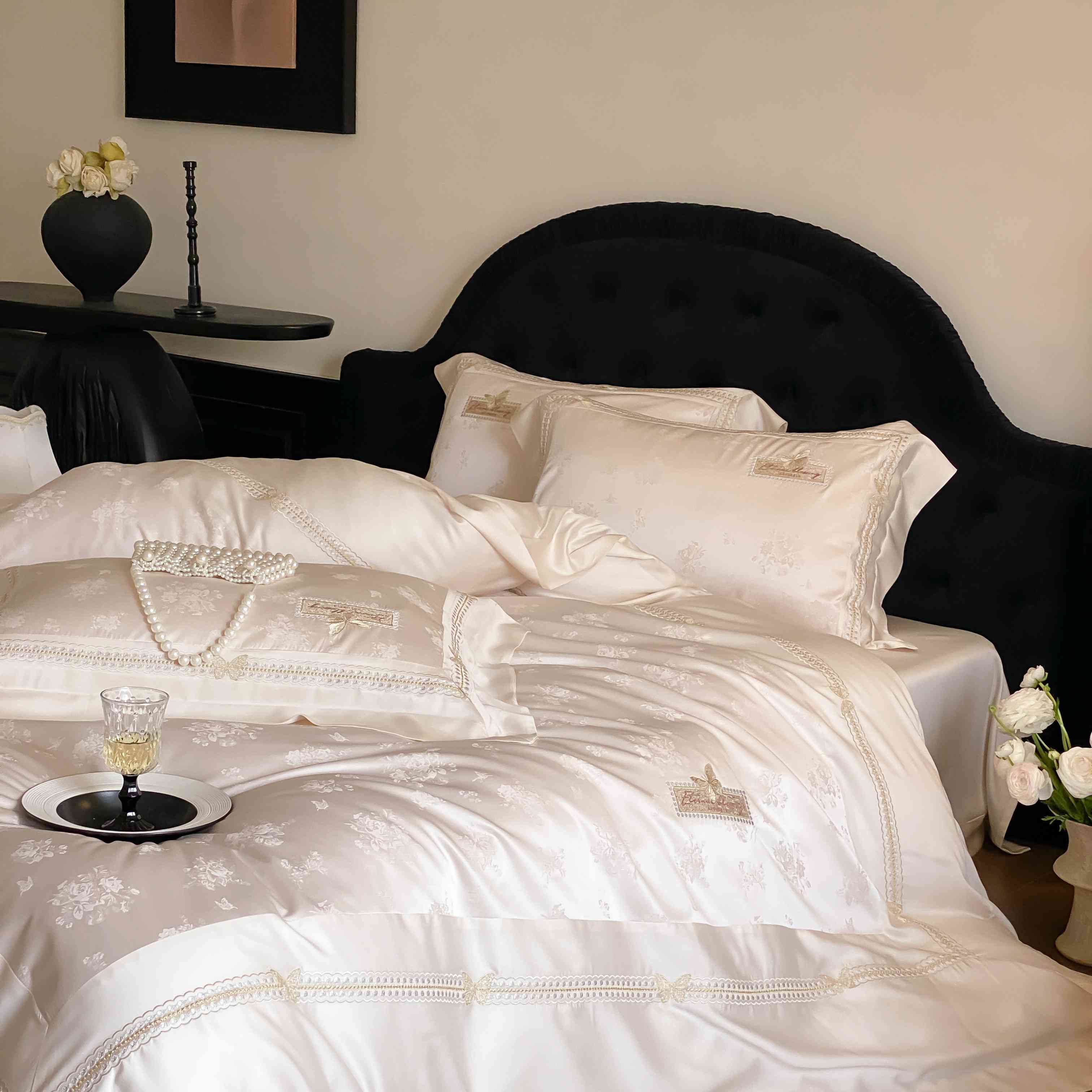 商品名称:太古汇家居 2025新款天丝高精密提花+绣花“花间蝶影”系列四件套 花间蝶影-香槟