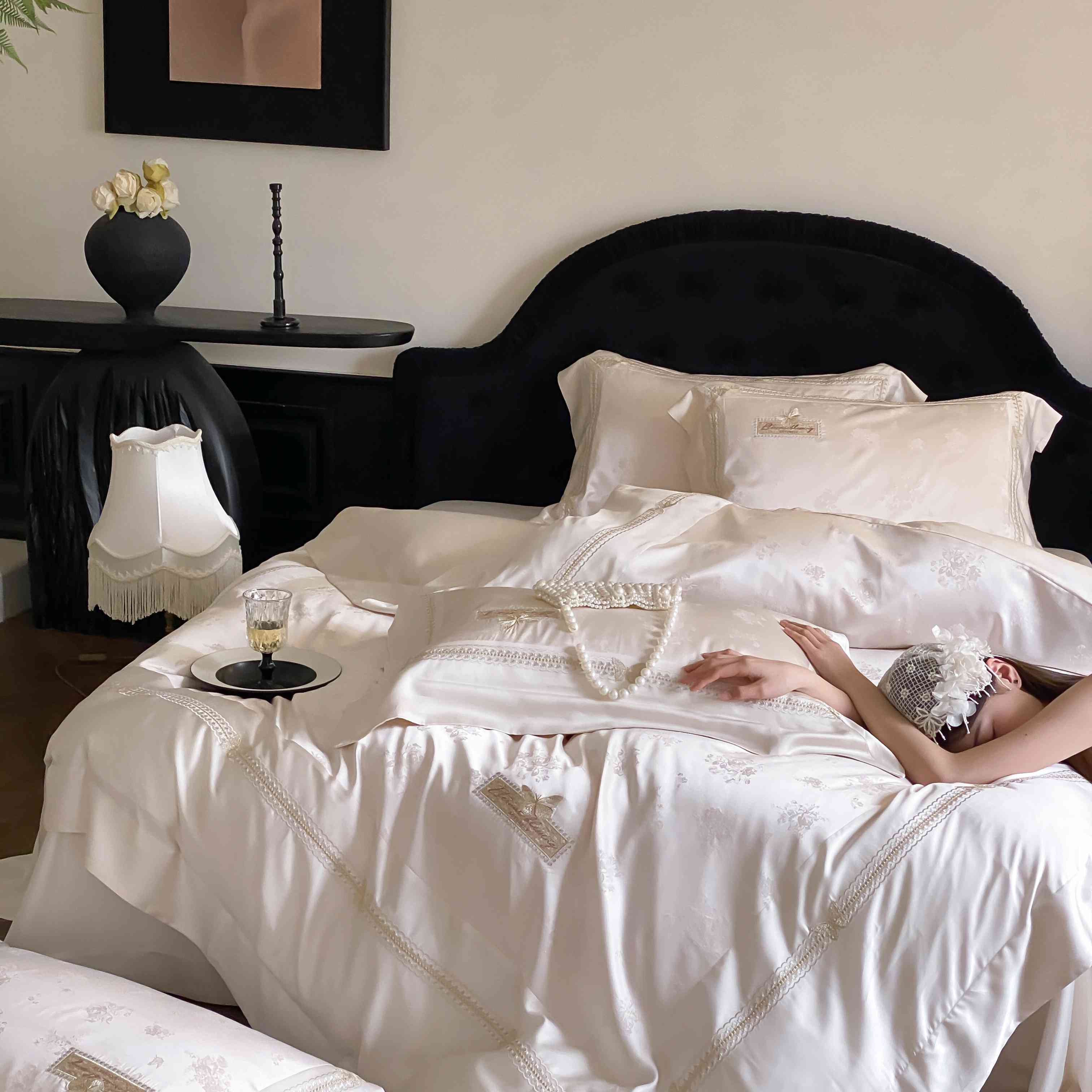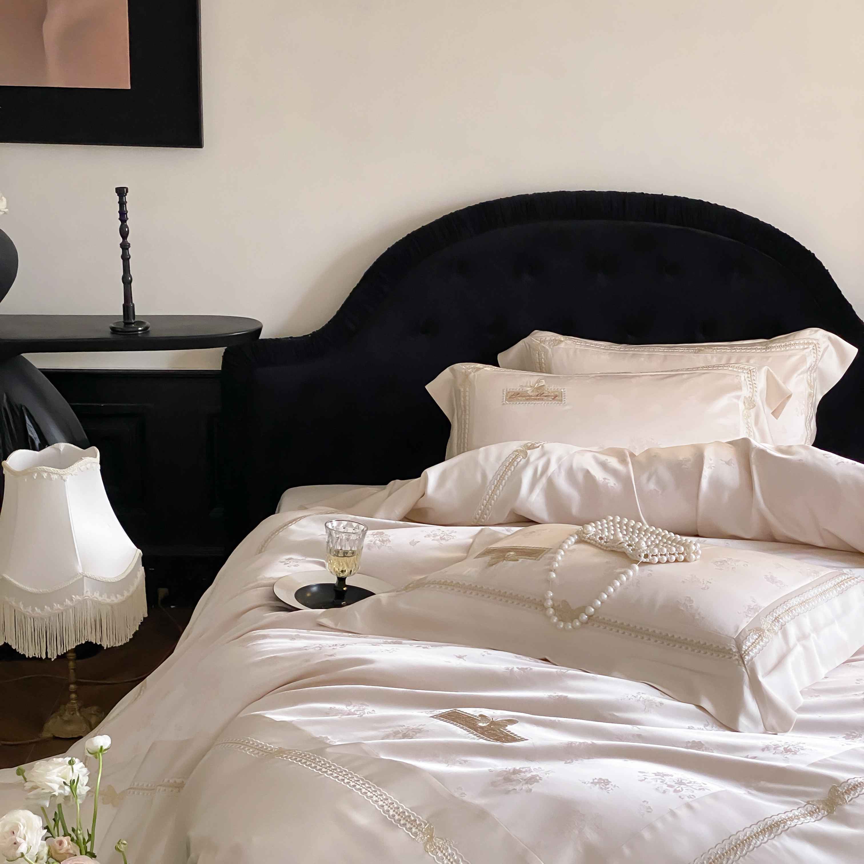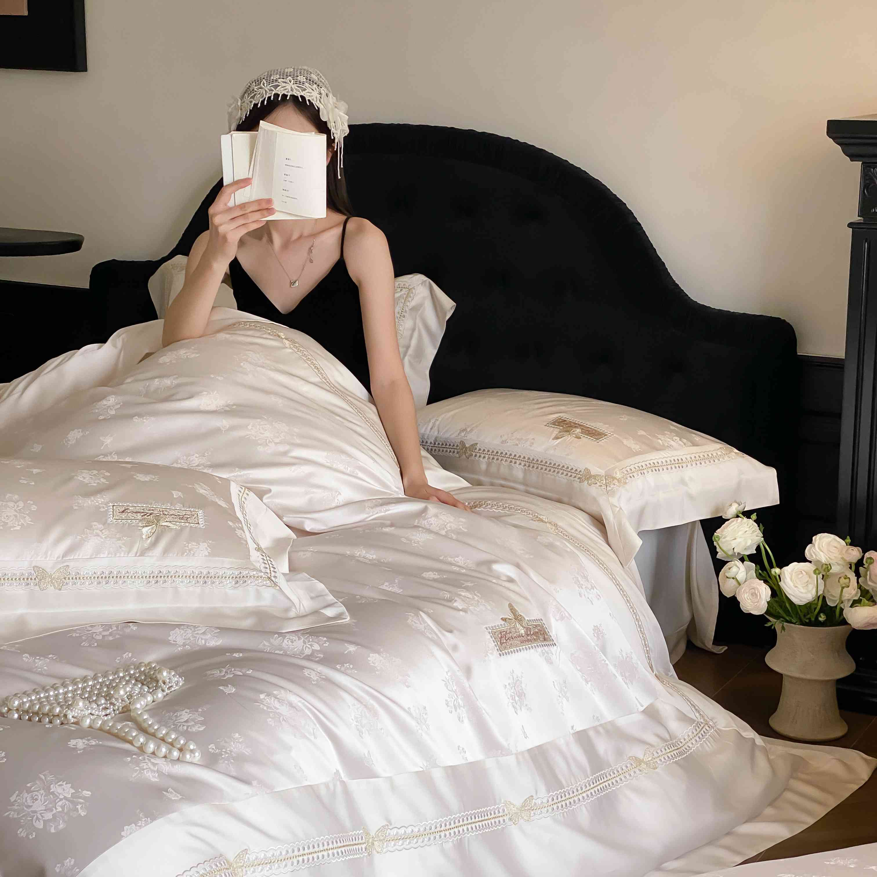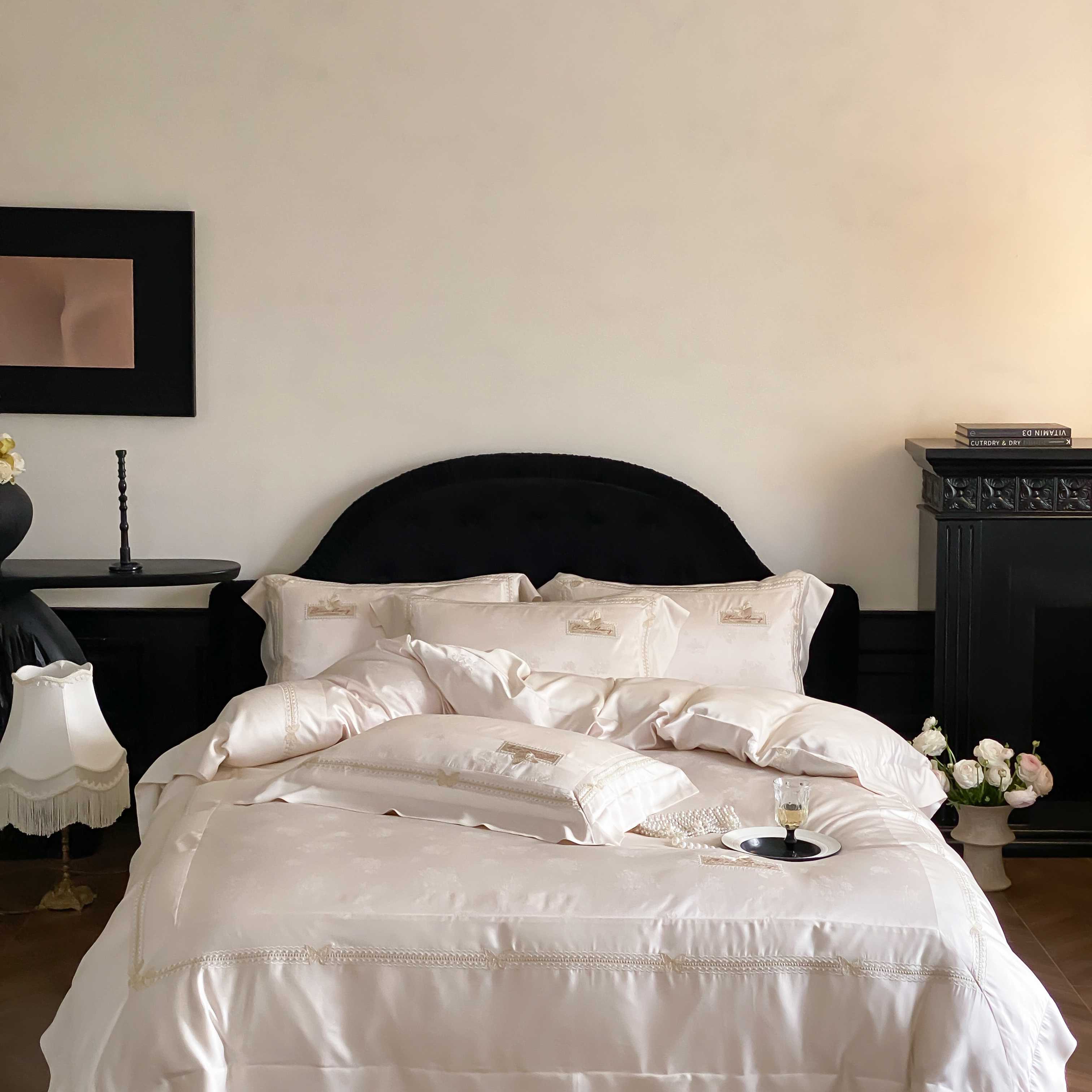 商品名称:太古汇家居 2025新款天丝高精密提花+绣花“花间蝶影”系列四件套 花间蝶影-香槟