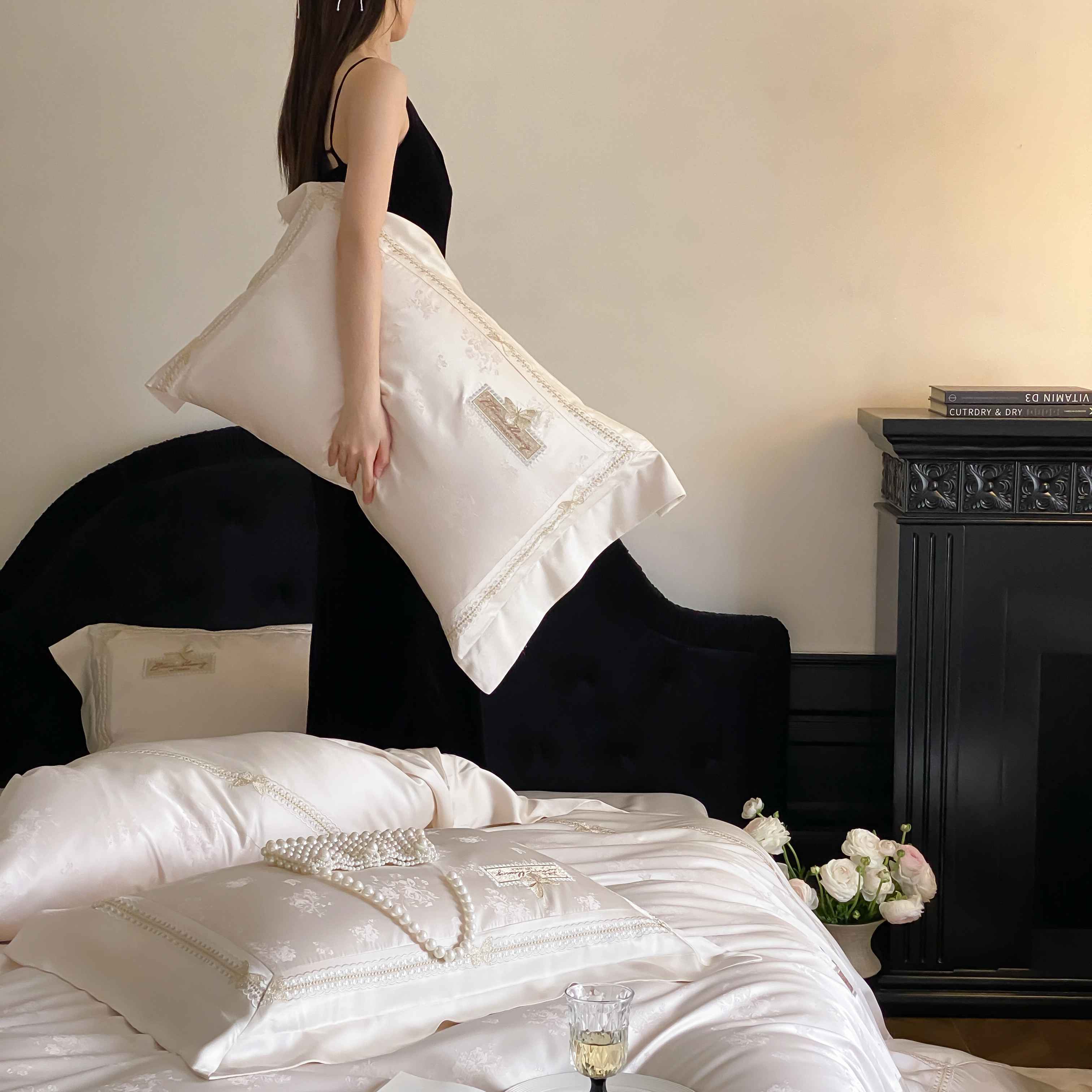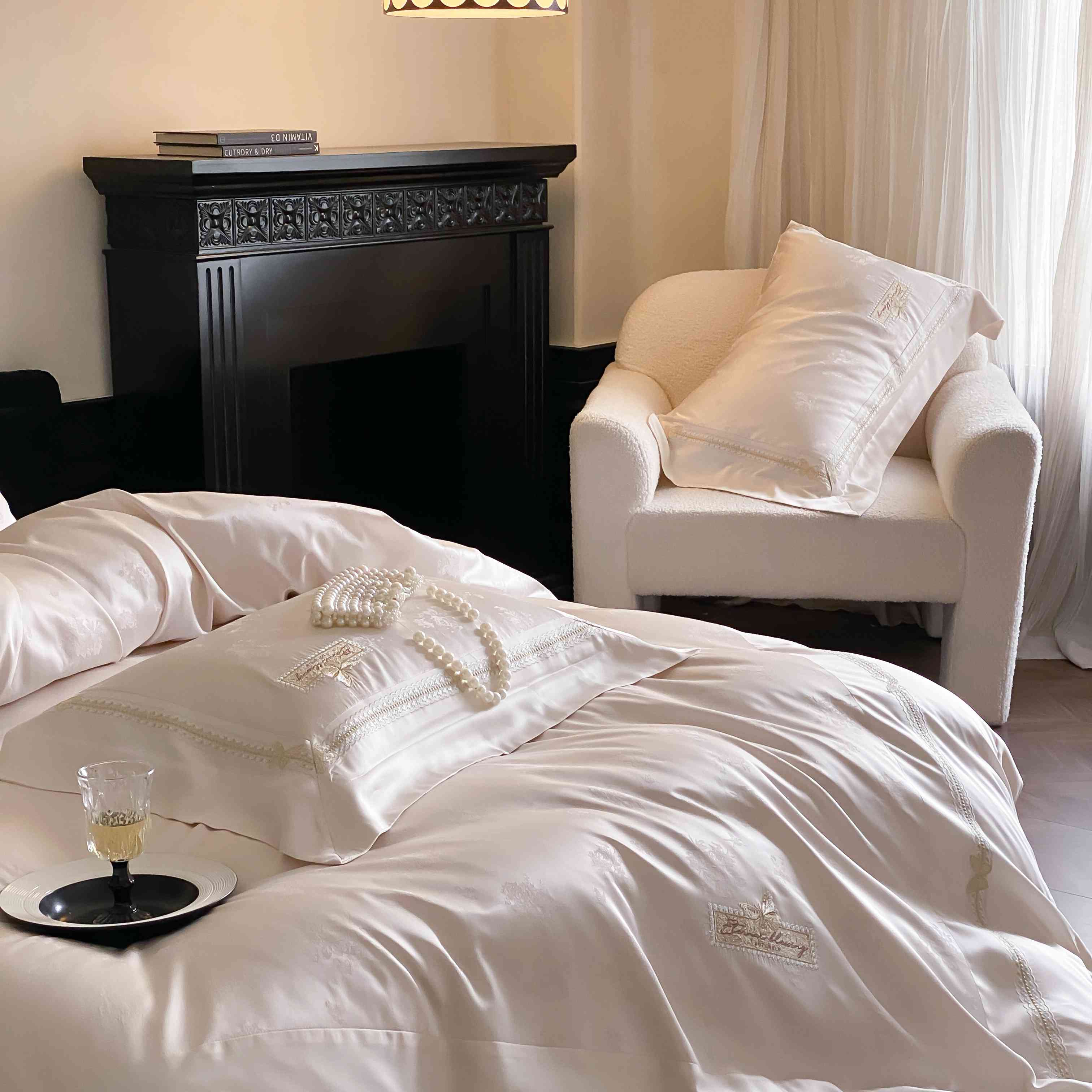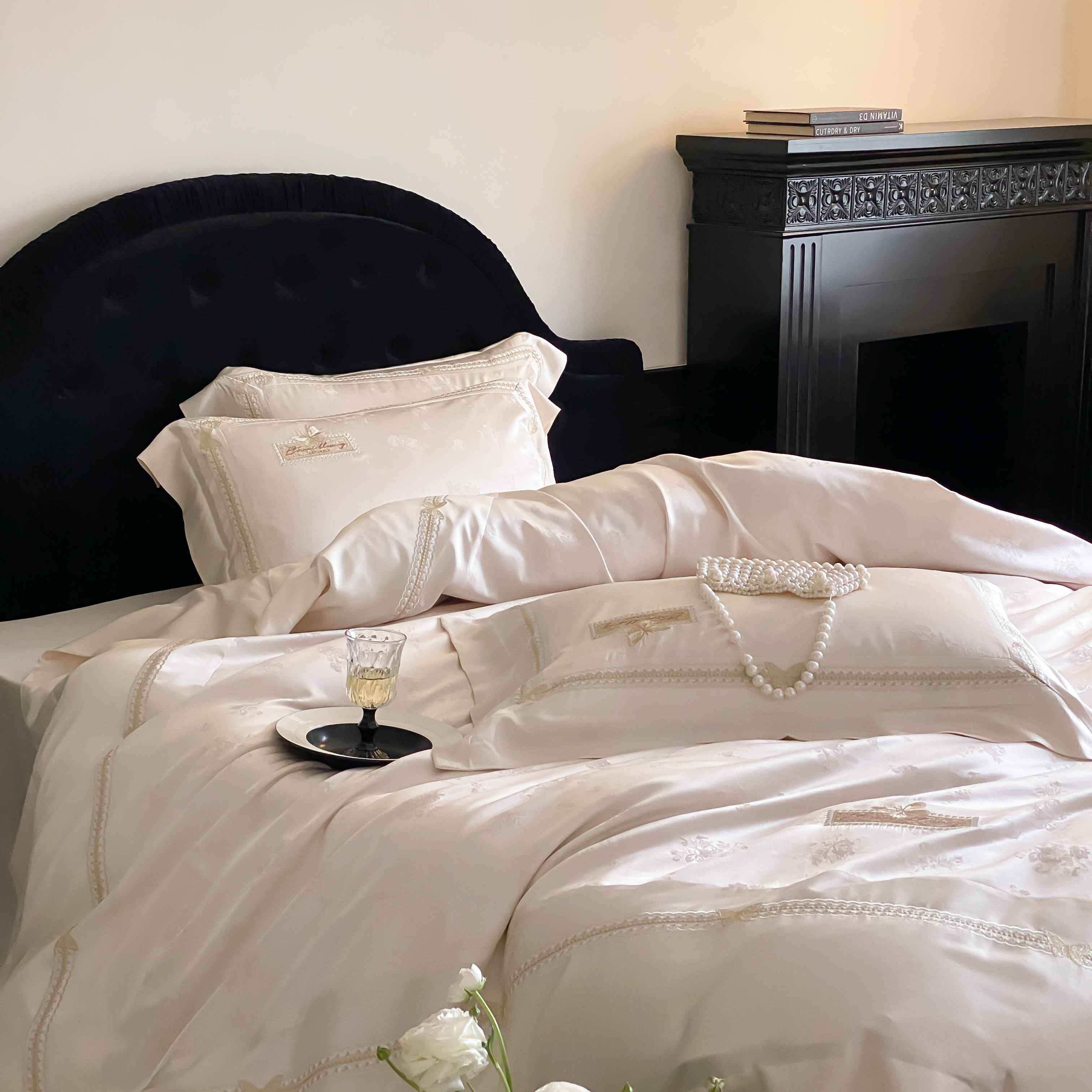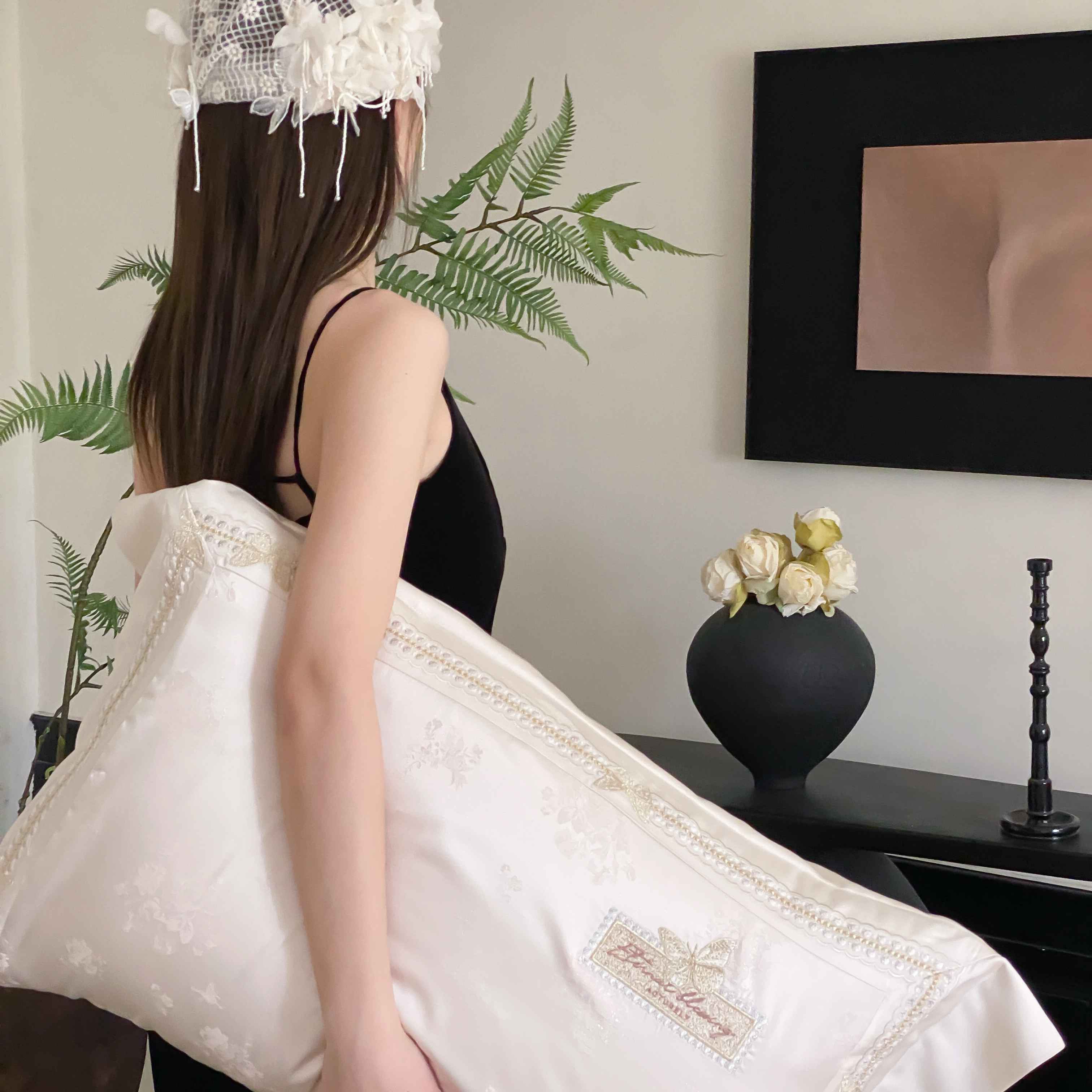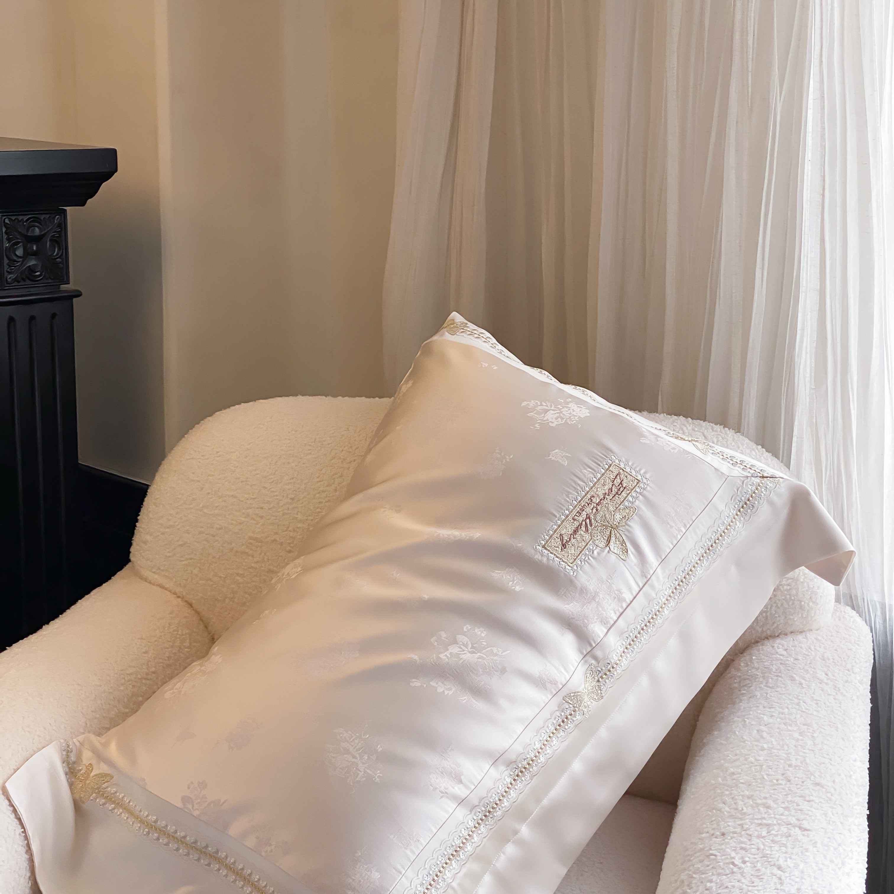 商品名称:太古汇家居 2025新款天丝高精密提花+绣花“花间蝶影”系列四件套 花间蝶影-香槟