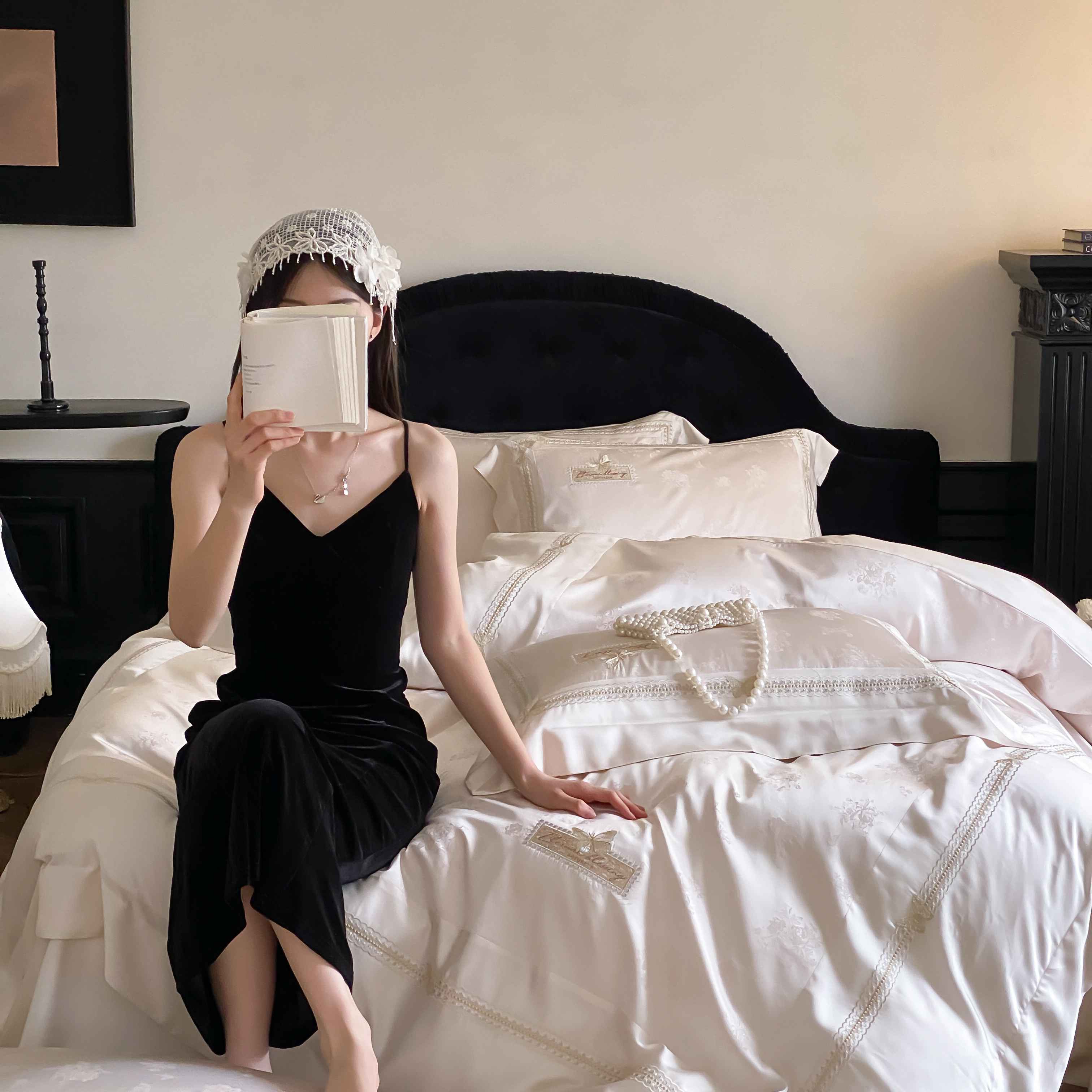 (总)太古汇家居 2025新款打孔镂空宽边格拉夫系列四件套,格拉夫-粉,格拉夫-红,格拉夫-蓝,格拉夫-米白